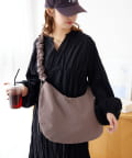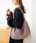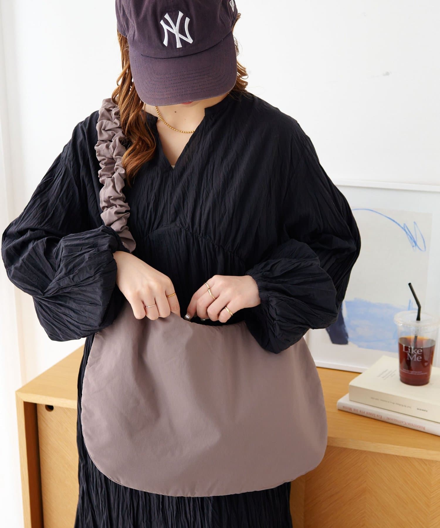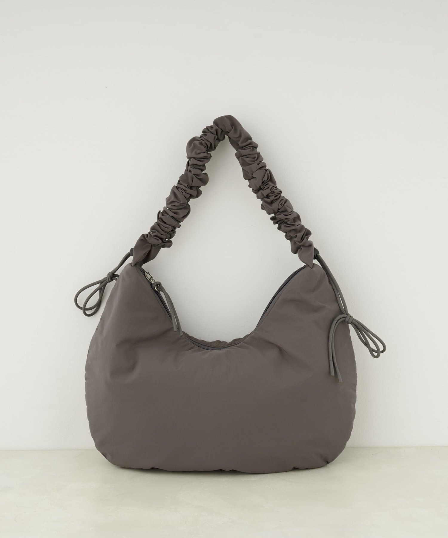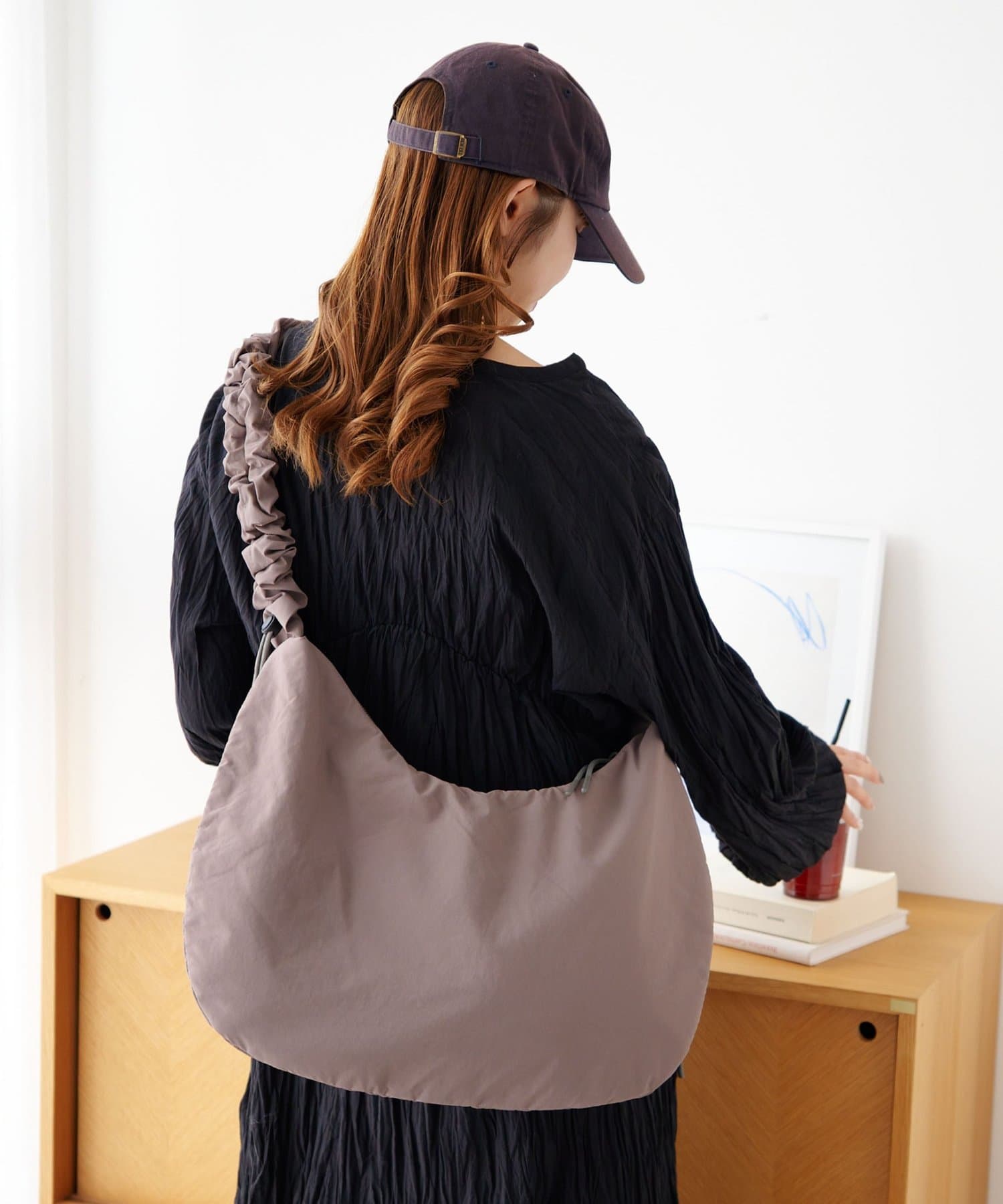 柔らかなパデットナイロンを使用した、軽量で持ちやすいショルダーバッグ。くしゅっとしたギャザーデザインのショルダーストラップが、シンプルな形にニュアンスをプラスします。A4サイズが収納できるサイズ感なので、通勤や通学にもぴったり◎内側にはオープンポケットとファスナーポケットが付いており、細かな荷物もきちんと整理して収納することができます♪