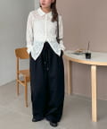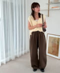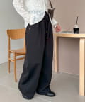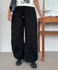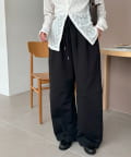 ウエストはゴム+ドロスト仕様で着脱しやすく、サイズ調整も可能です。