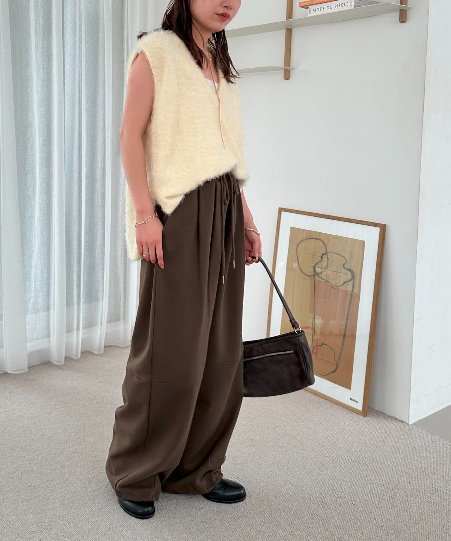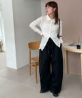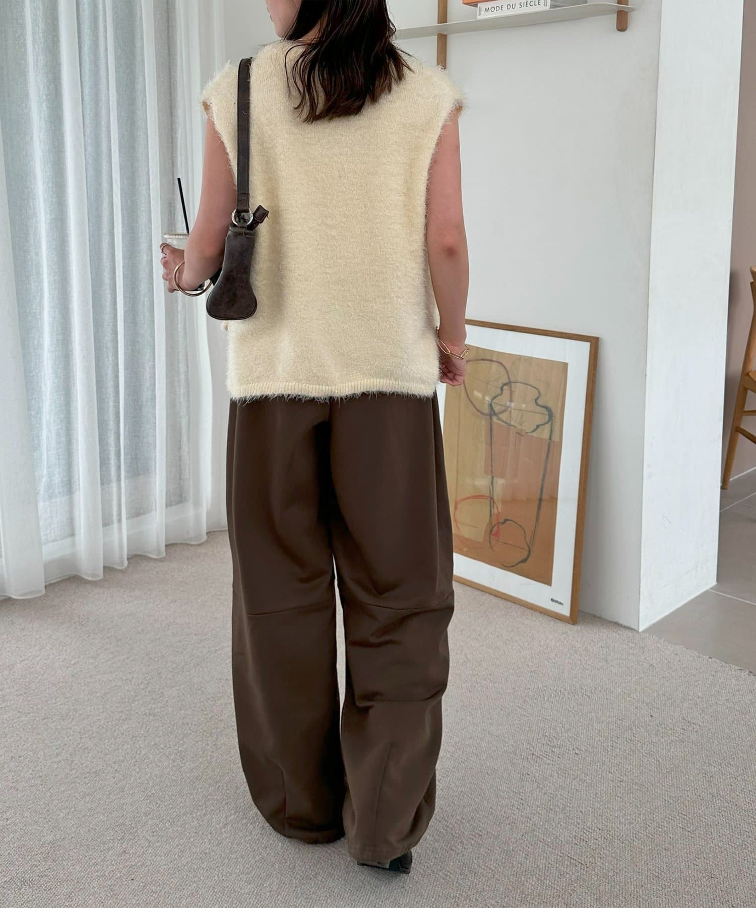 フロントにはタックが施されており、立体感をプラスしながらシルエットをすっきりと見せてくれます。