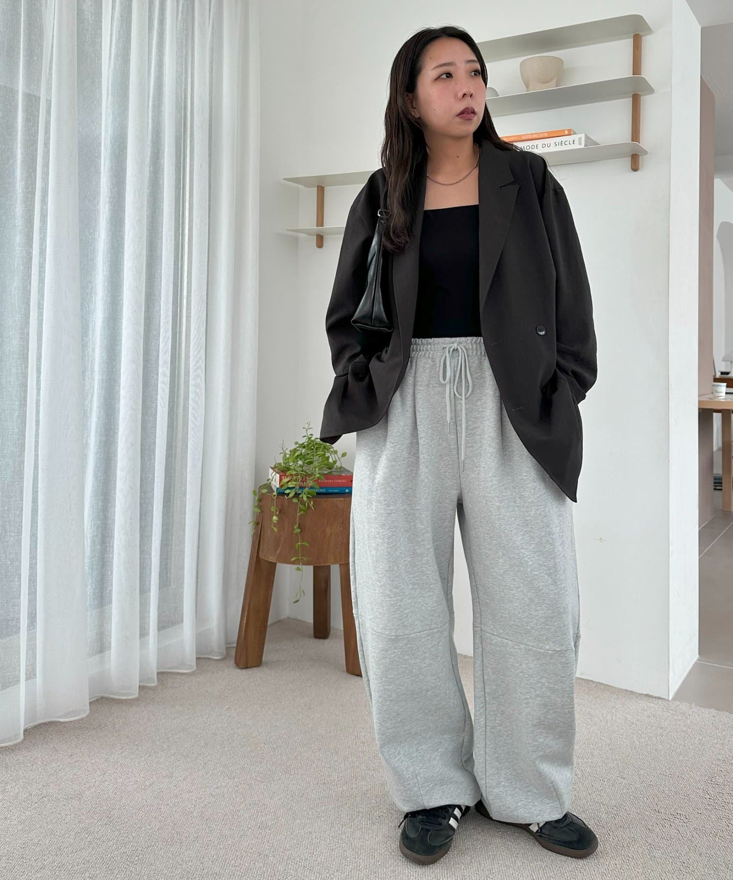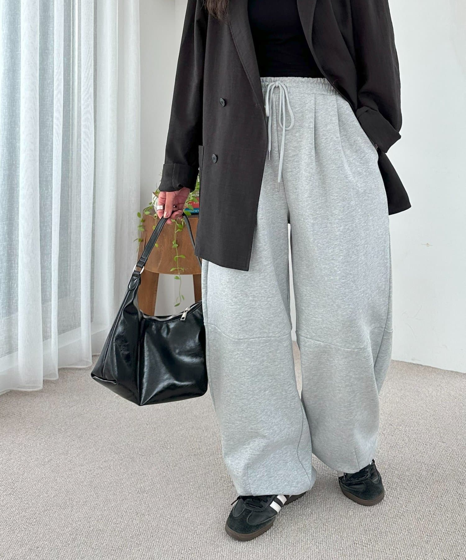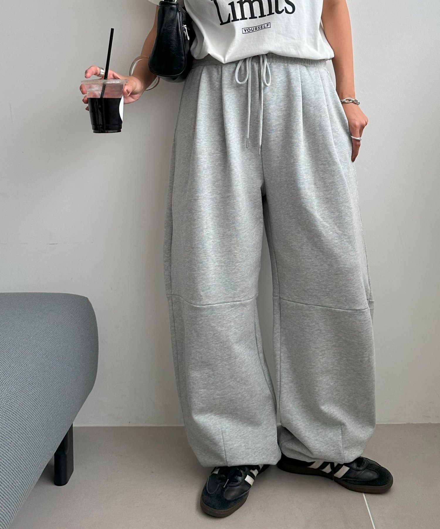 ゆるっと今っぽい、バレルレッグスウェットパンツ
