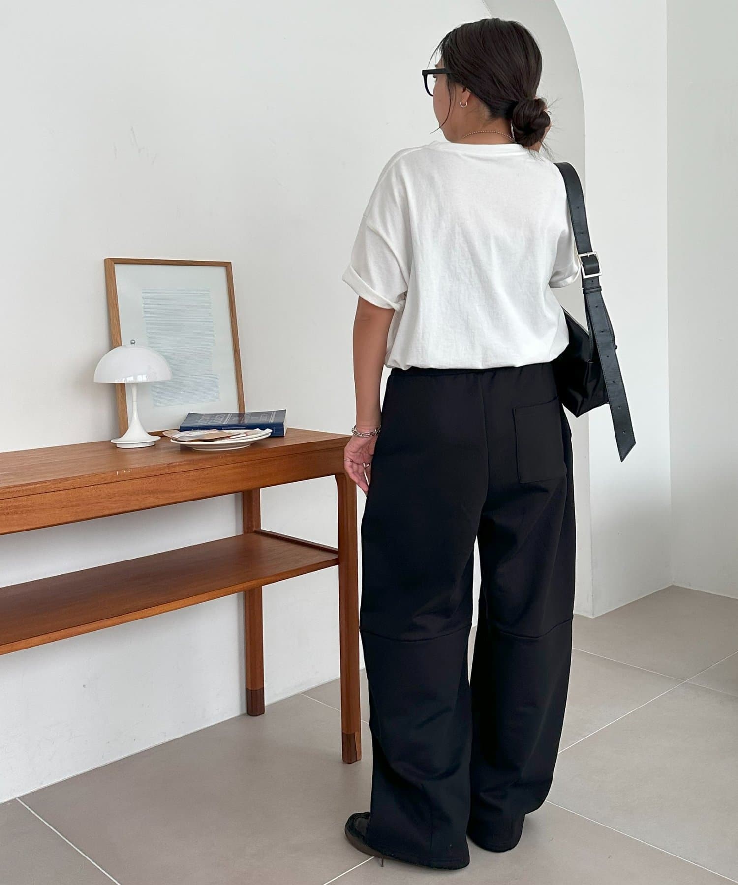 丸みを帯びたシルエットが特徴のバレルレッグデザインで、リラックス感とトレンド感を両立。