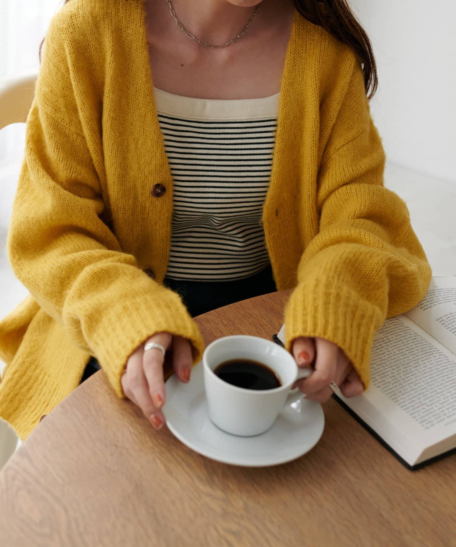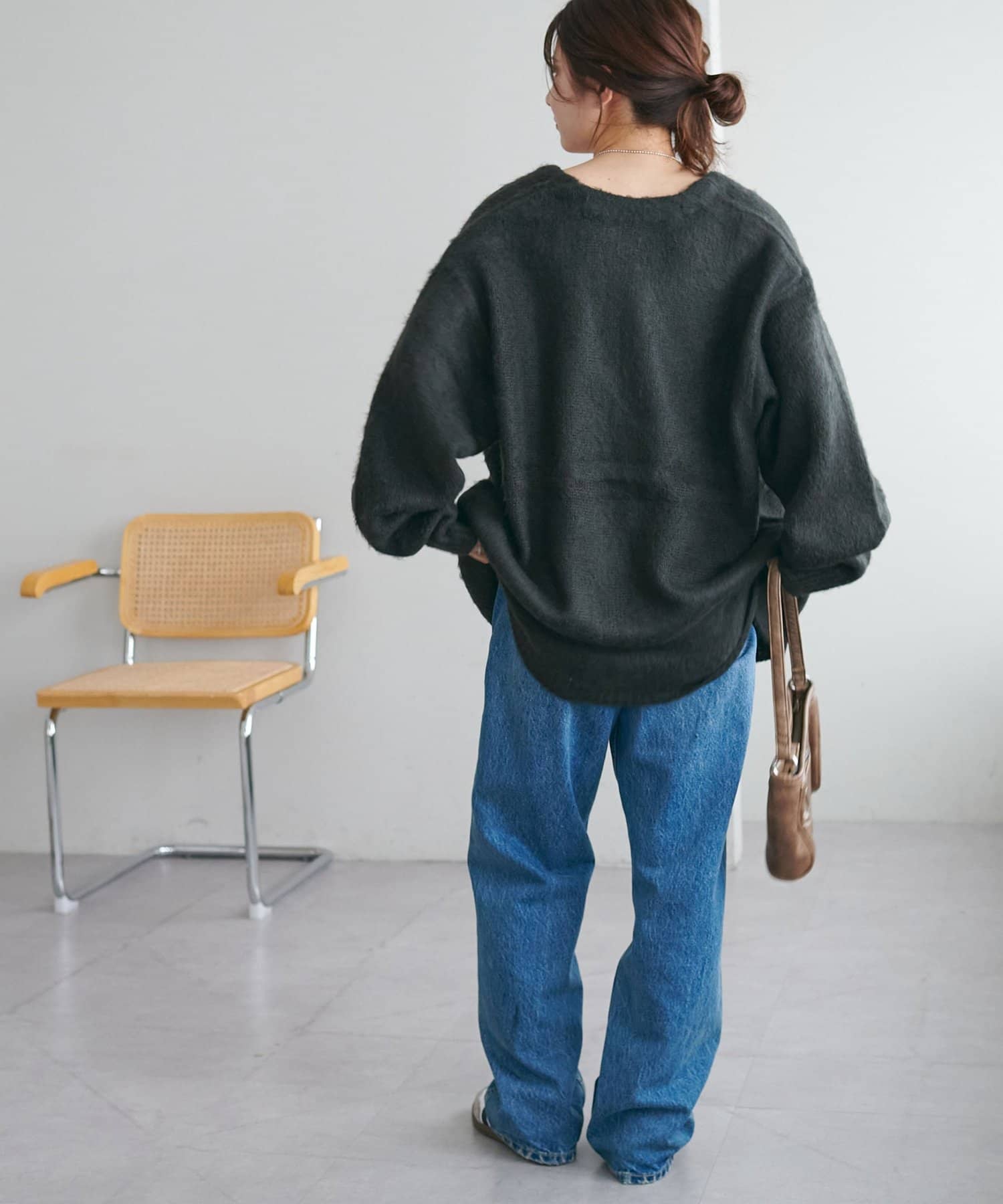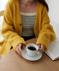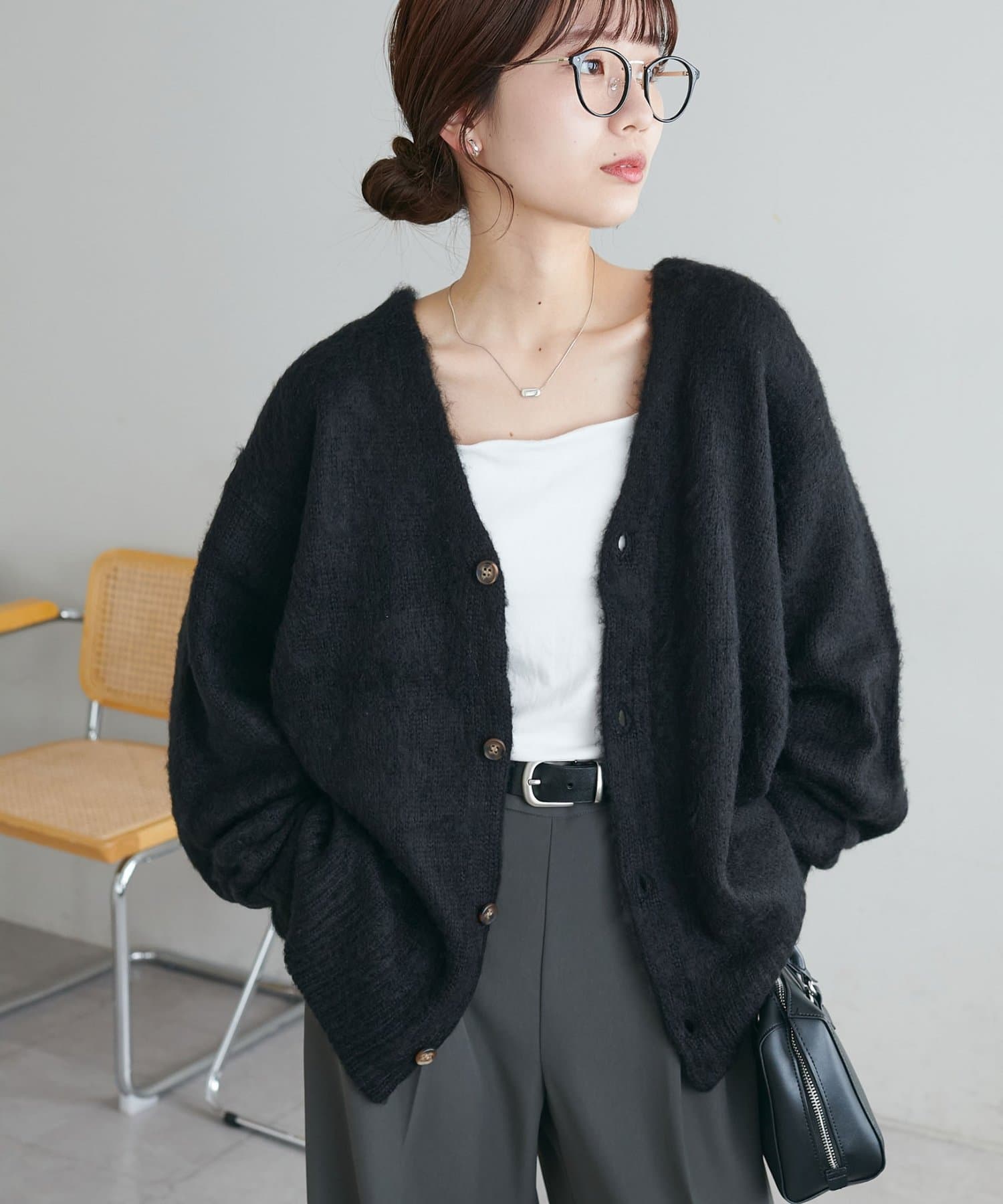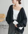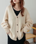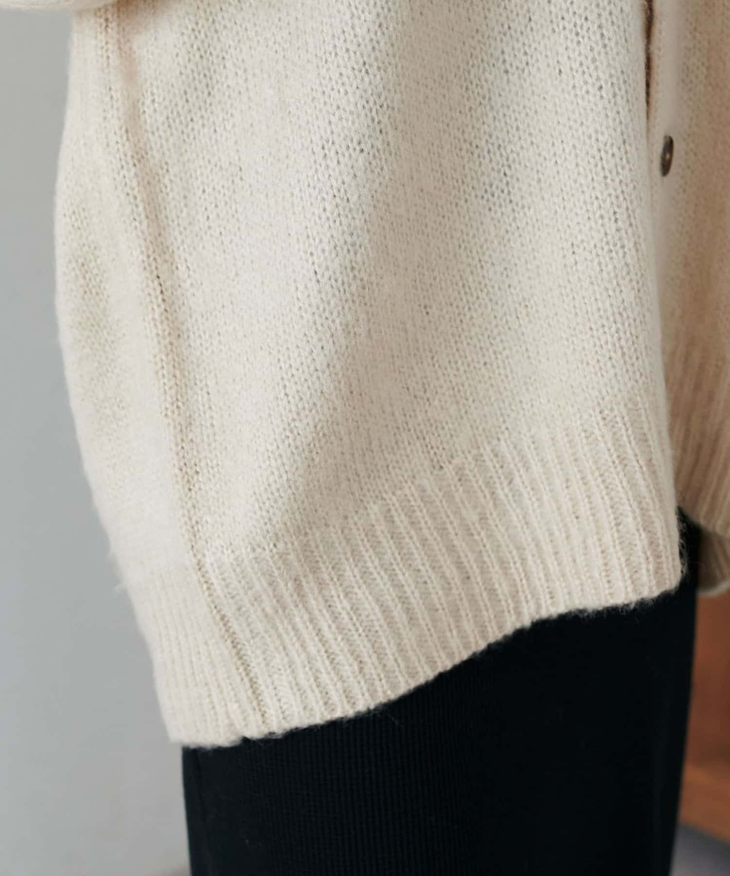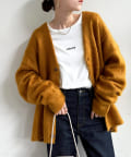 程よく厚みがありながらも着心地は軽く、モヘアのようなふわっとした柔らかさで肌当たりが良い、人気のブラッシングカーディガン。