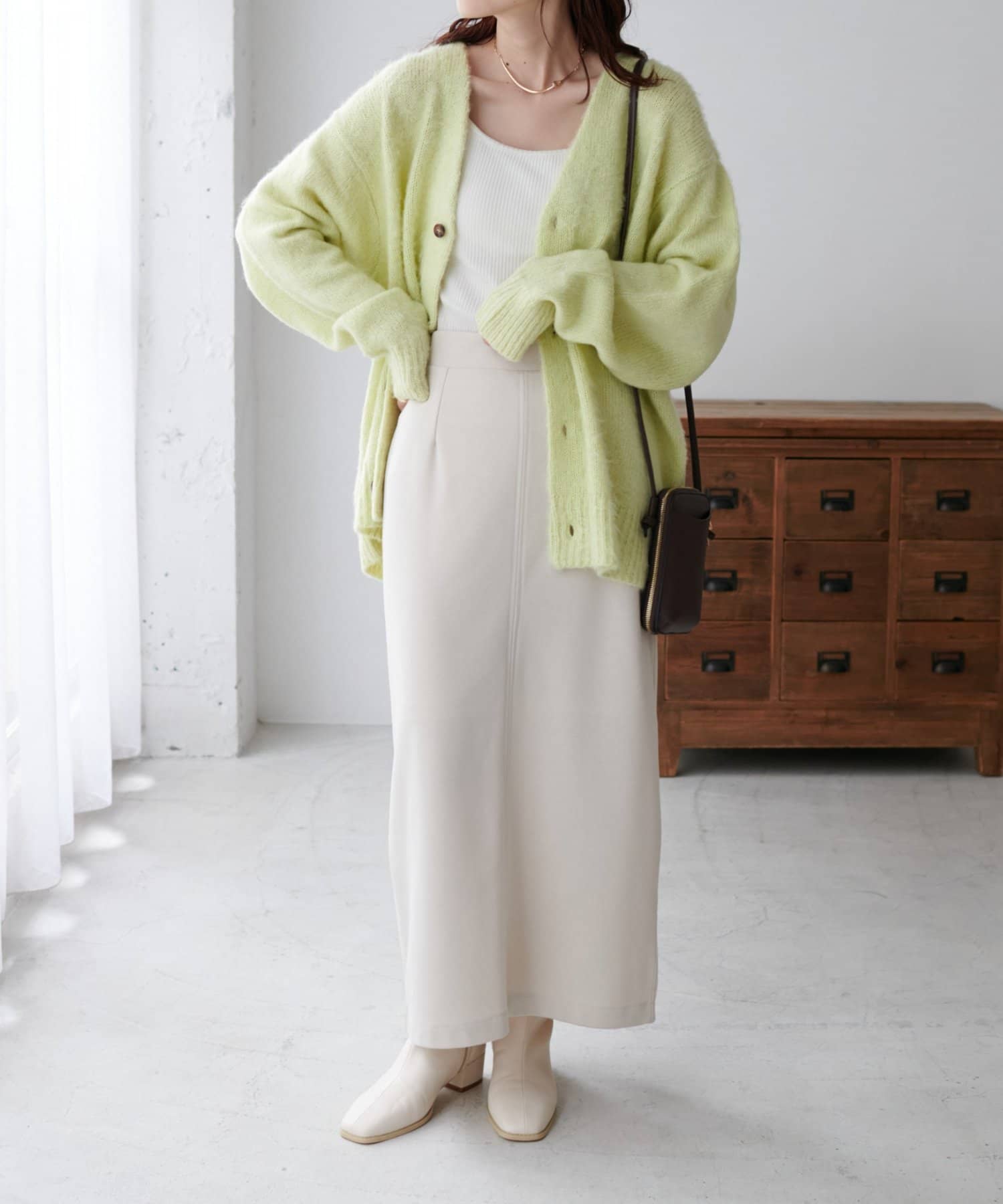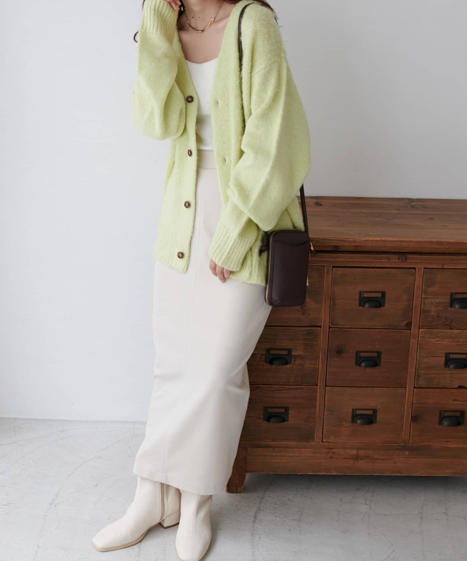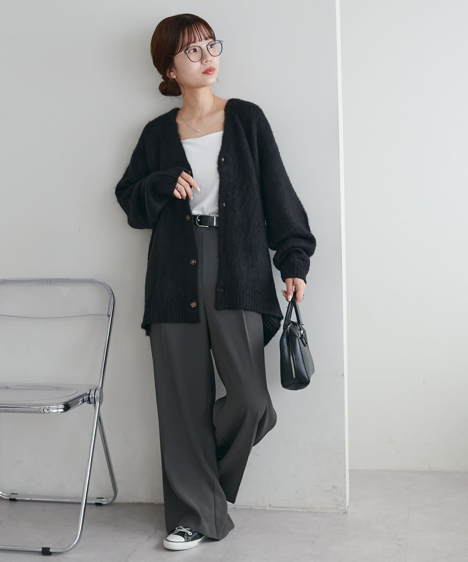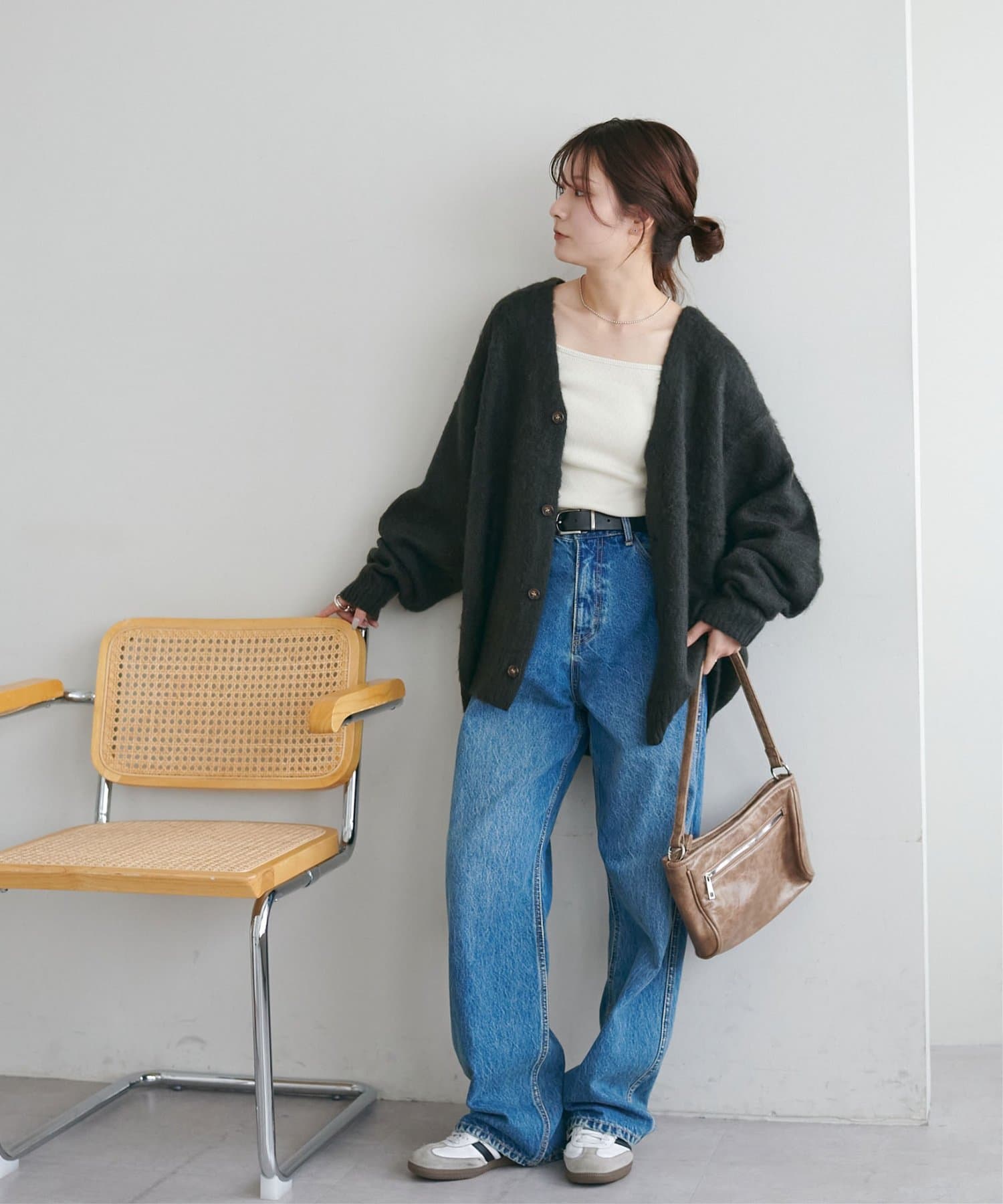 159cmレディーススタッフ:ユニセックスのカーディガンなのでゆるっとしたシルエットが可愛いです!絶妙なカラーもコーデのポイントになります☆