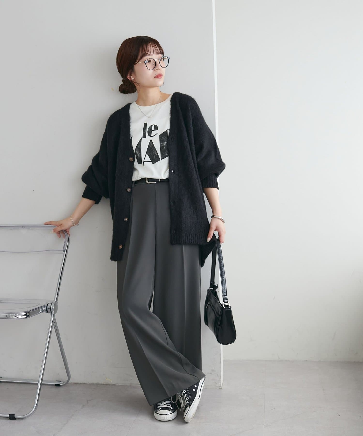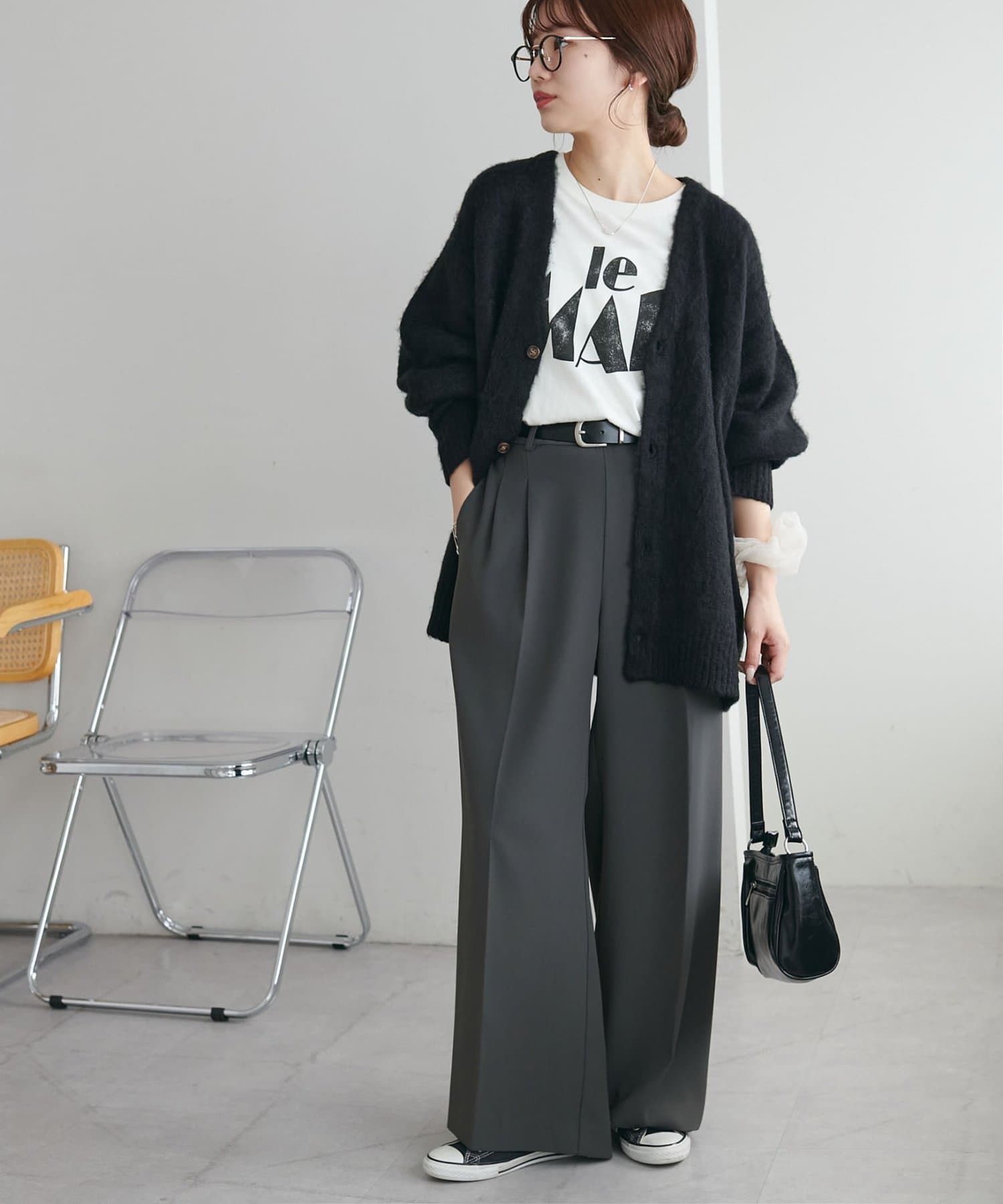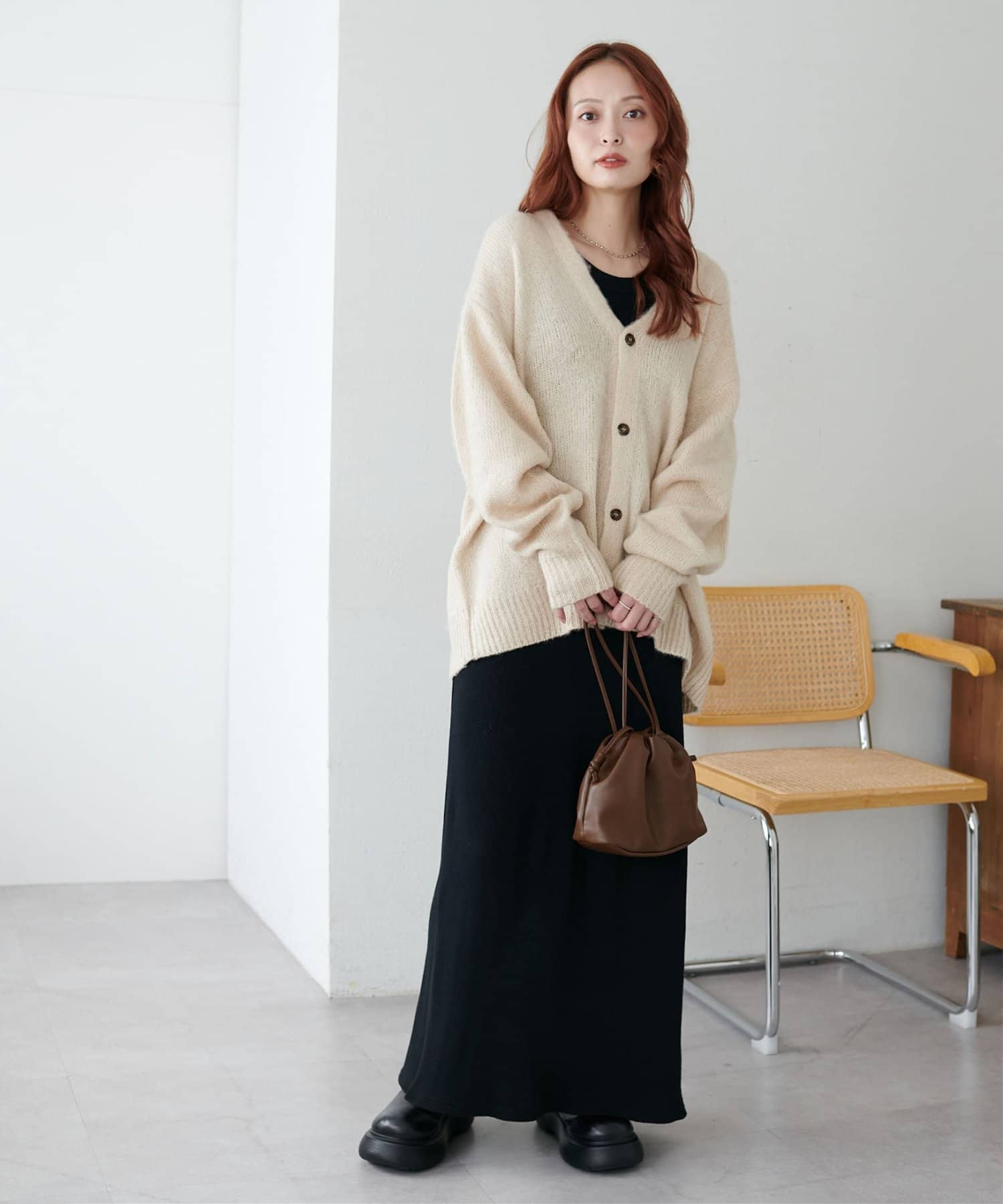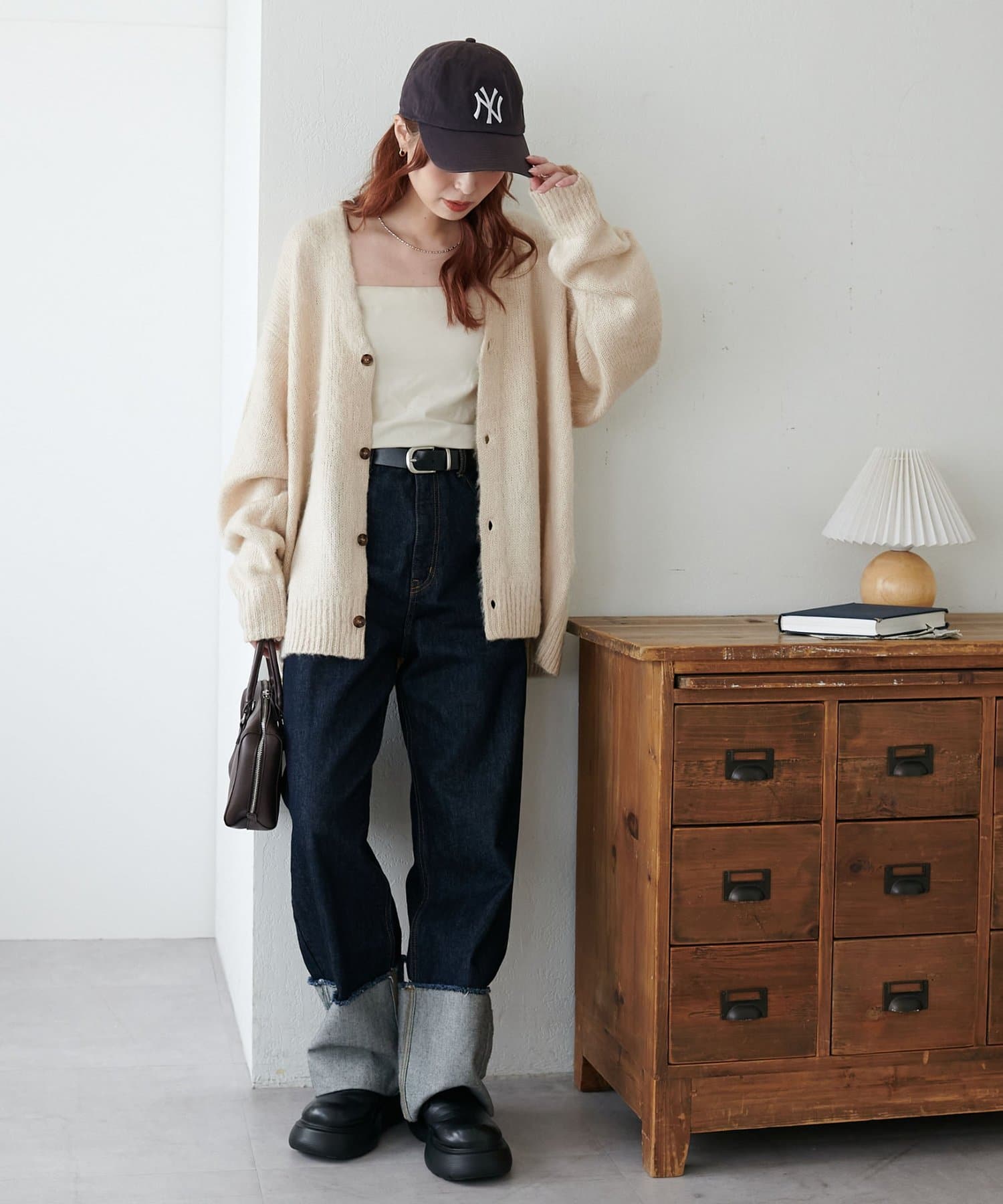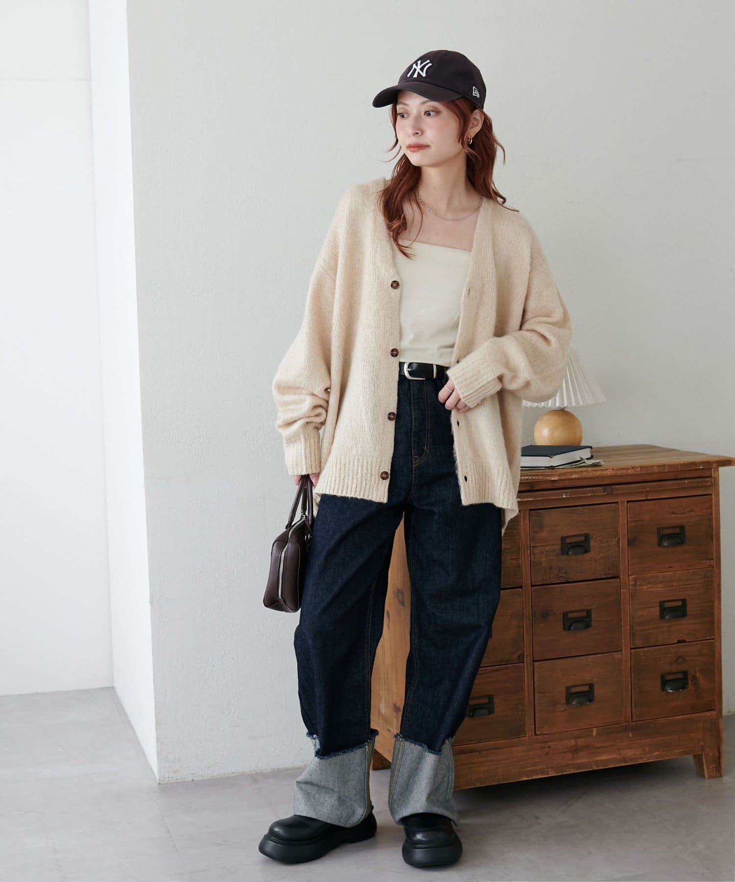 159cmレディーススタッフ:ユニセックスのカーディガンなのでゆるっとしたシルエットが可愛いです!絶妙なカラーもコーデのポイントになります☆