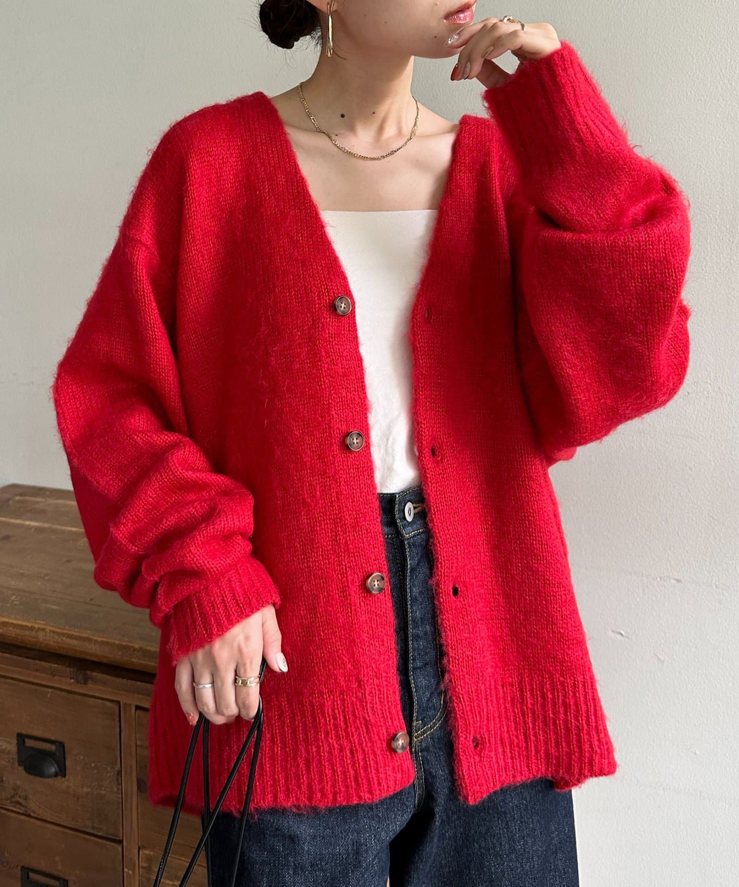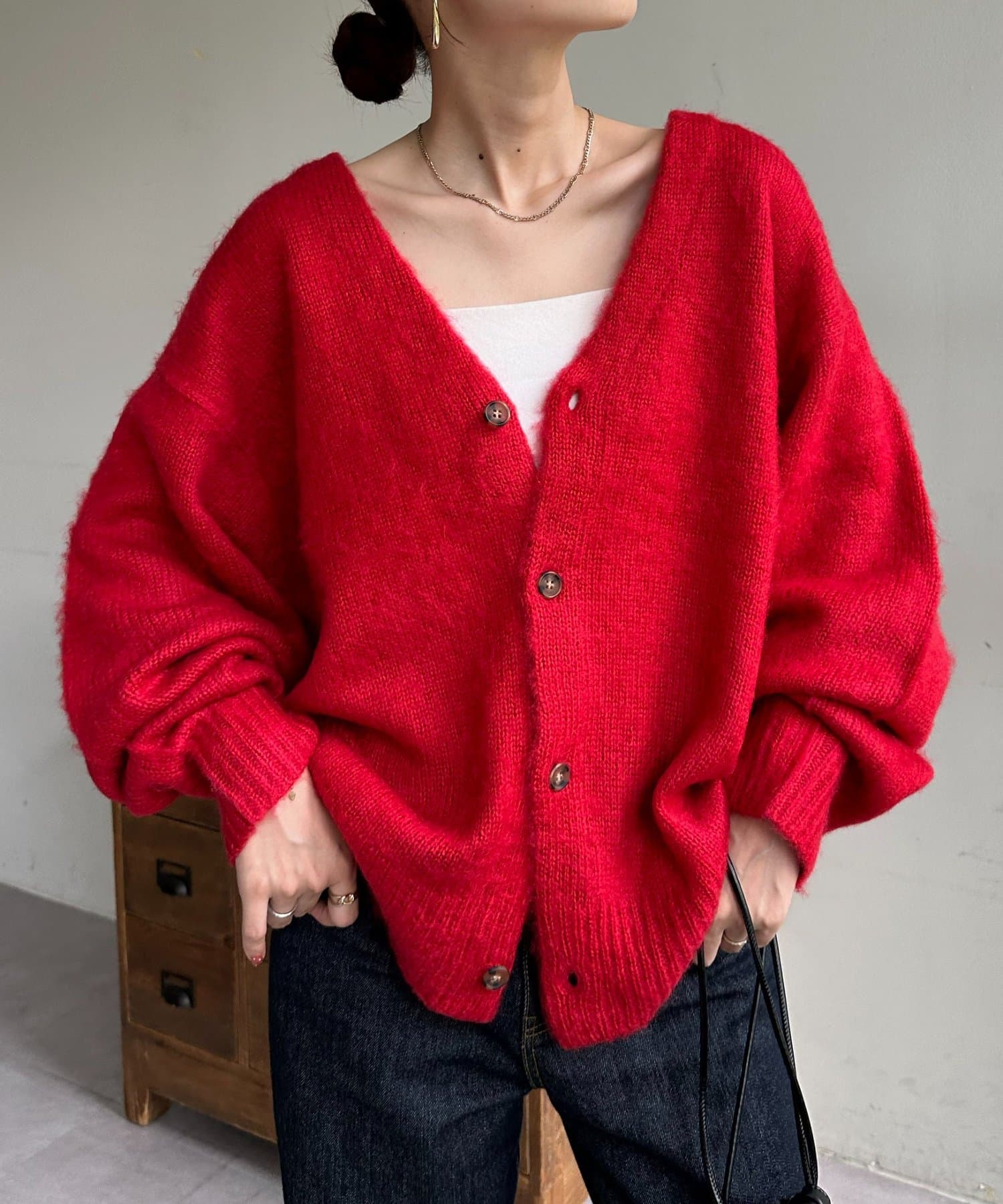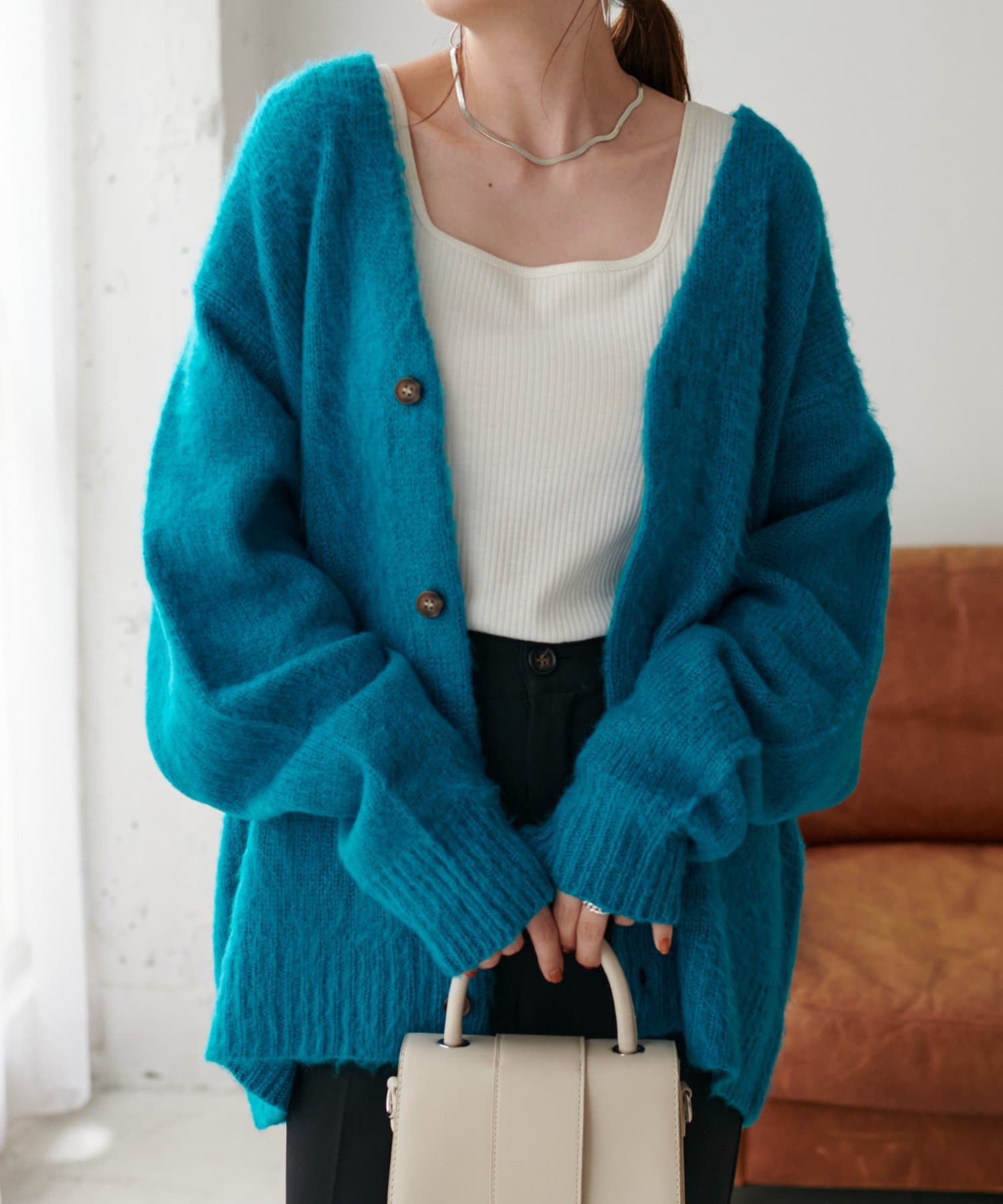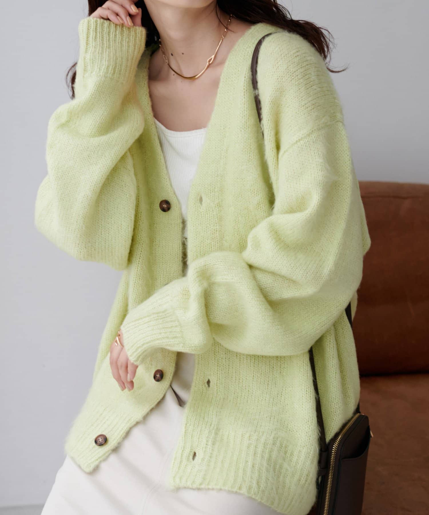 大人気のモヘアライクブラッシングカーディガンが新色を加えて新登場!