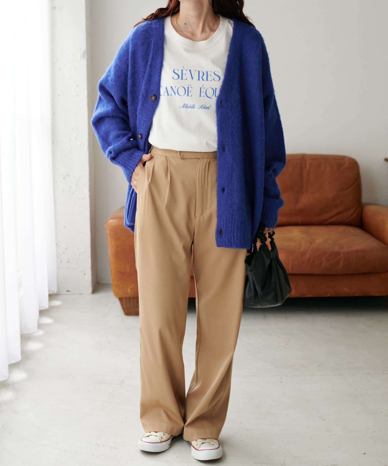 体型を選ばずゆるっとビッグシルエットで楽しめるユニセックスサイズは、インナーのレイヤードも着膨れ感がなく、深めのVネックなのでスッキリと着用していただけます◎