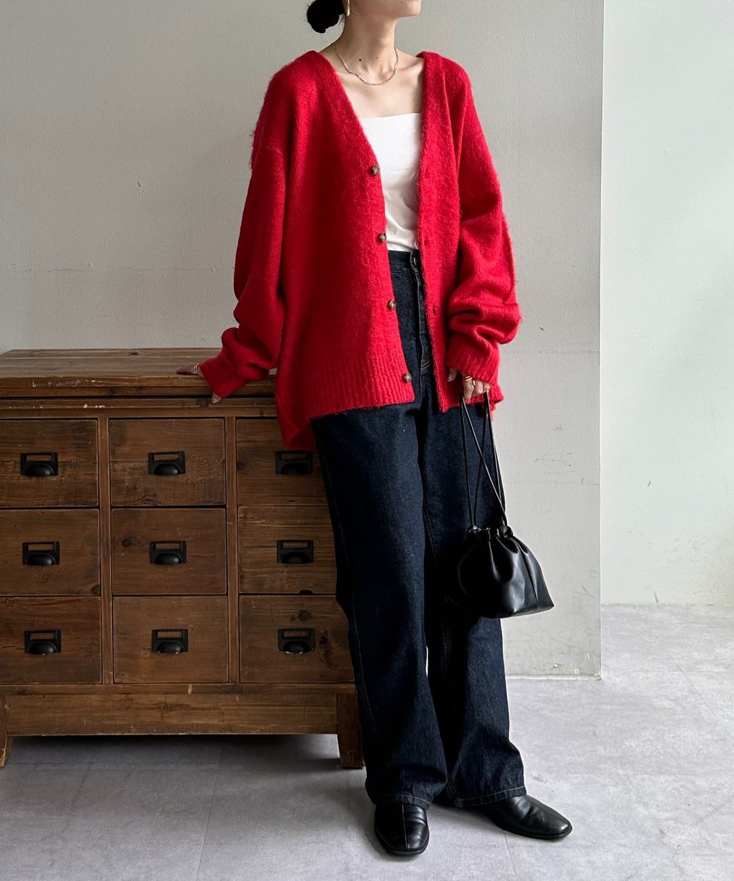 寒い時にはオーバーコート・ジャケットのミドルレイヤーアイテムとして、アクセント使いに最適です◎