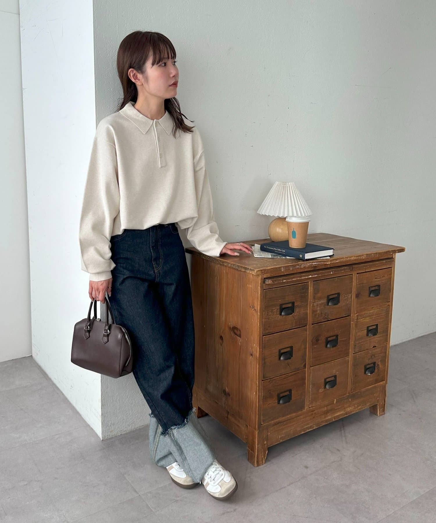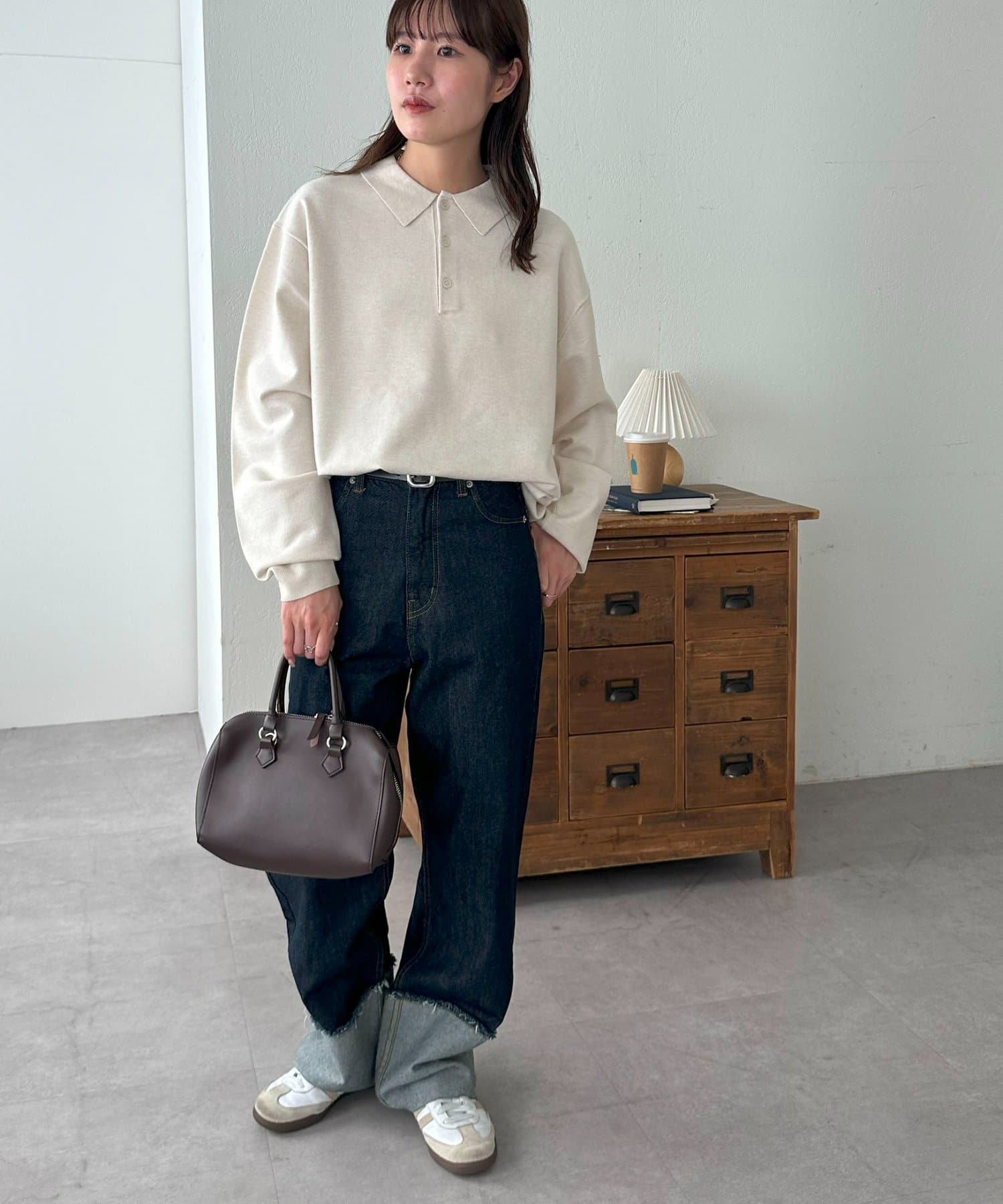 ややゆとりのあるリラックスシルエットで、抜け感のある大人カジュアルを演出します。