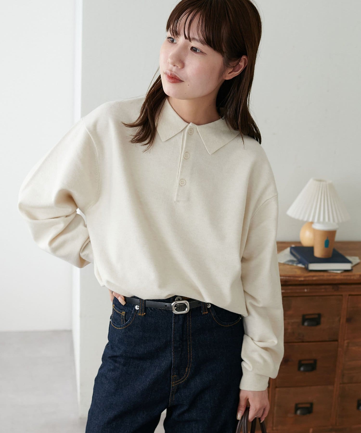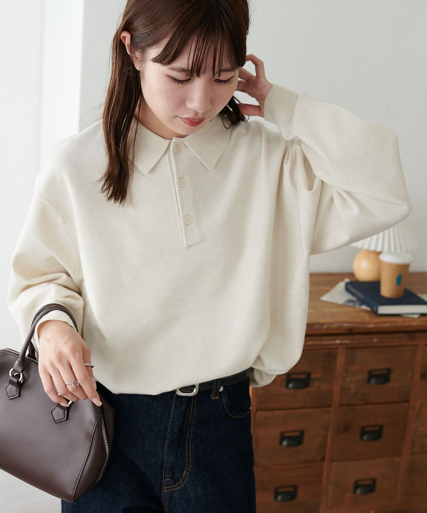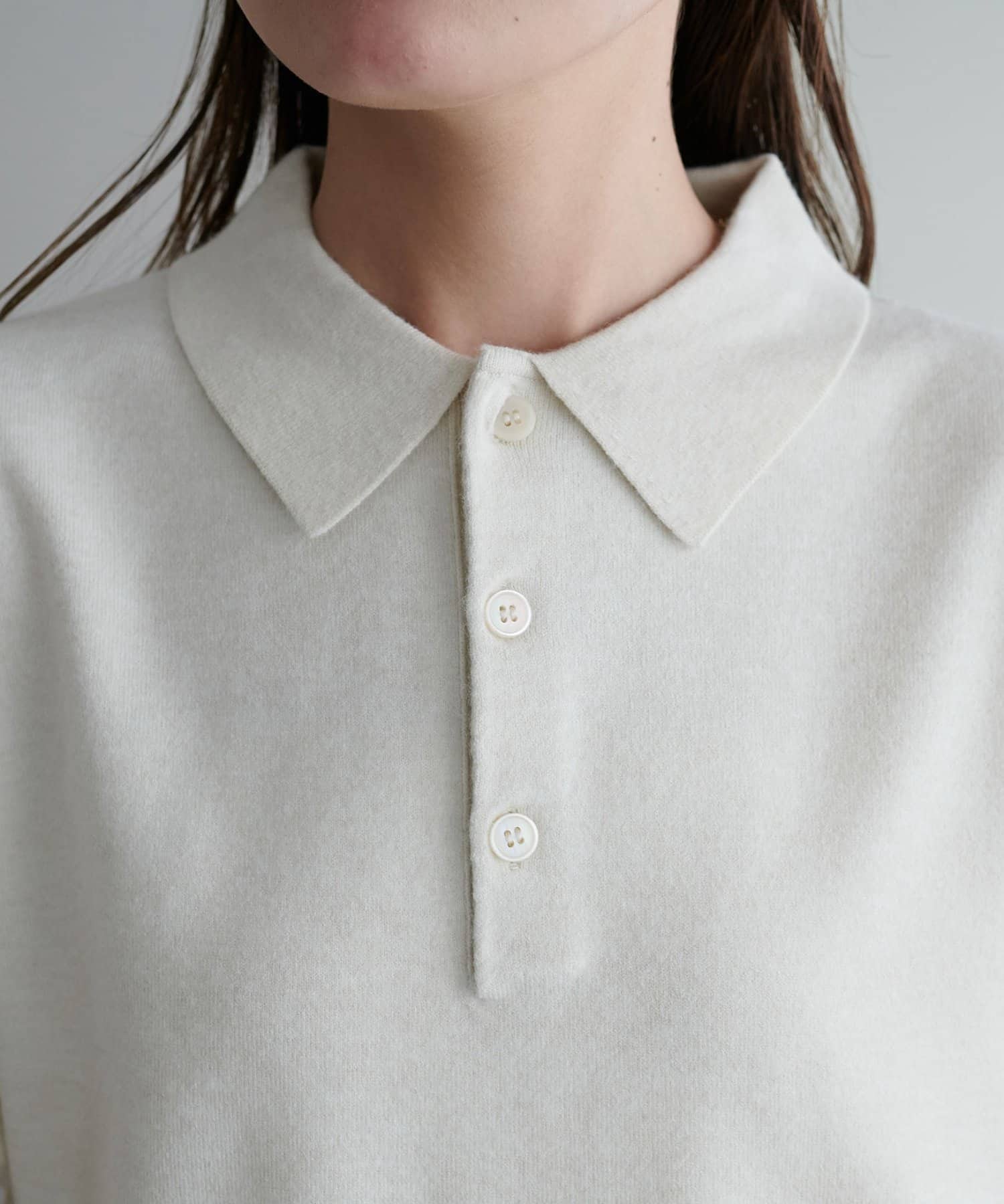 ベーシックなポロ襟とフロントの3ボタンデザインがきちんと感をプラス◎