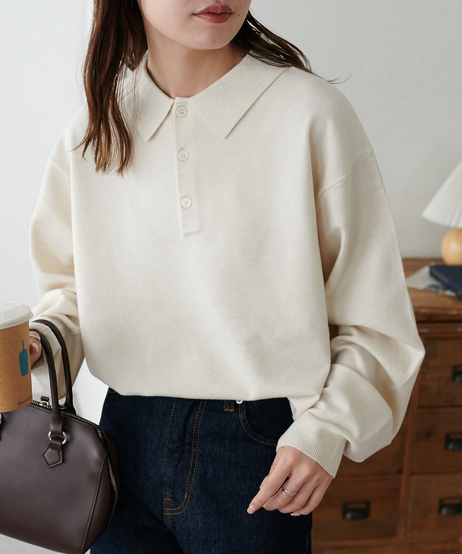 【こなれ見え◎/ユニセックス】ソフトタッチニットポロ