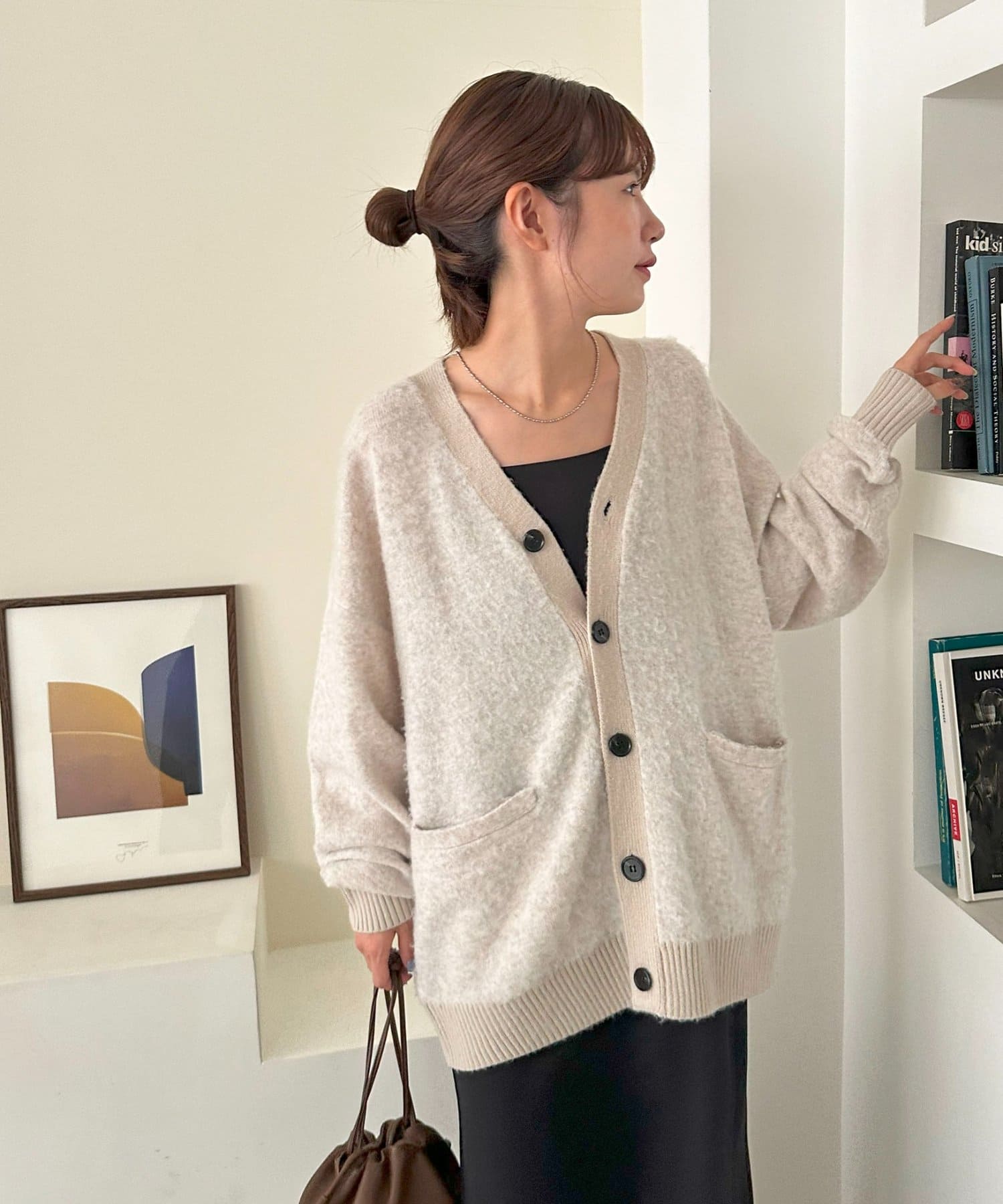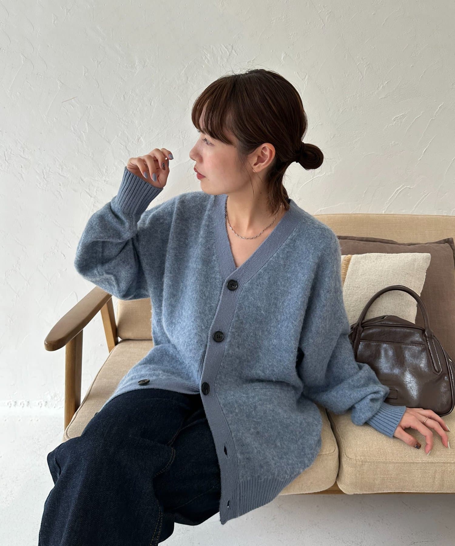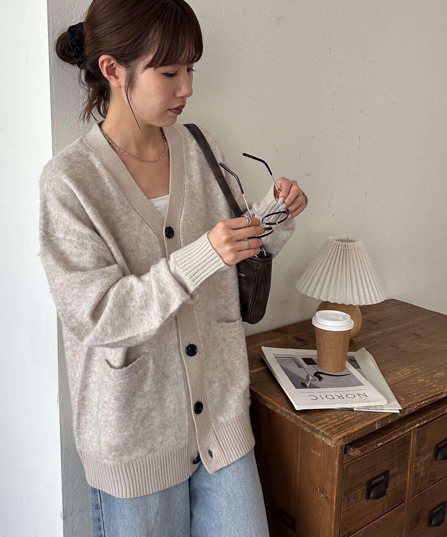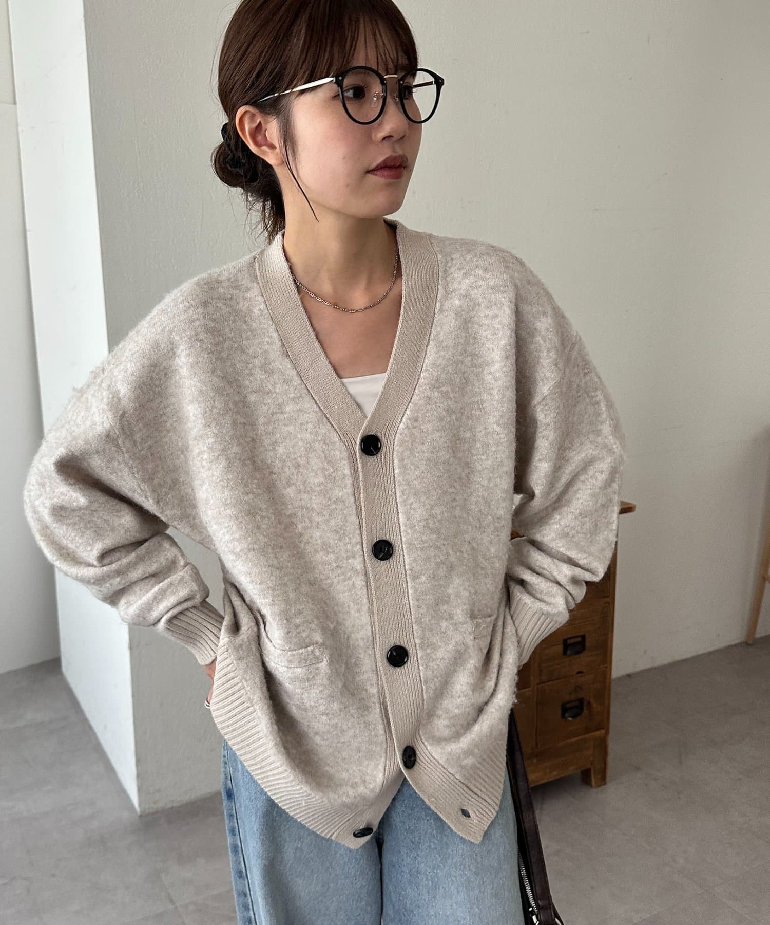ふわっとした柔らかな風合いが魅力のニットカーディガン。
