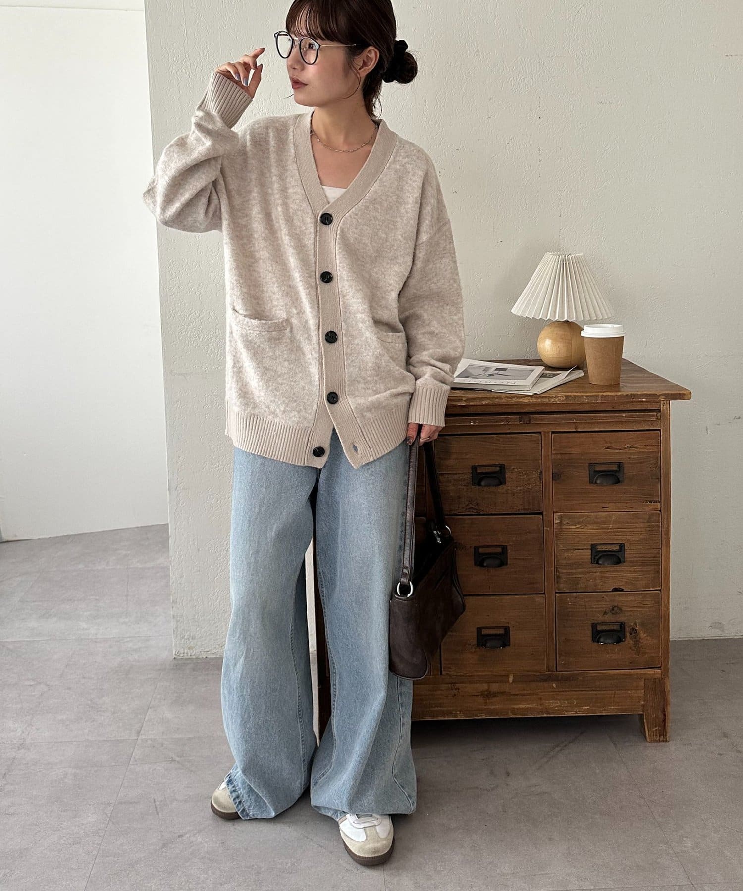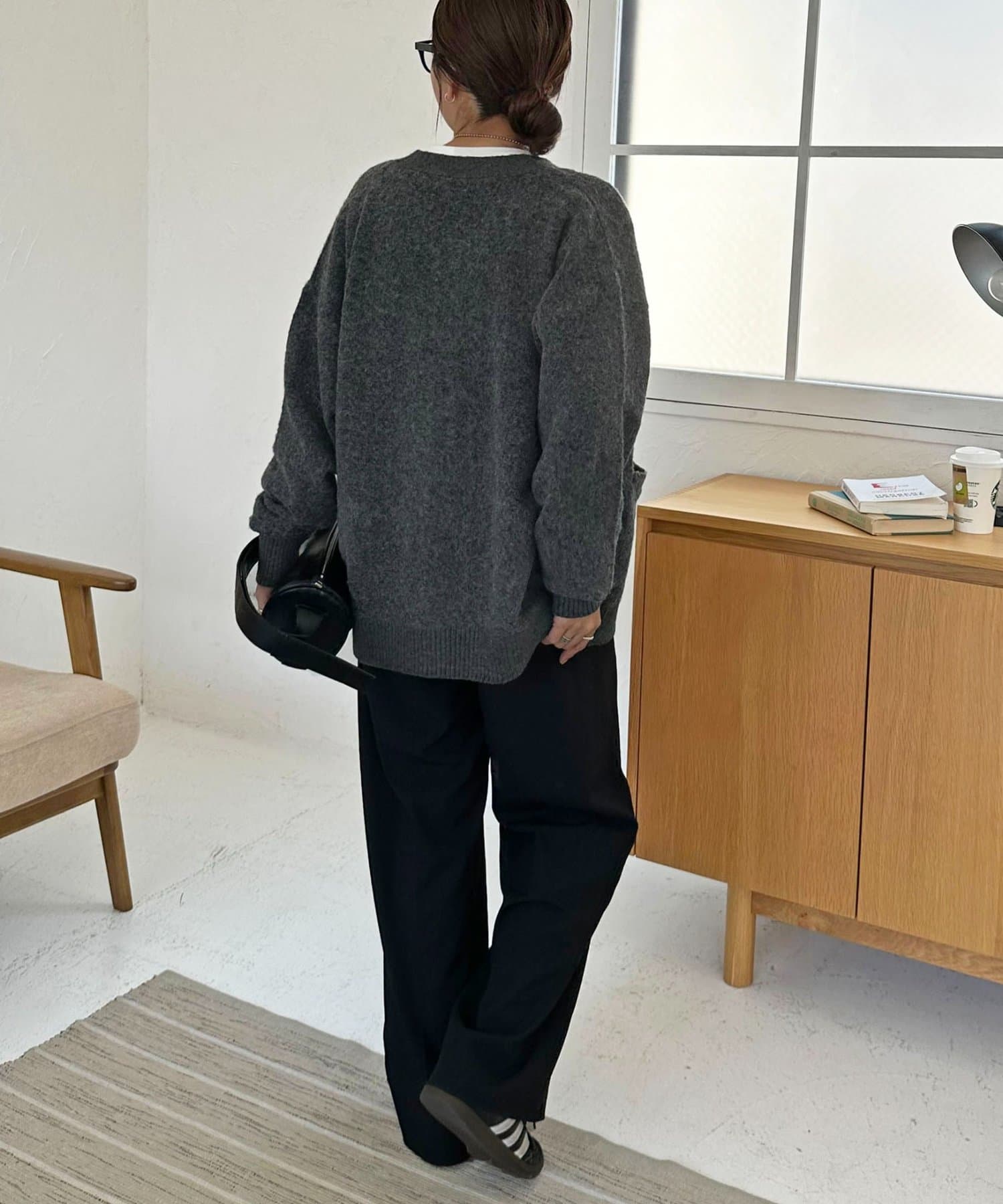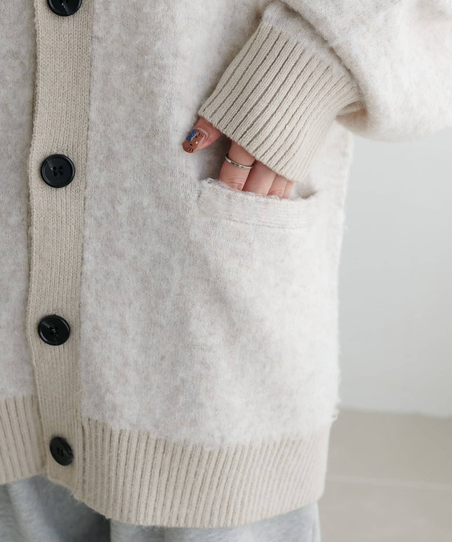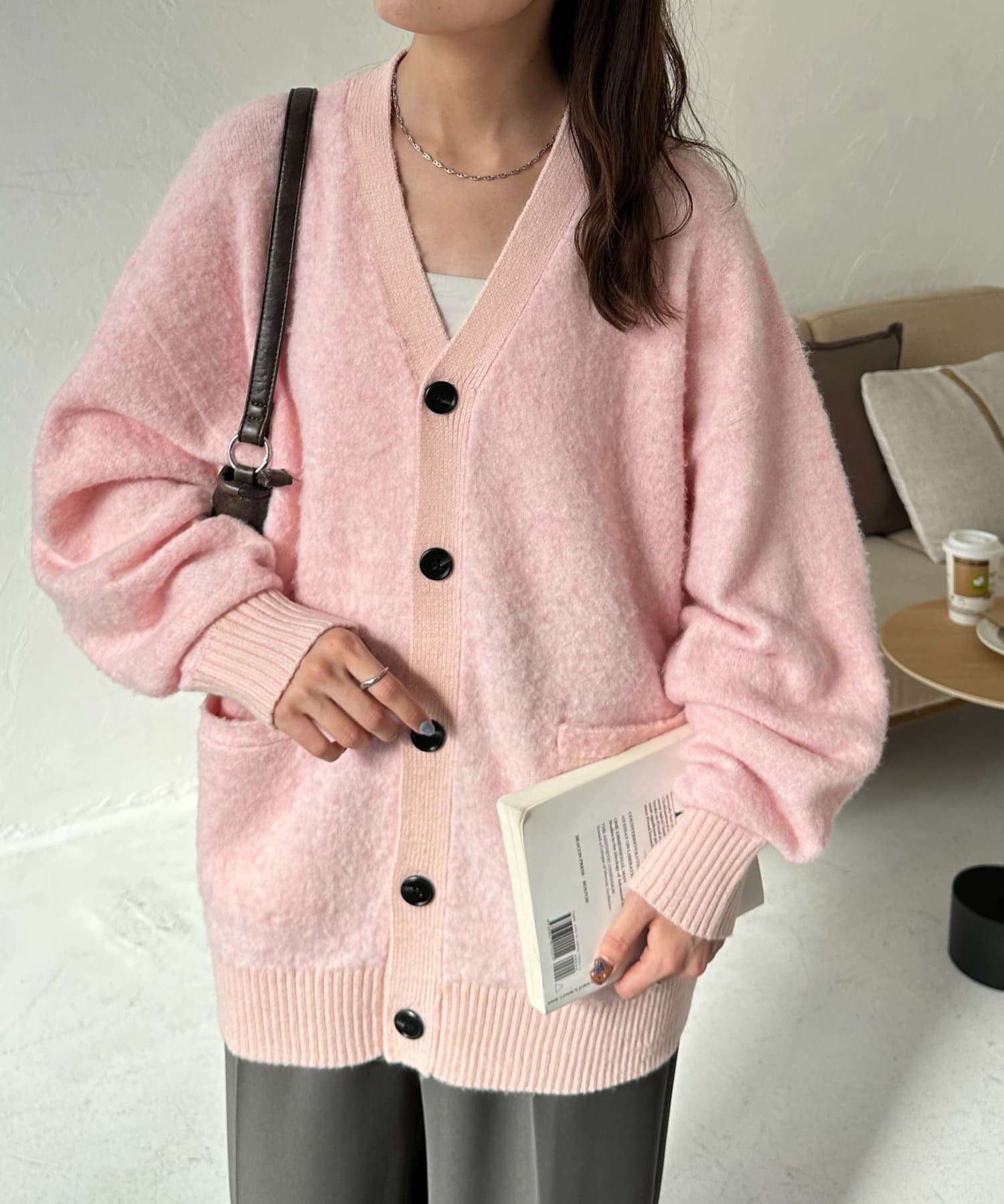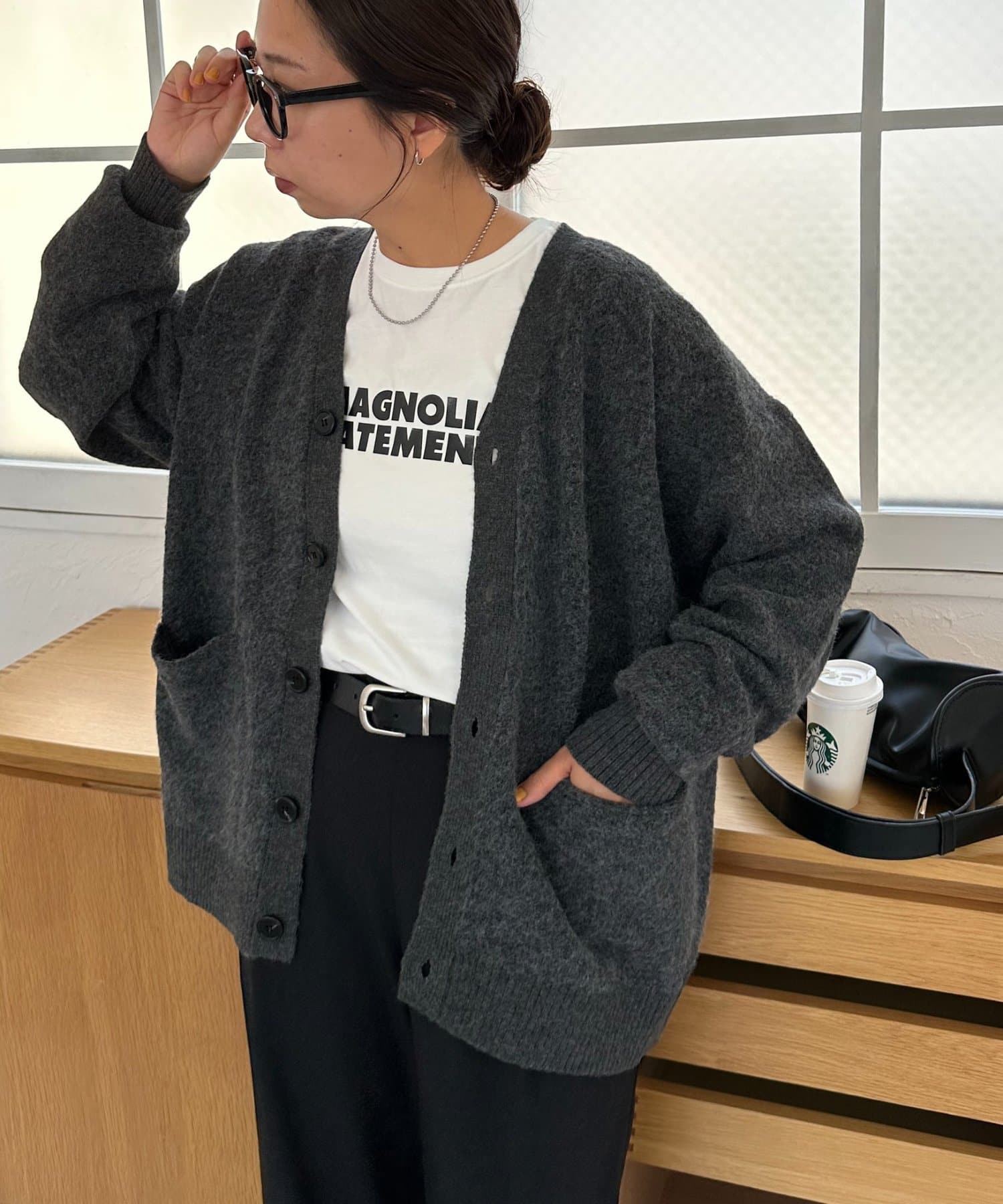 ふわっとした柔らかな風合いが魅力のニットカーディガン。