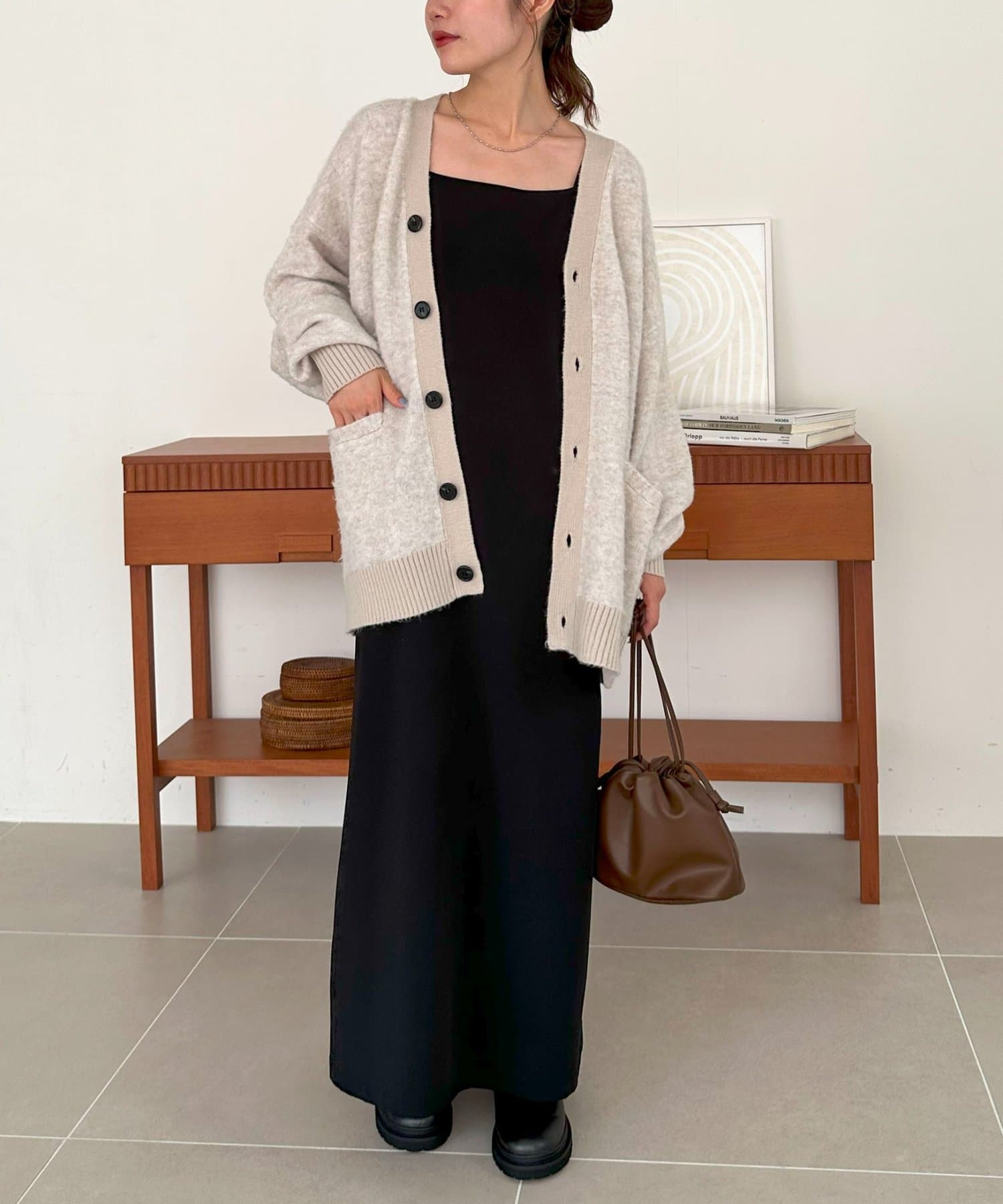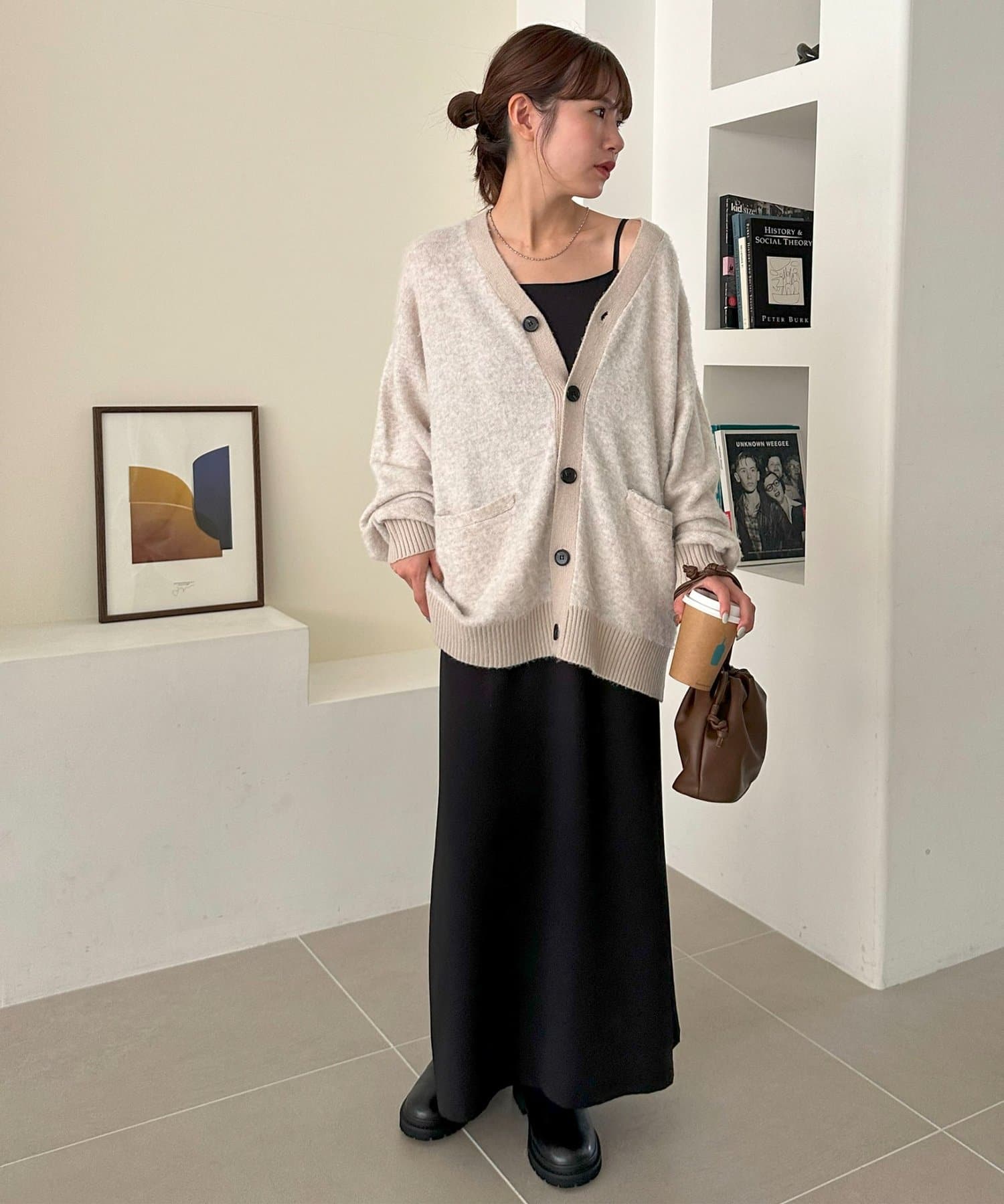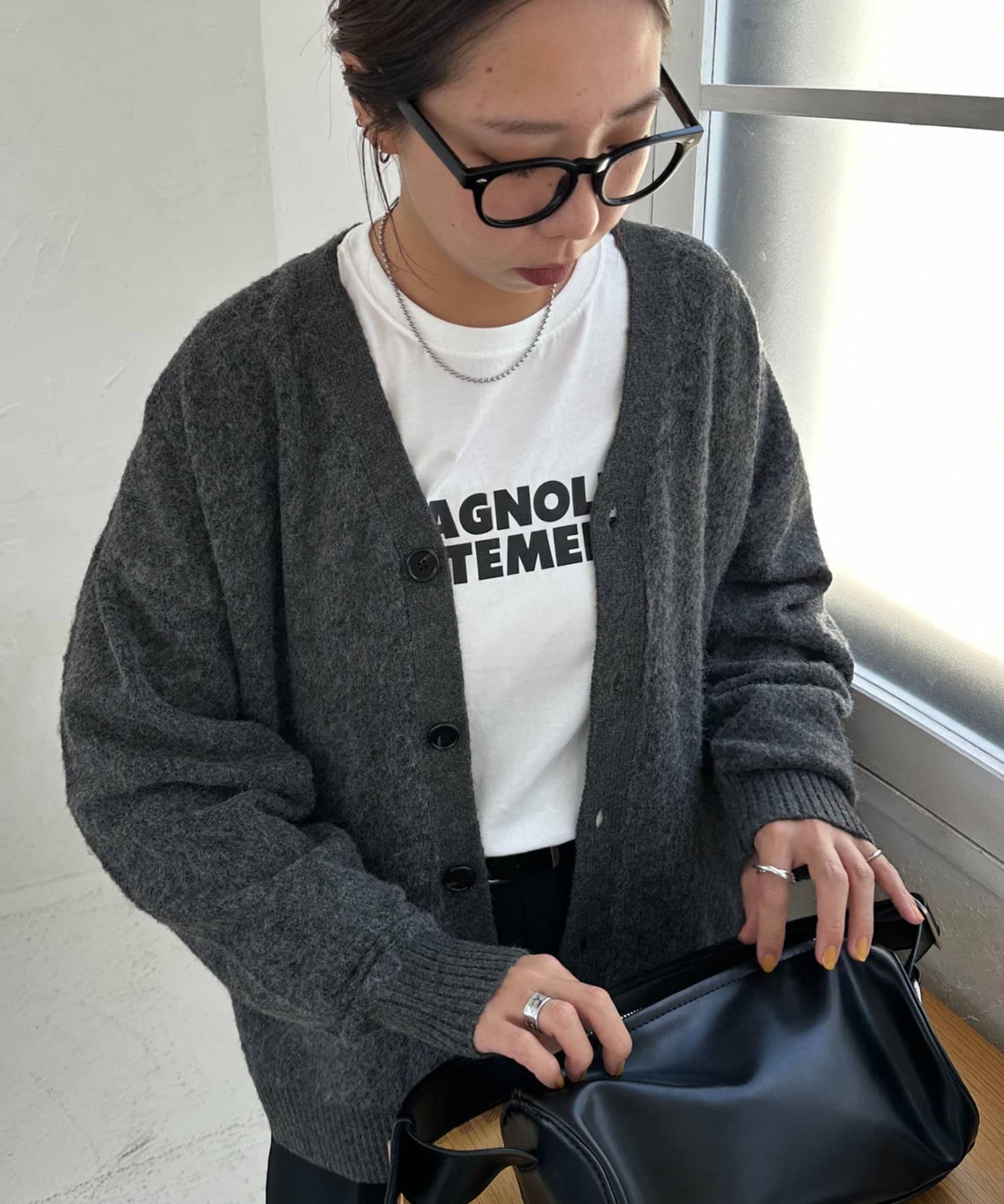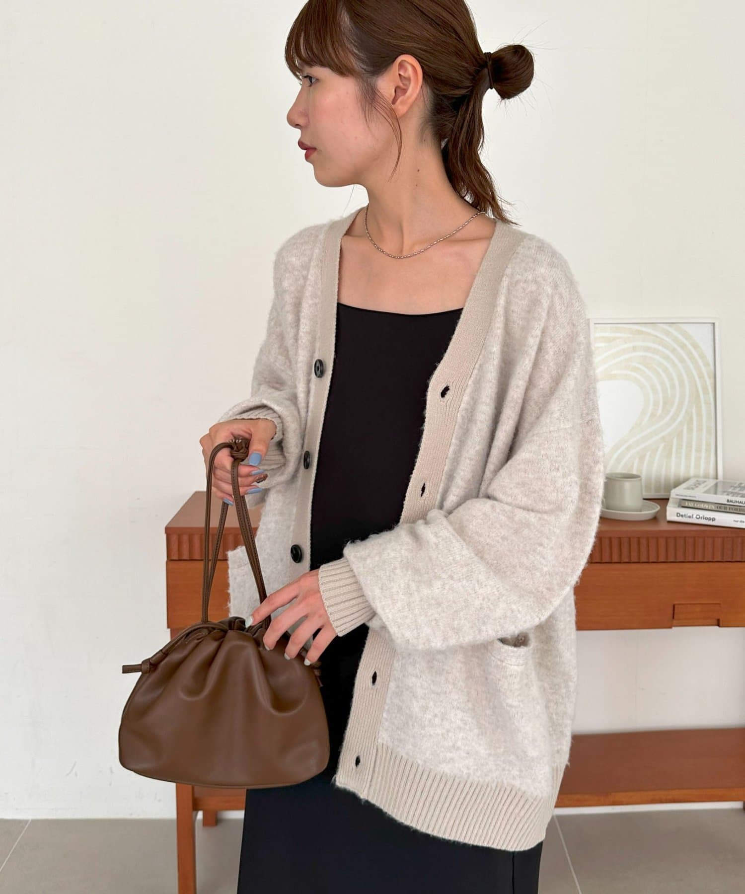 ふわっとした柔らかな風合いが魅力のニットカーディガン。