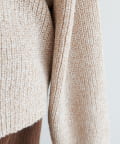 ブークレ糸を使用しているため、独特のループ状の表面感があり、見るだけで暖かさが伝わる素材感が魅力です。ふんわりとした柔らかさで肌触りが非常に良く、着心地は抜群♪