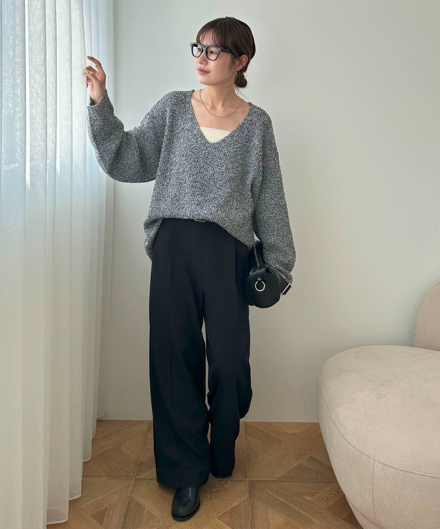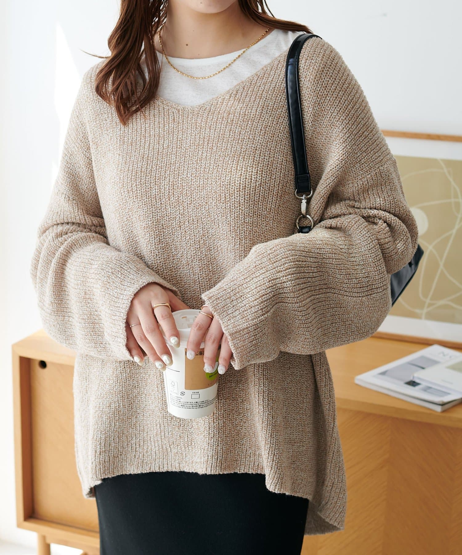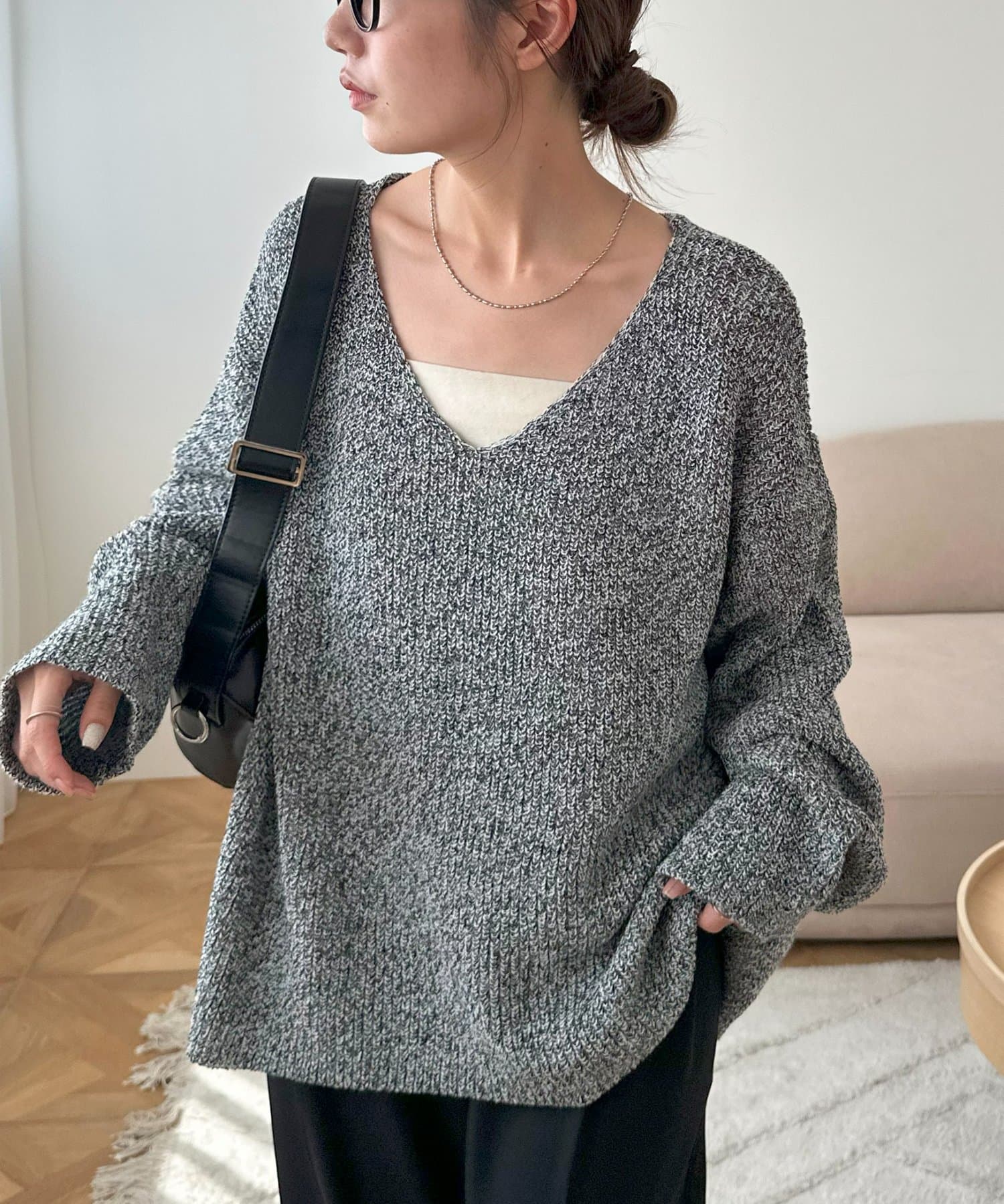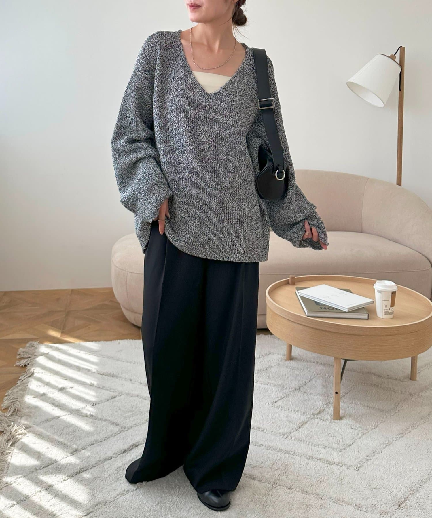 幅広いボトムスと相性が良く、デニムやワイドパンツ、スラックスなどどんなスタイルにも合わせやすい万能ニットです。シンプルなデザインなので、ジャケットやコートのインナーとしても活躍し、重ね着で季節感を出すのもおすすめ。ゆったりとしたシルエットは動きやすく、リラックス感のあるカジュアルスタイルを実現。オン・オフ問わず幅広いシーンでおしゃれを楽しめる一枚です。