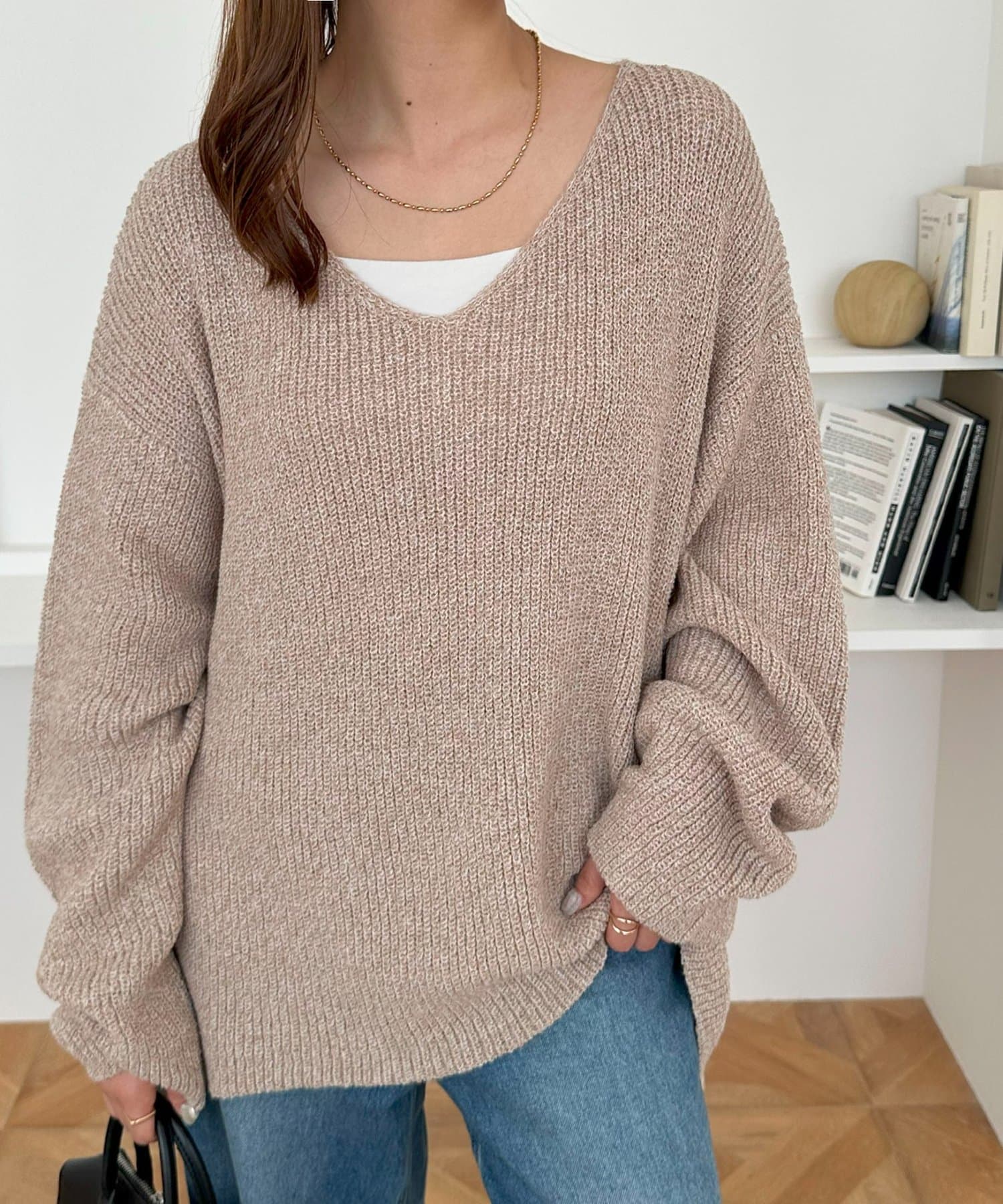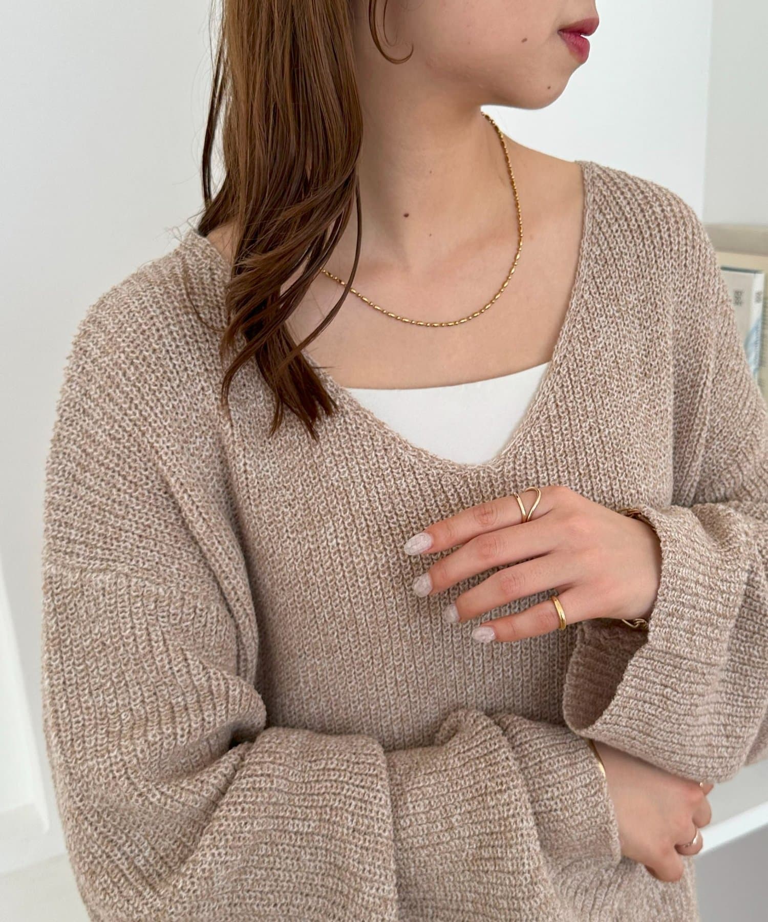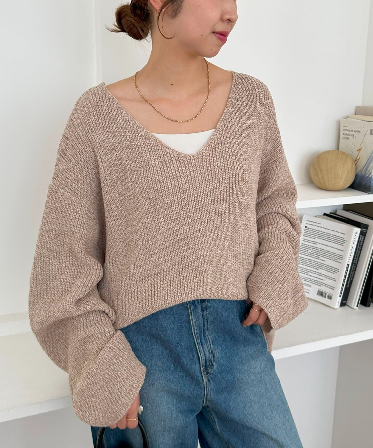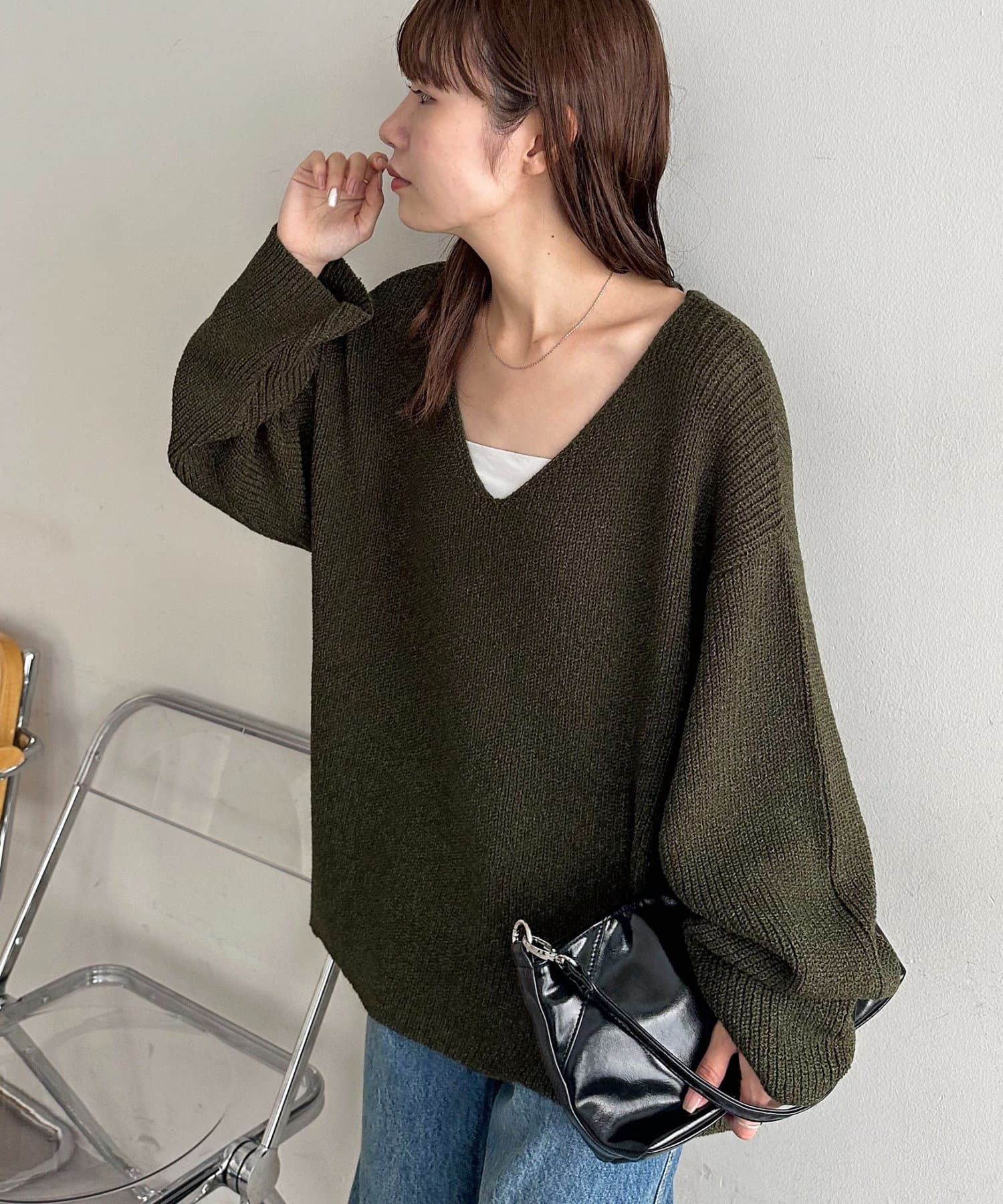 さりげなくおしゃれが決まるブークレVネックニット