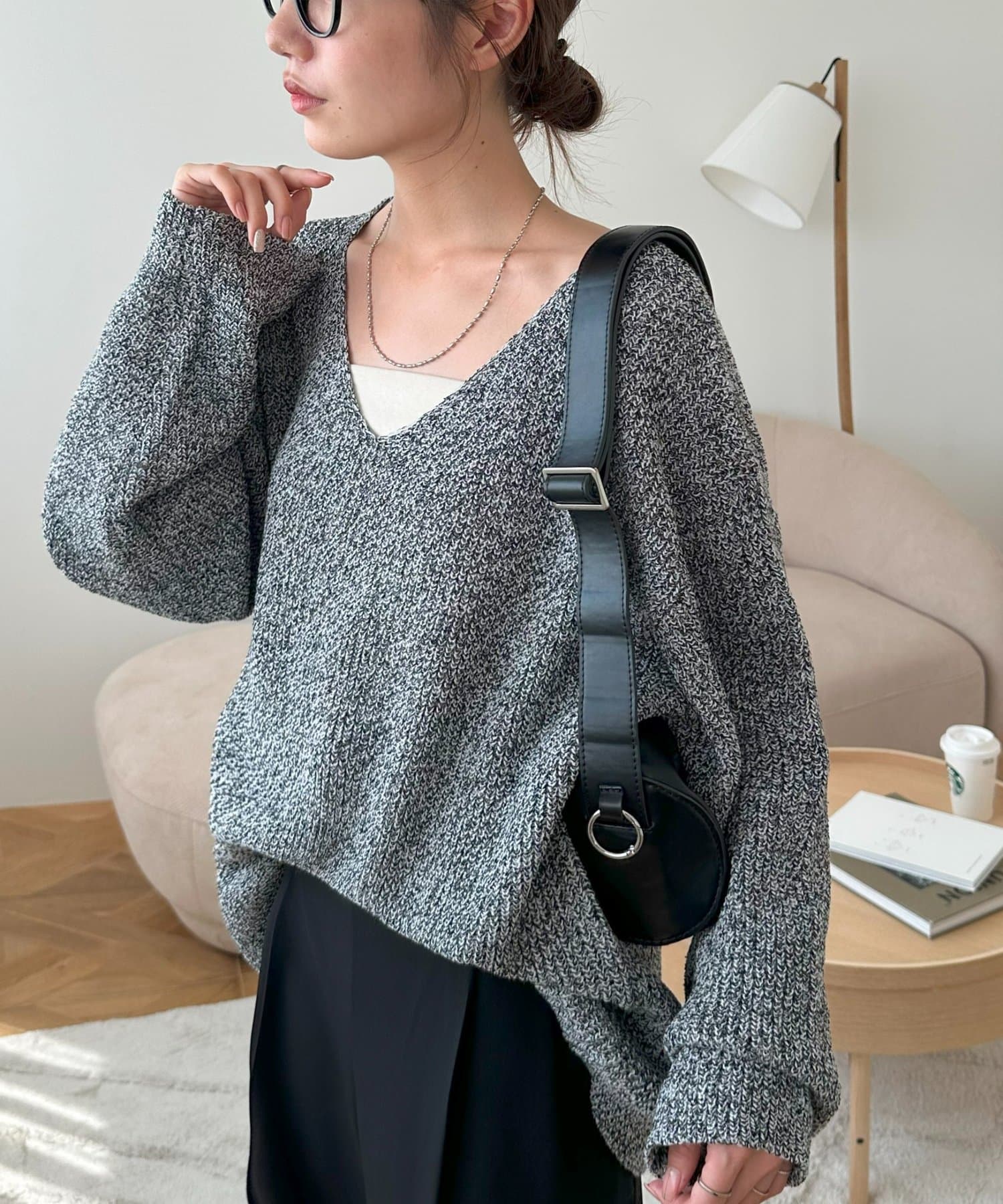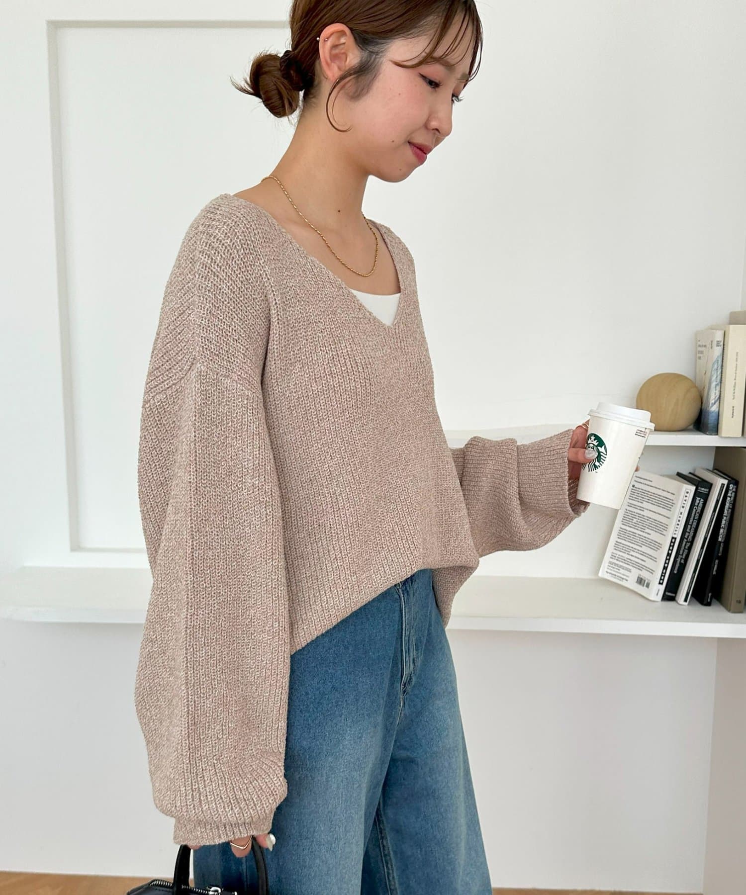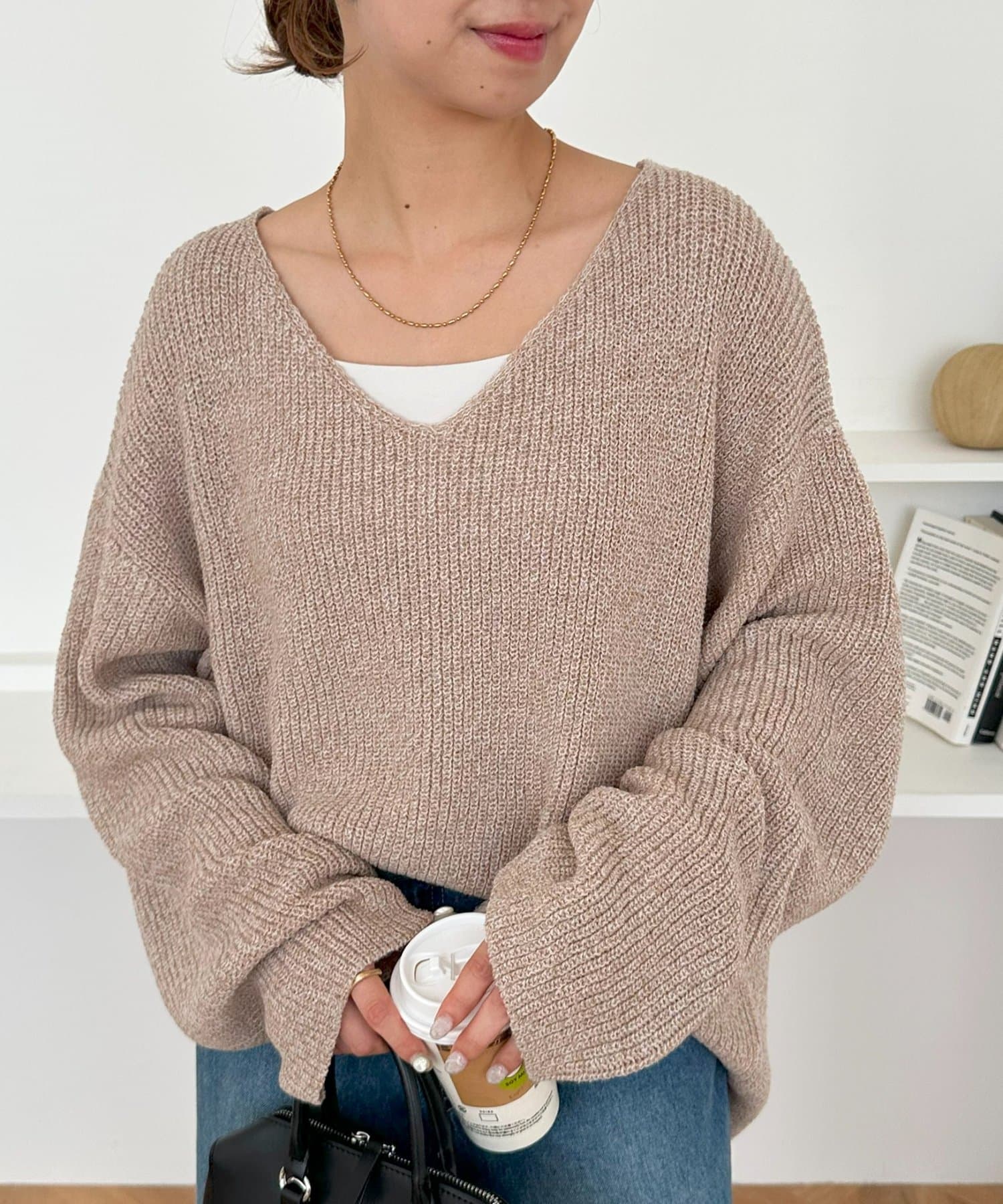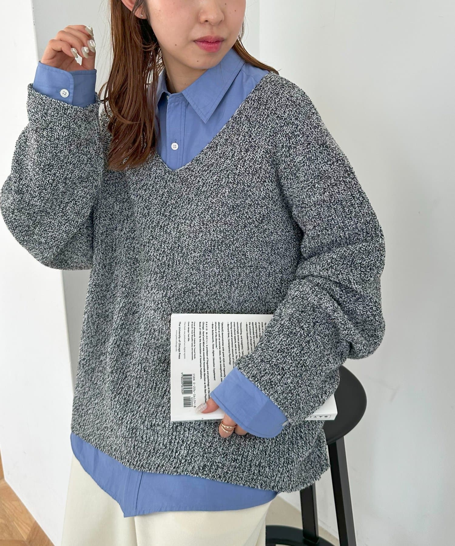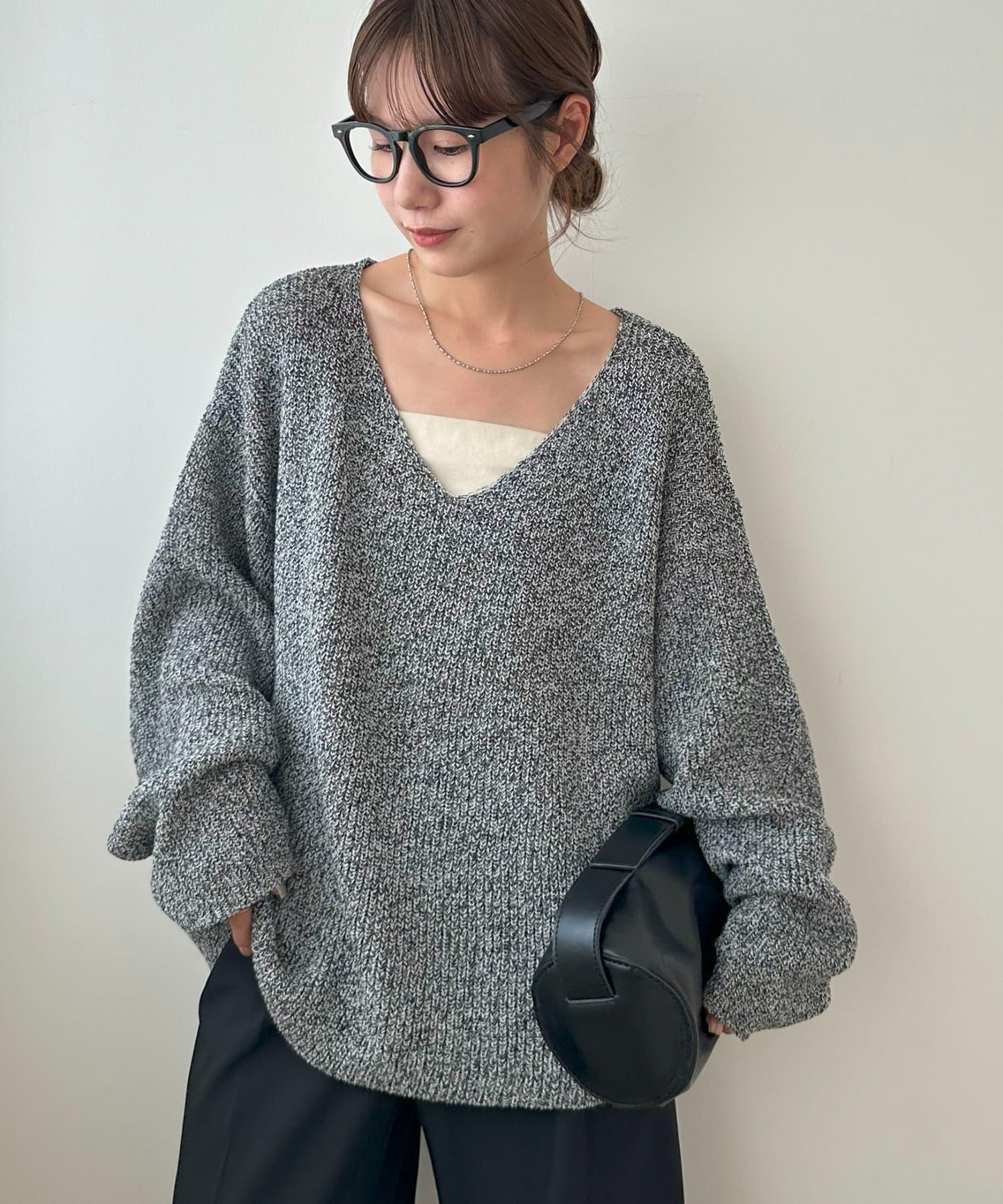 さりげなくおしゃれが決まるブークレVネックニット