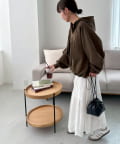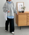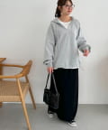 同素材のスウェットパンツと合わせたセットアップコーデで、カジュアルなスタイリングも楽しめます♪