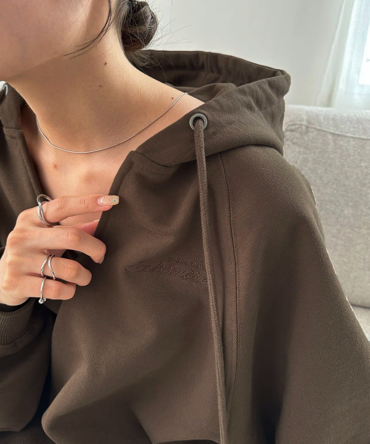 • DISCOAT(ディスコート) 【抜け感のある着こなしに♪/ユニセックス】ワンポイント刺繍スウェットドロストフーディ