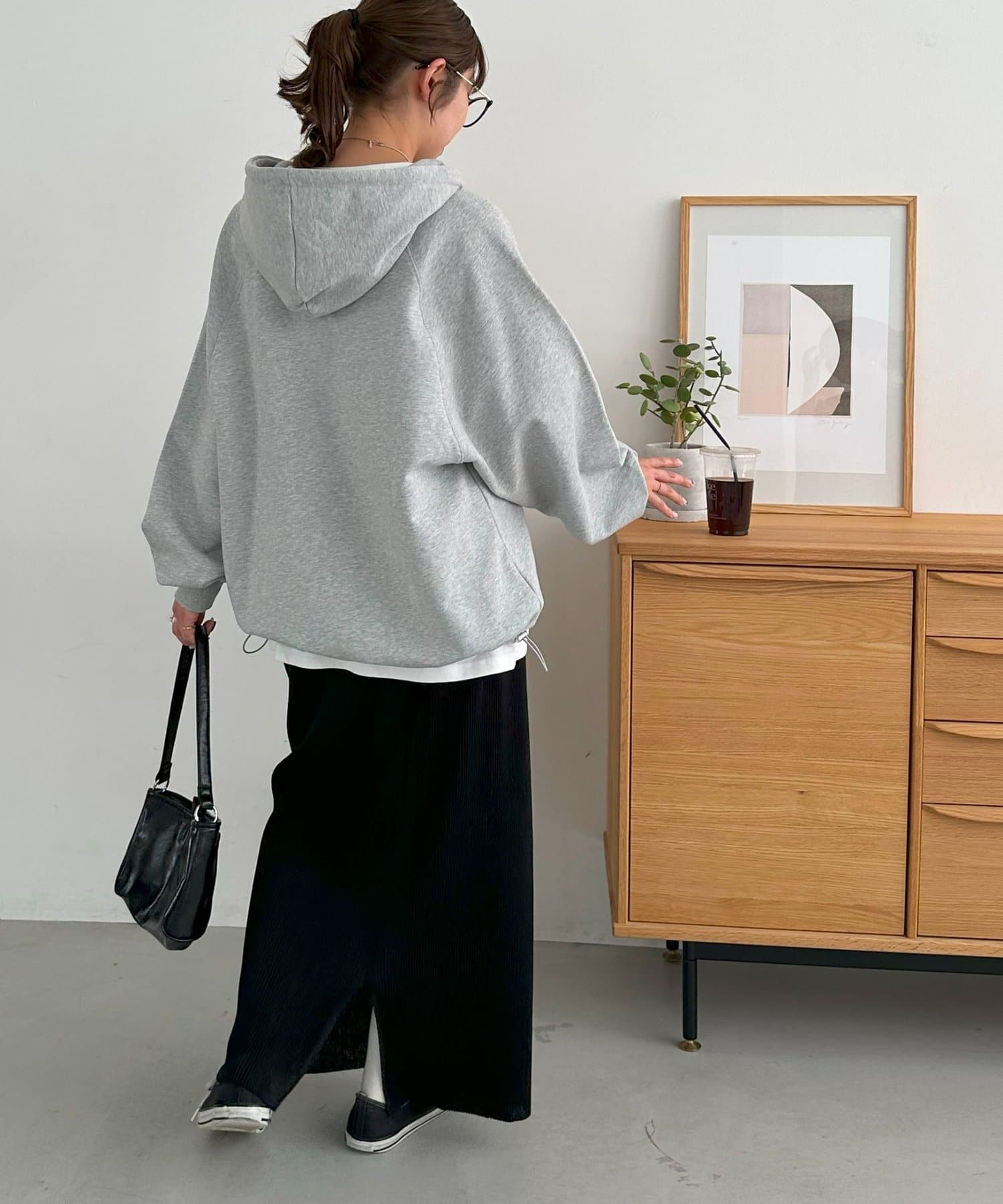 裾はドロスト仕様でシルエットの調整が可能で、裾を絞ることで丸みのあるシルエットに変化し、着こなしの幅が広がります!