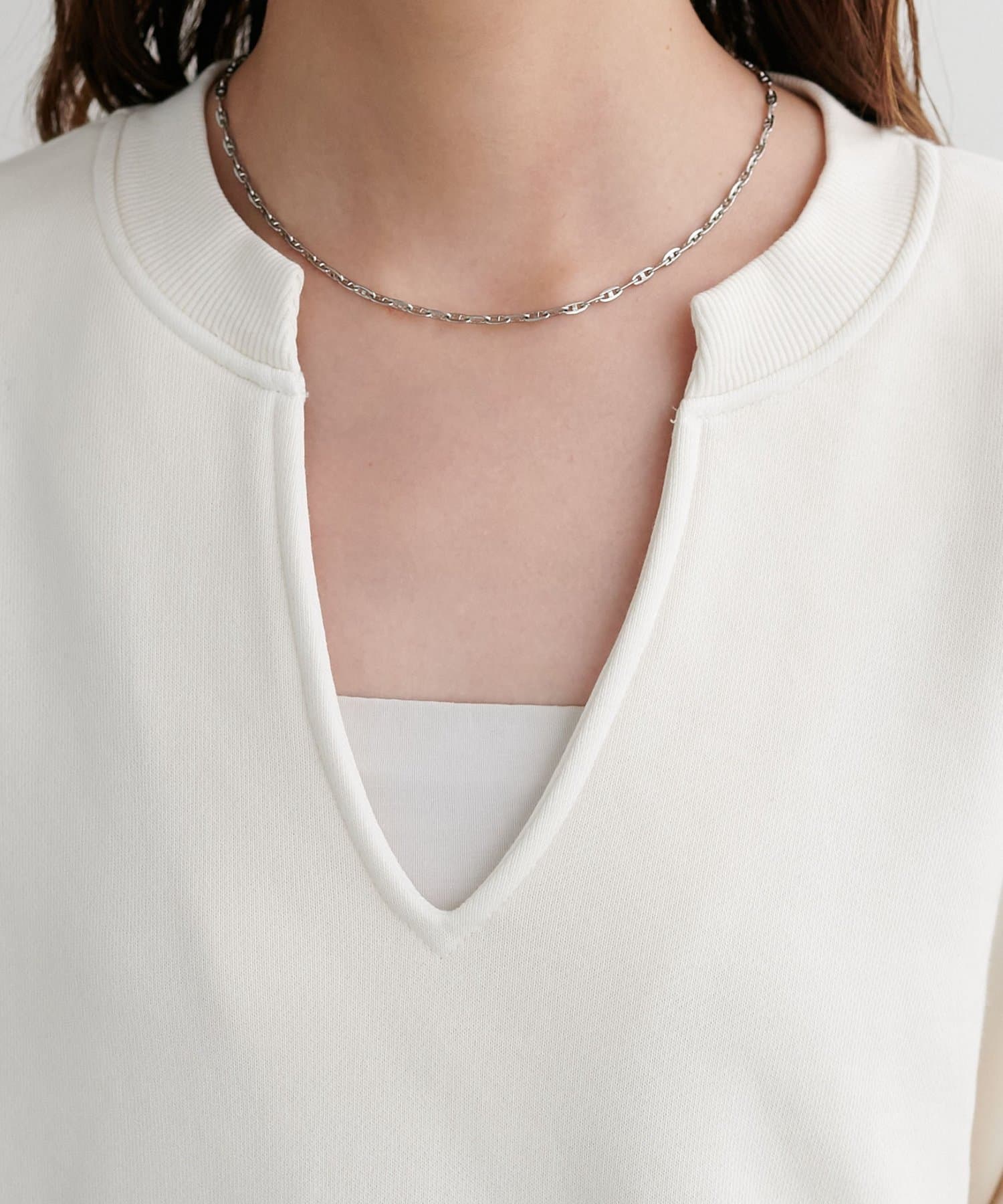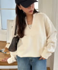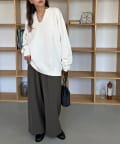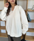 ゆったりとしたシルエットに、首元のスキッパーがアクセントになったトップス。