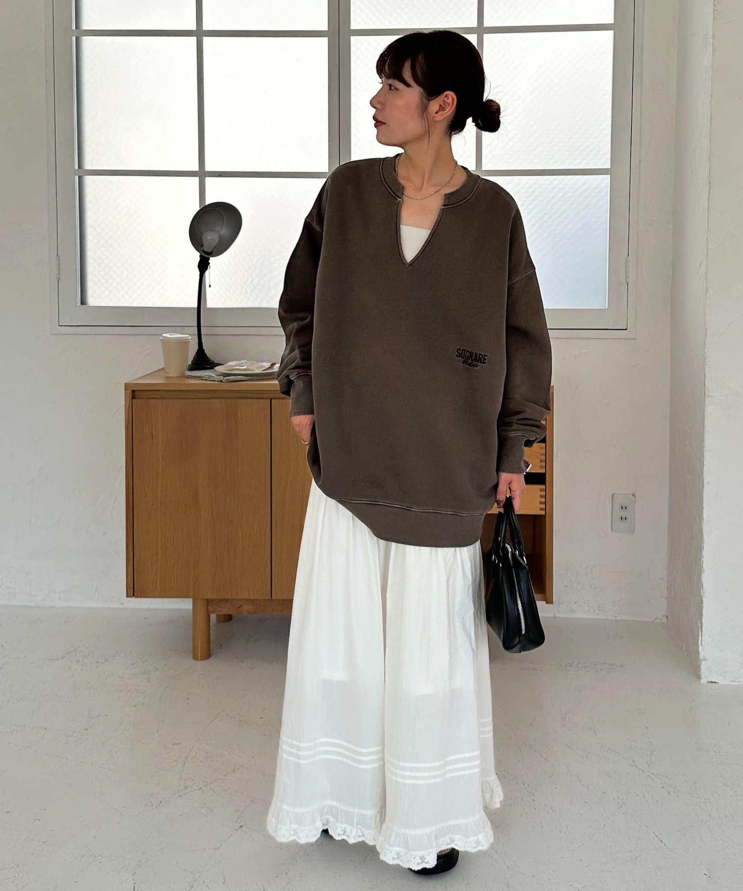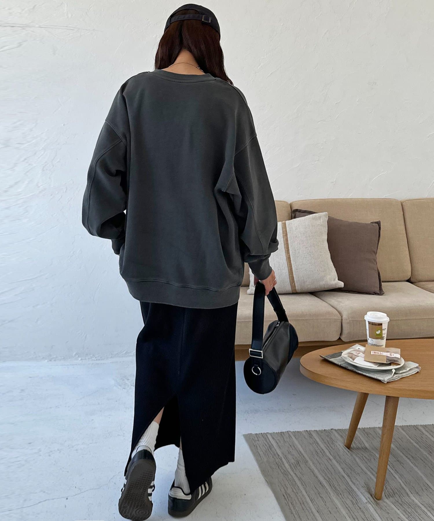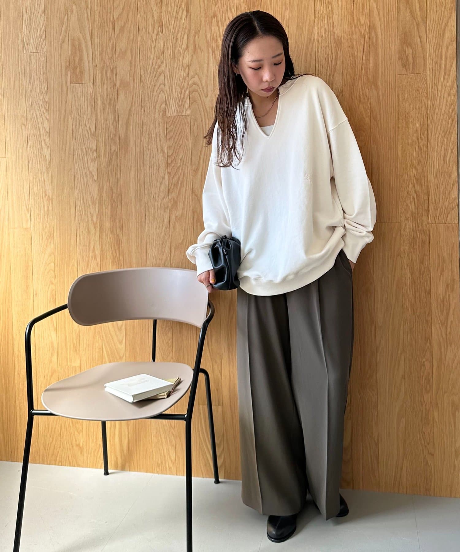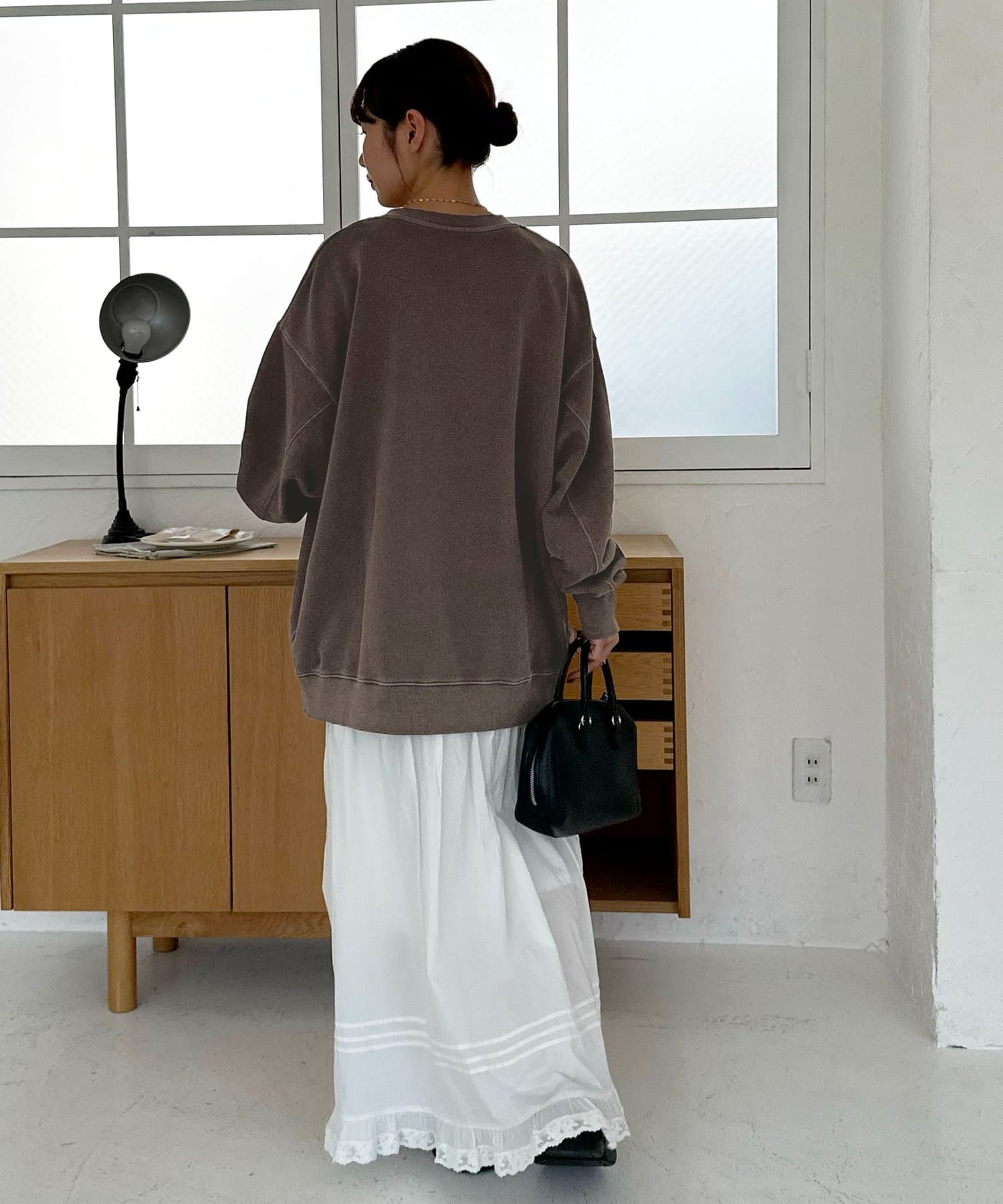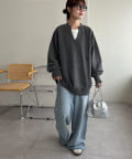 155cmレディーススタッフ: ゆったりめのシルエットで、体のラインを拾わずにリラックスして着られました。ピグメント加工の独特な色合いがこなれ感たっぷりで、いつものスウェットコーデがぐっとおしゃれに見えます!