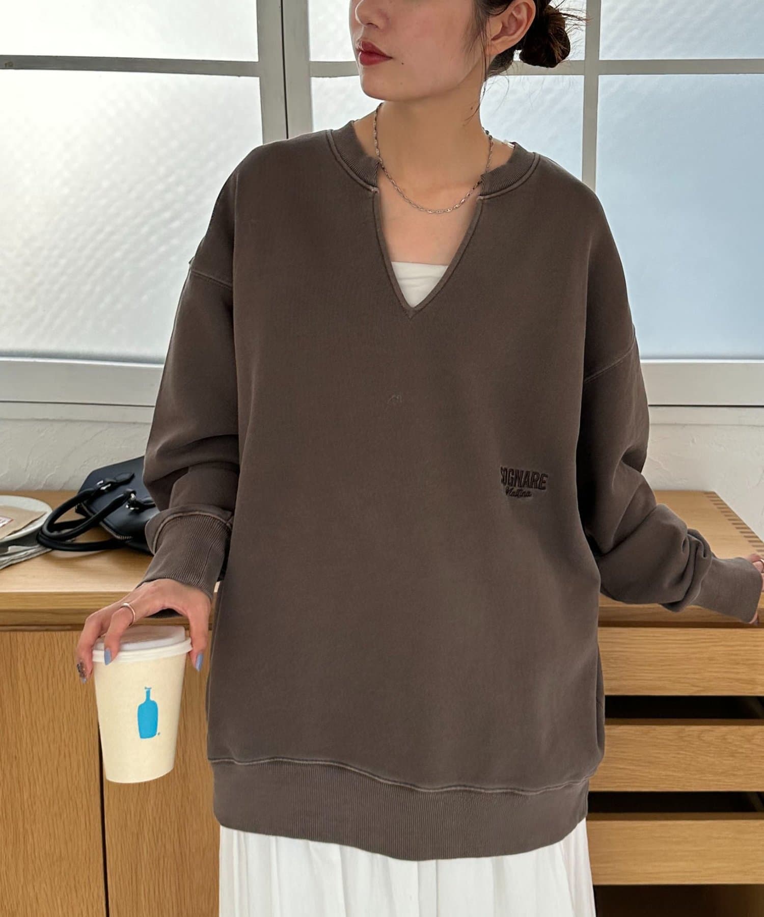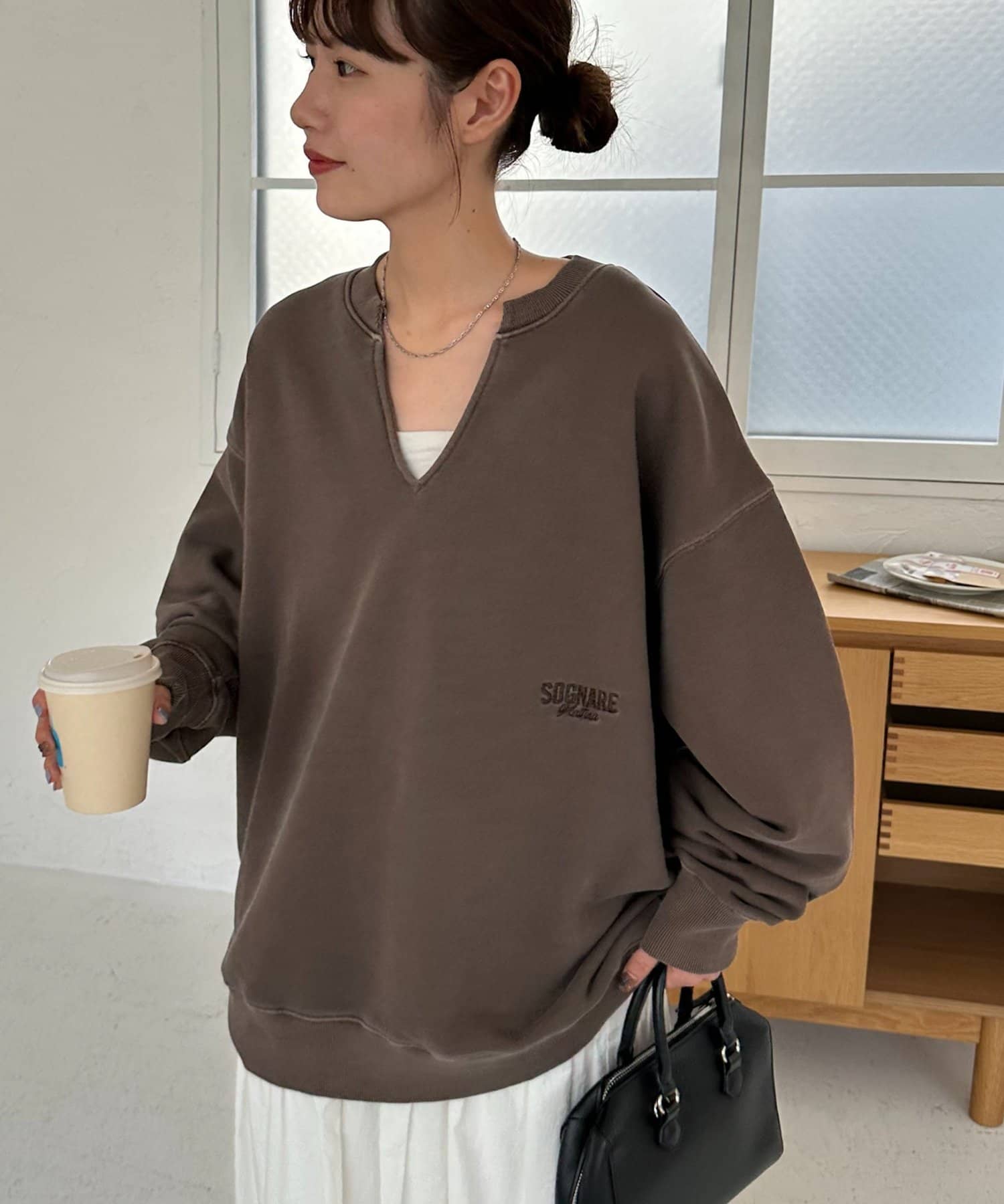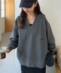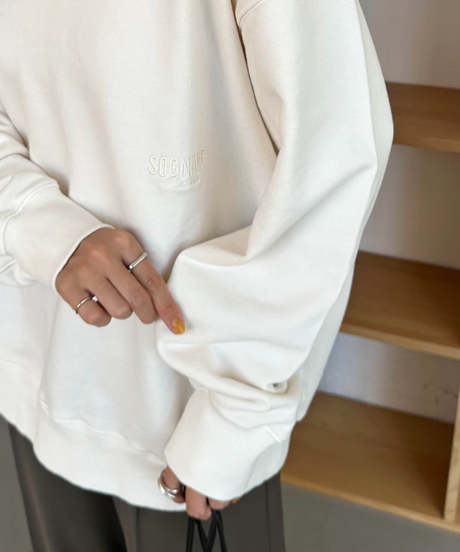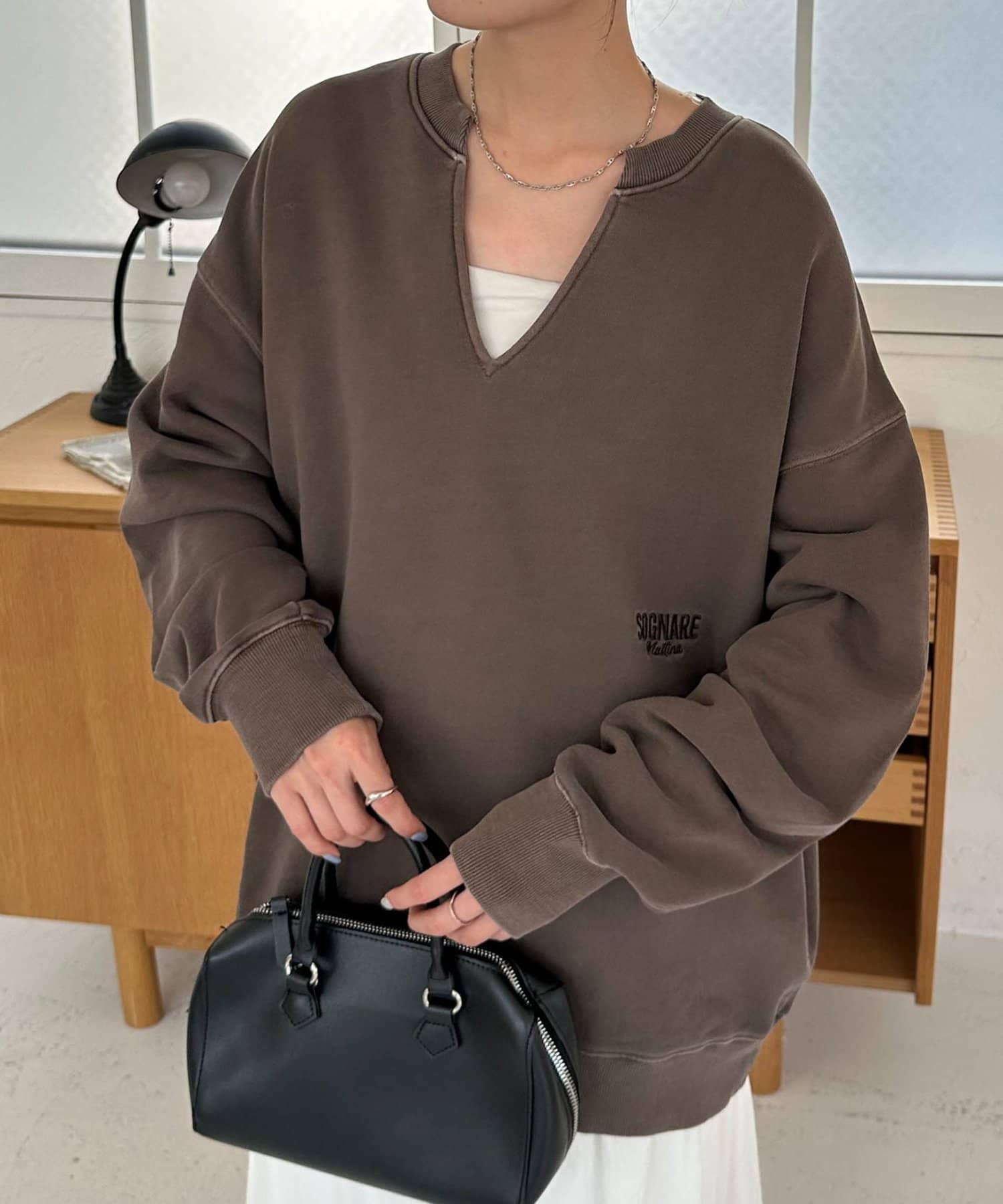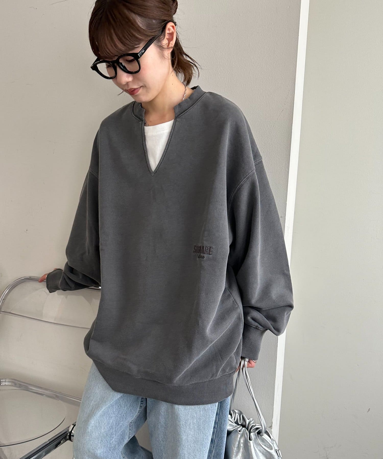 【首元スッキリ、抜け感♪/ユニセックス】ワンポイント刺繍ピグメントスキッパースウェット