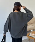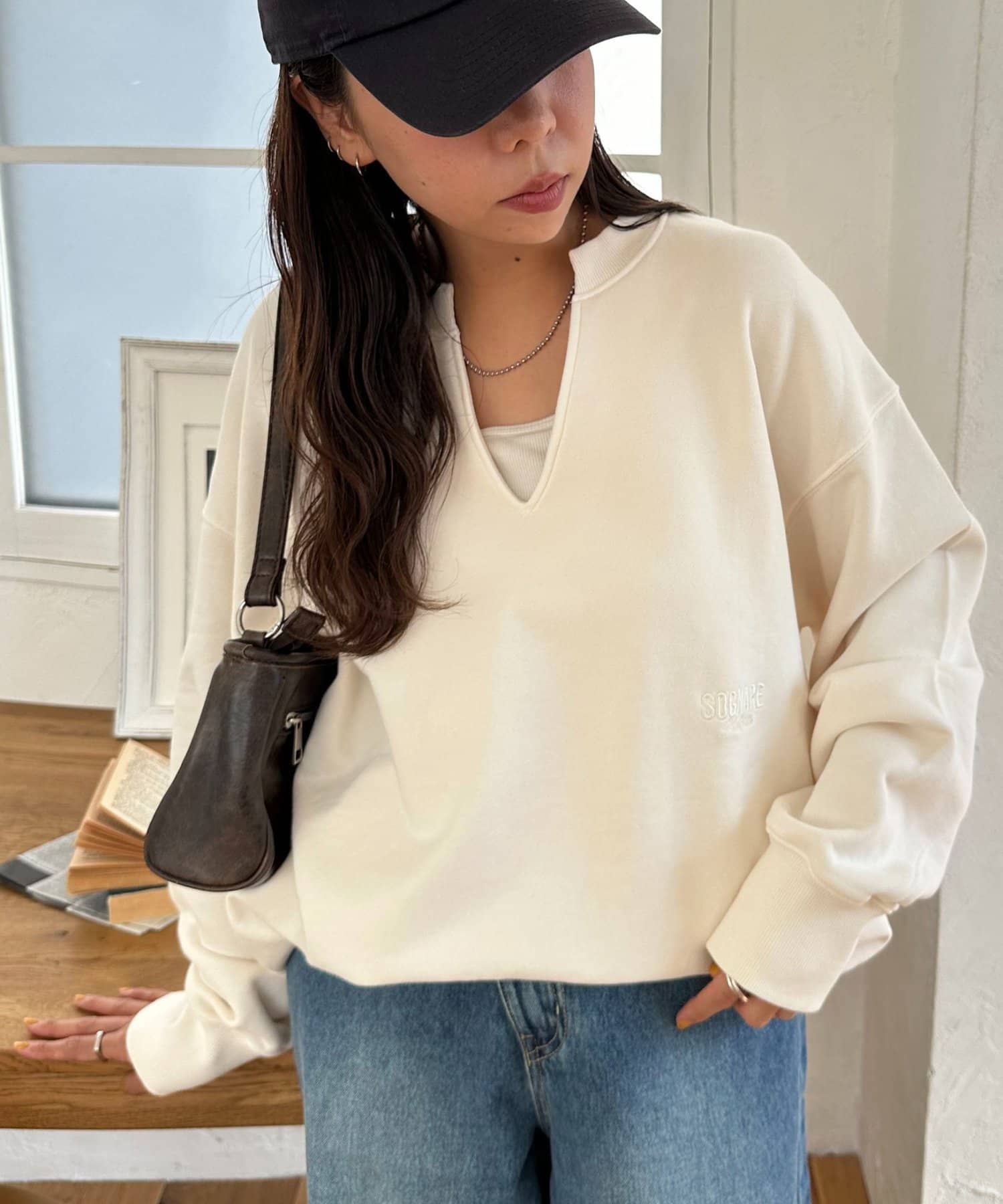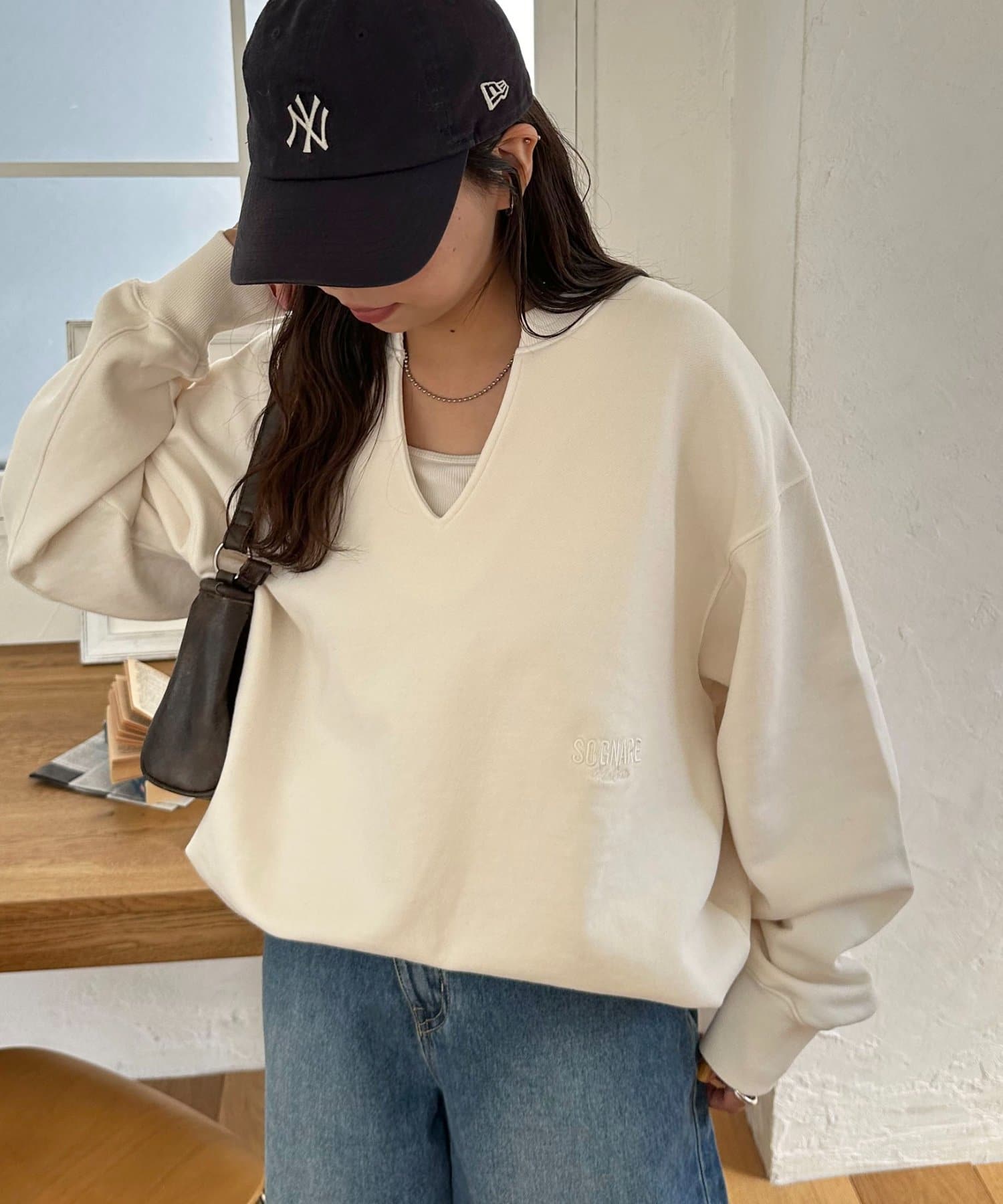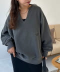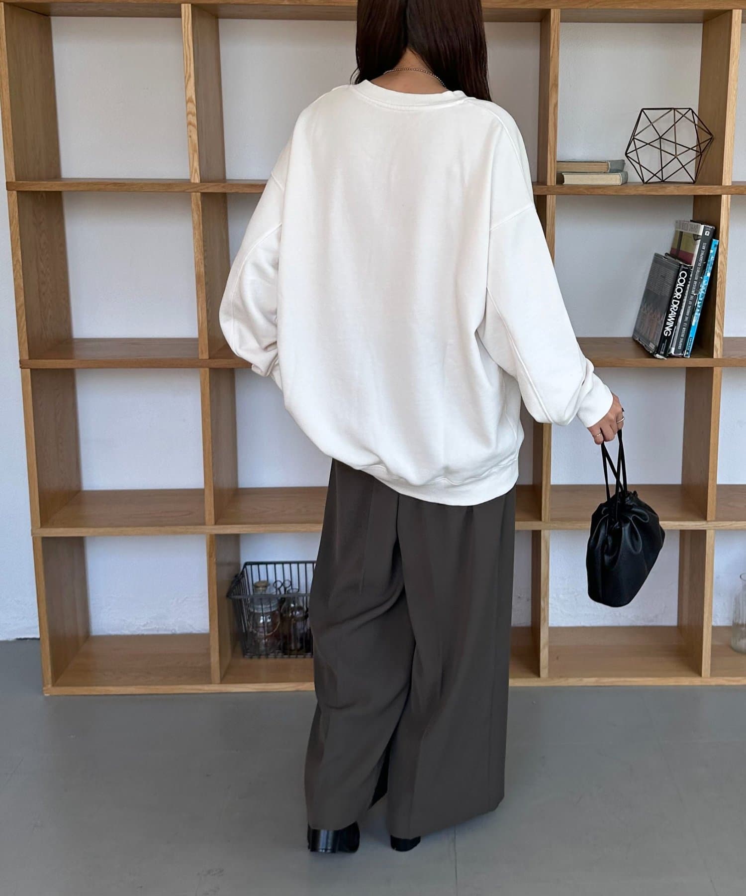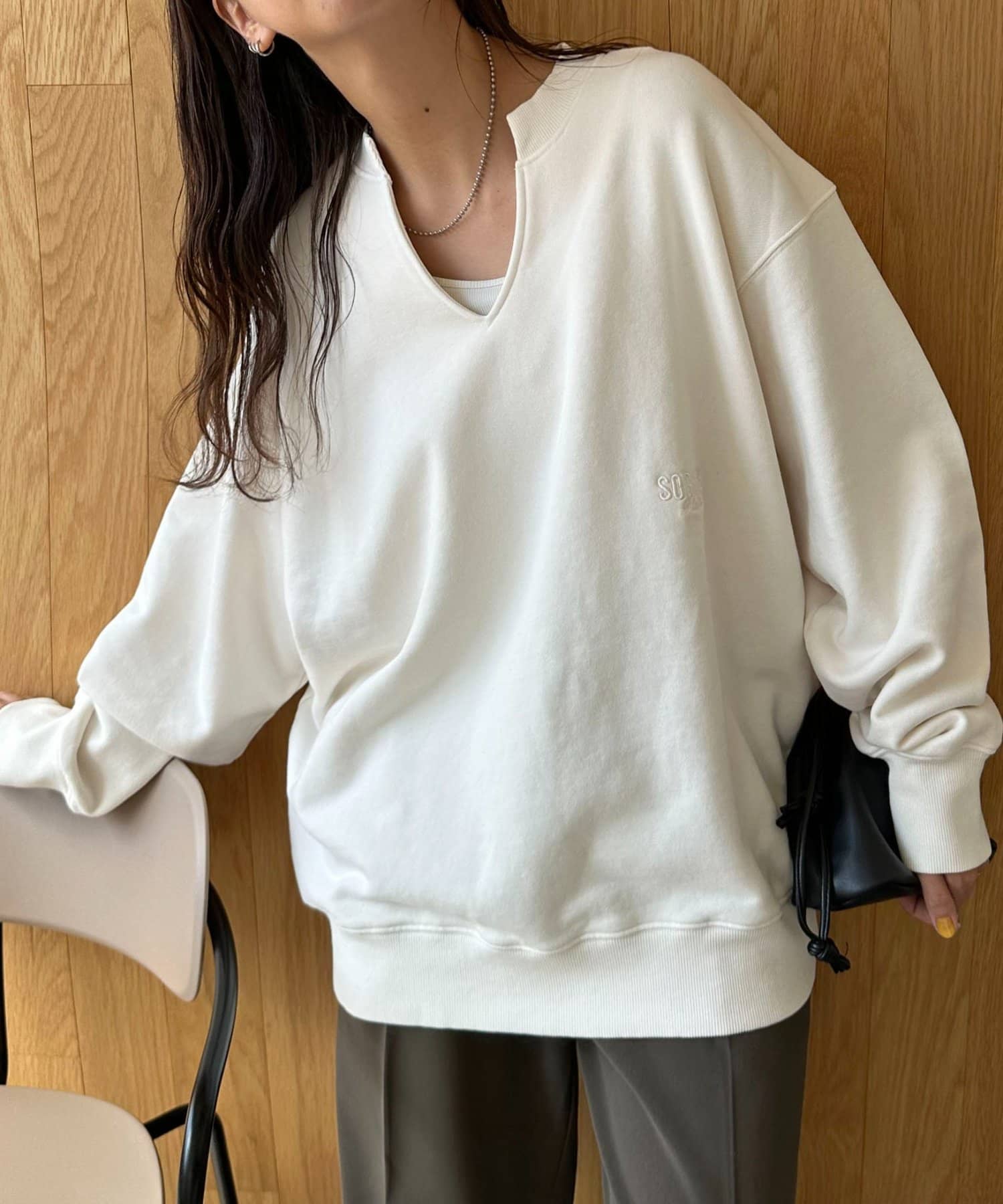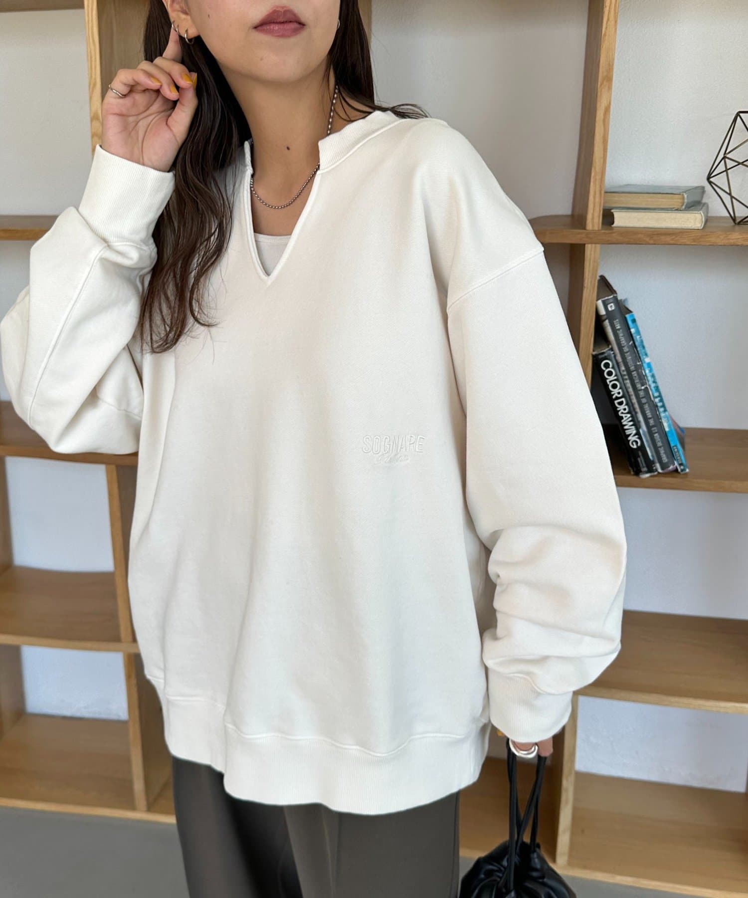 【首元スッキリ、抜け感♪/ユニセックス】ワンポイント刺繍ピグメントスキッパースウェット