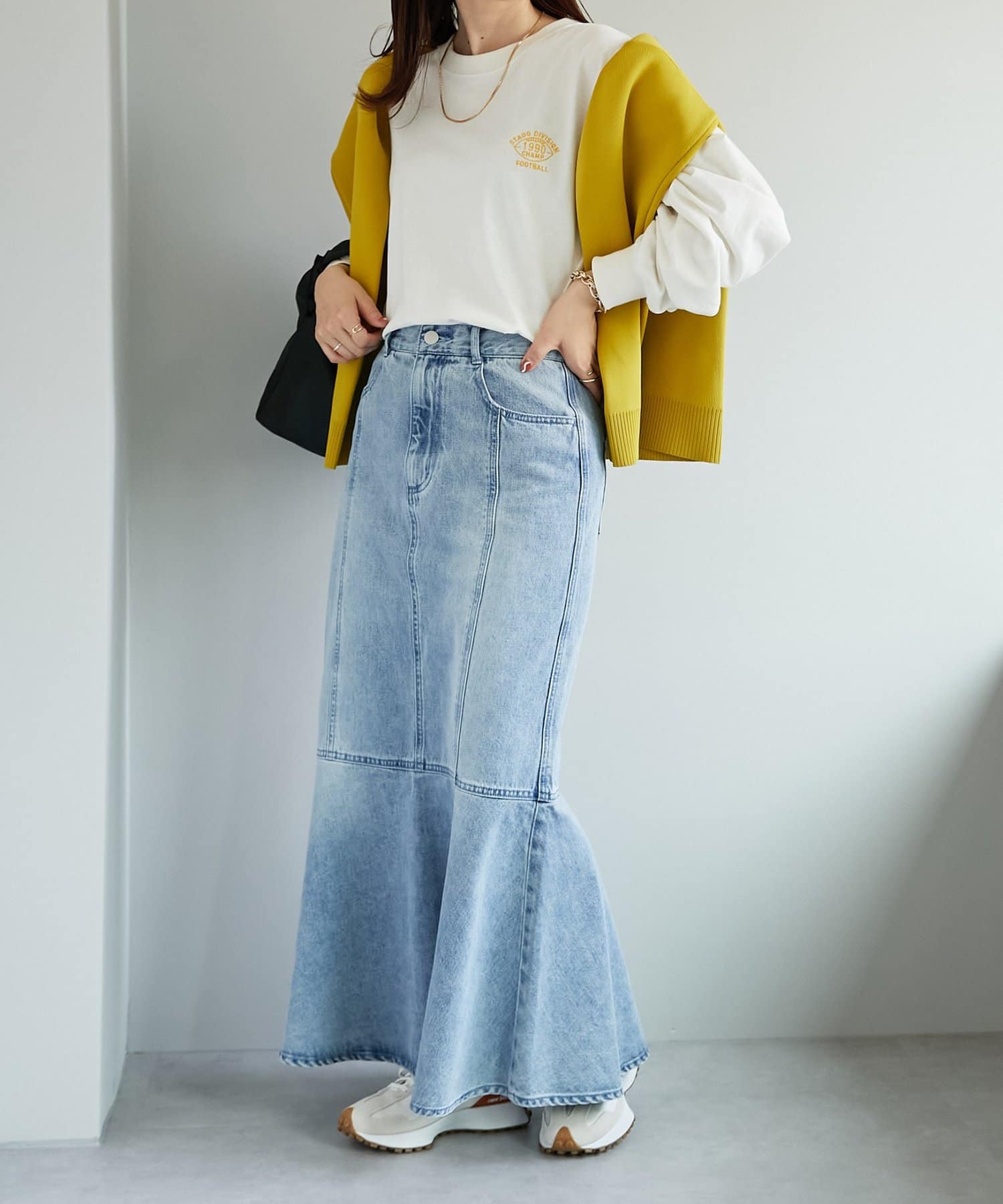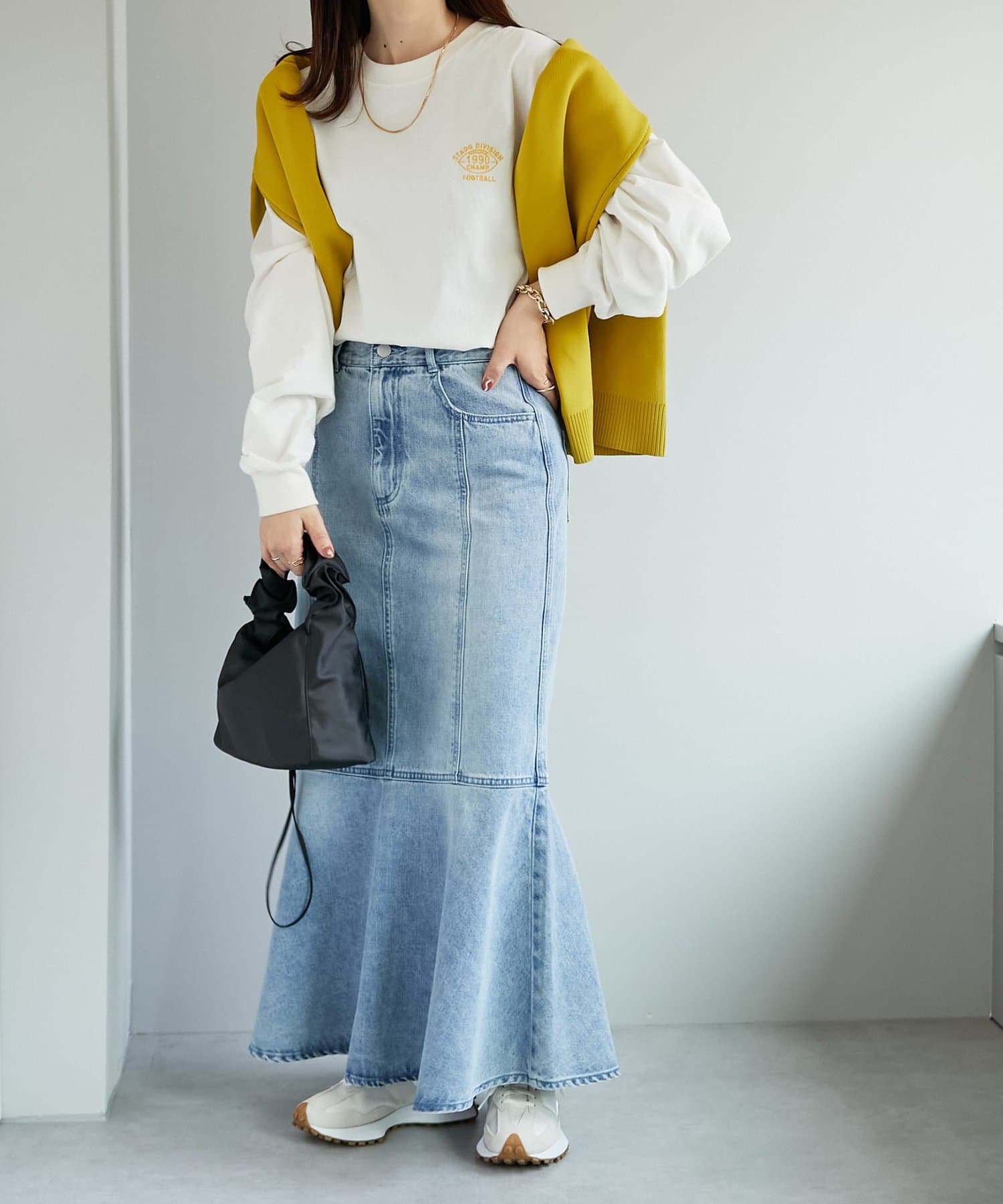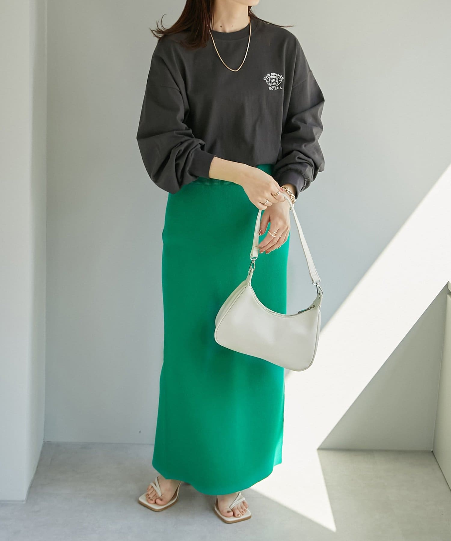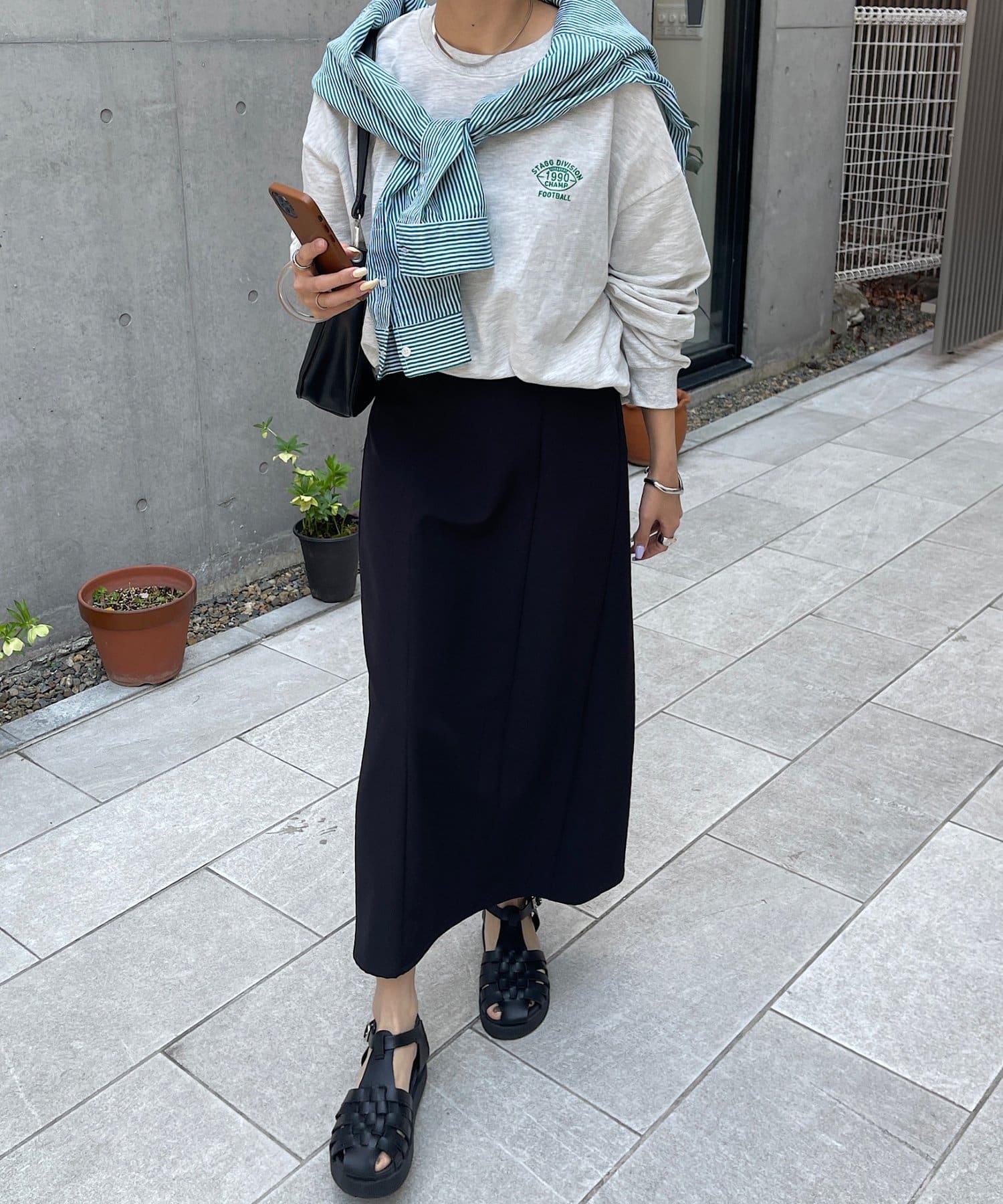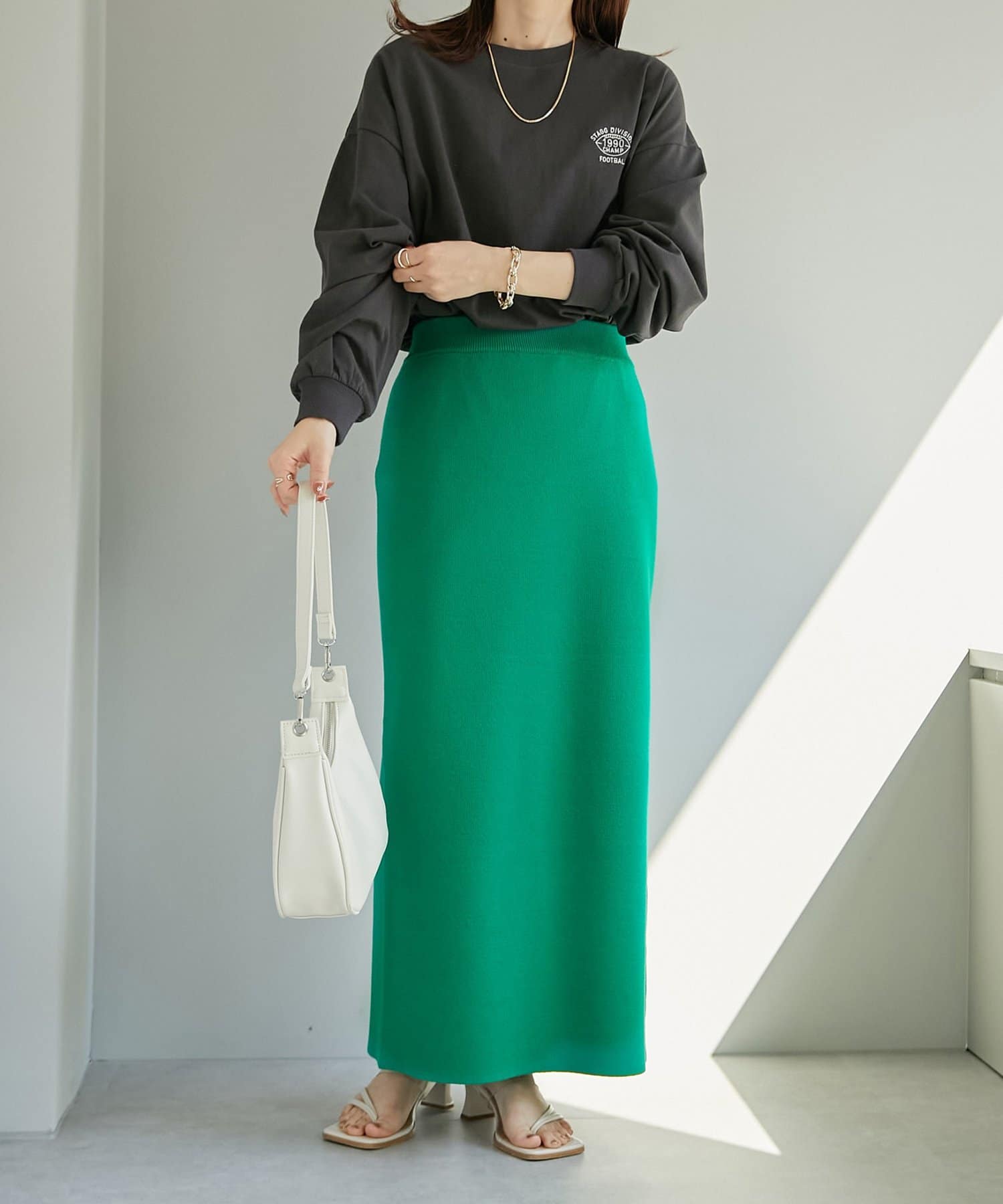 定番のタックインスタイルもパンツ、スカートを選ばず合わせやすいのが魅力です。