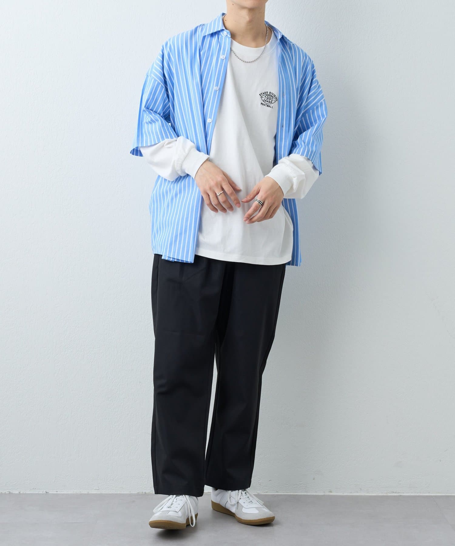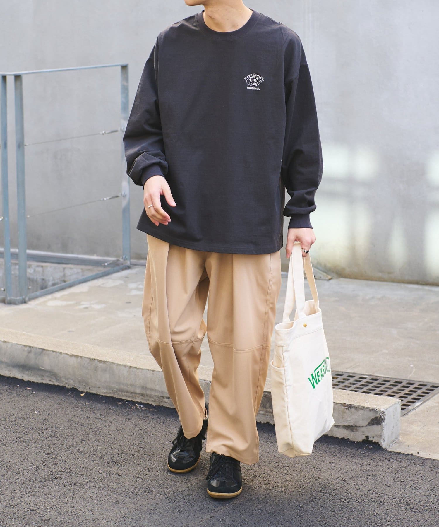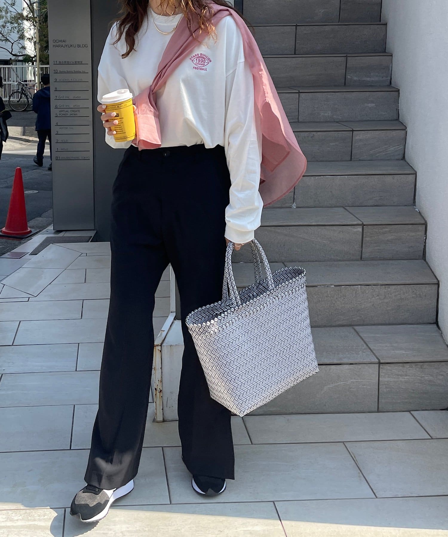 今年らしいビッグシルエットなので、ボトムスはワイドパンツなどゆったりしたパンツを合わせてストリートに仕上げてもおすすめ。