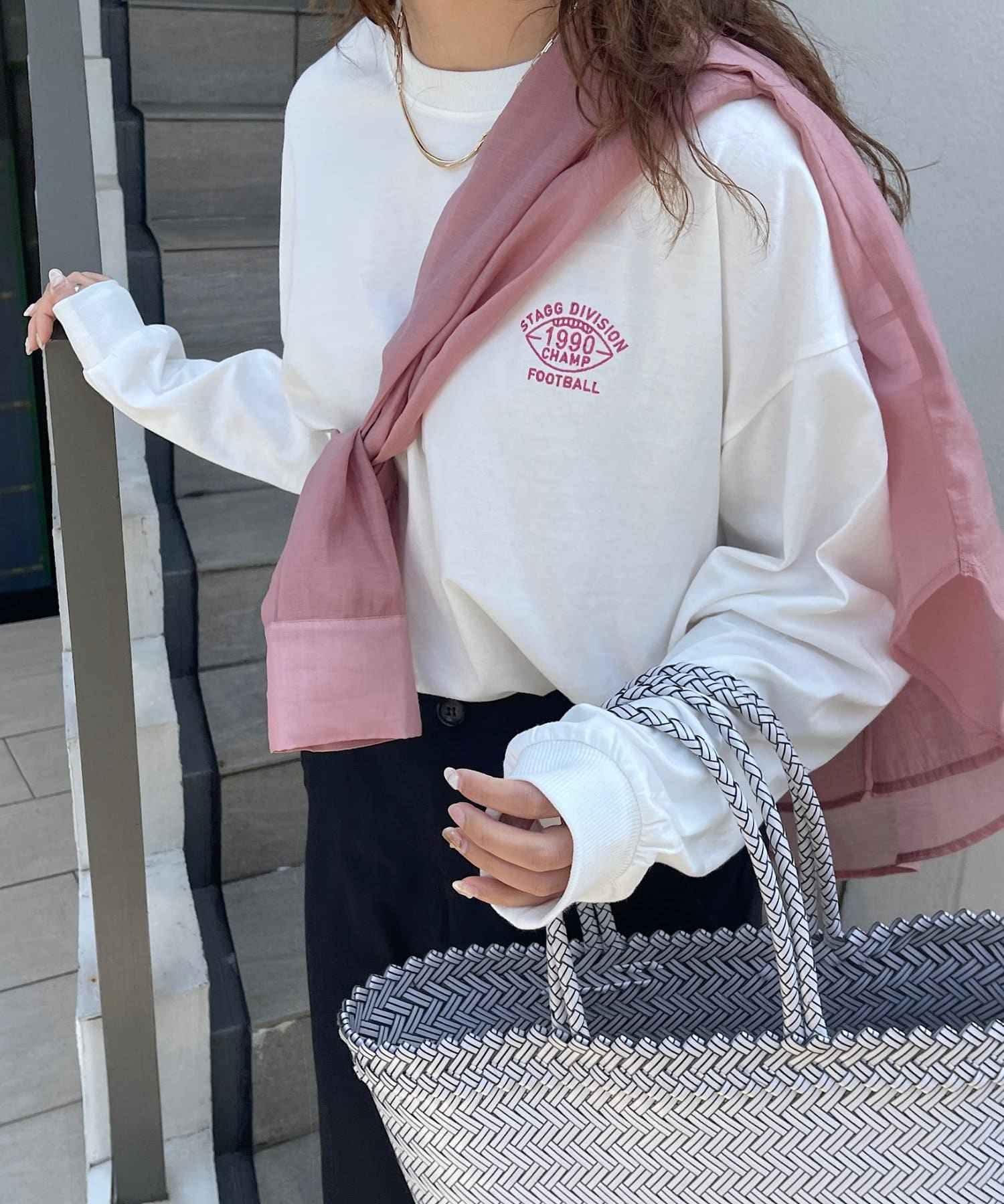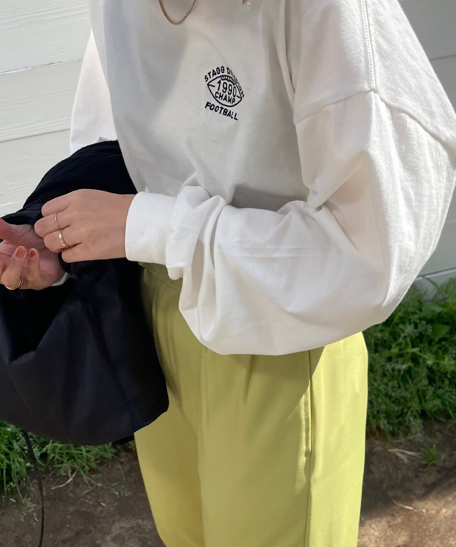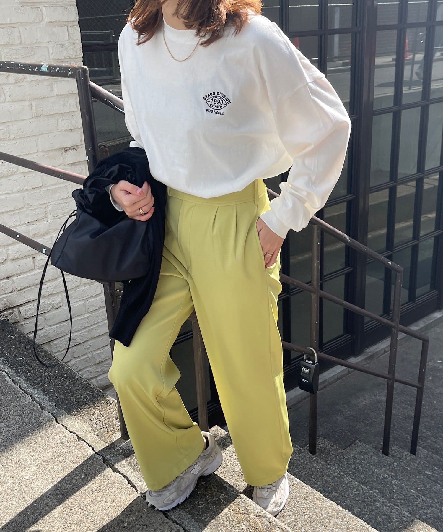 今年らしいビッグシルエットなので、ボトムスはワイドパンツなどゆったりしたパンツを合わせてストリートに仕上げてもおすすめ。