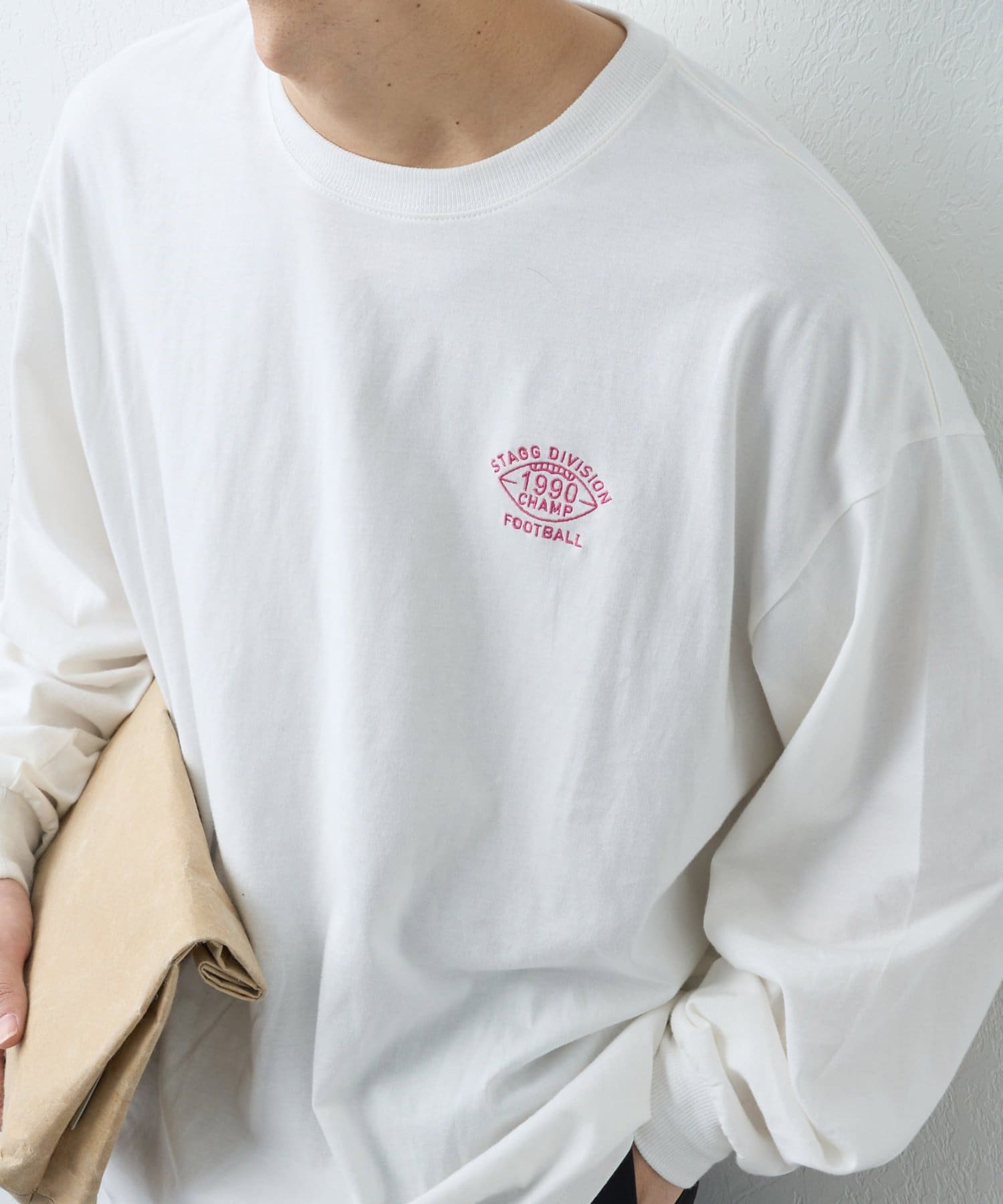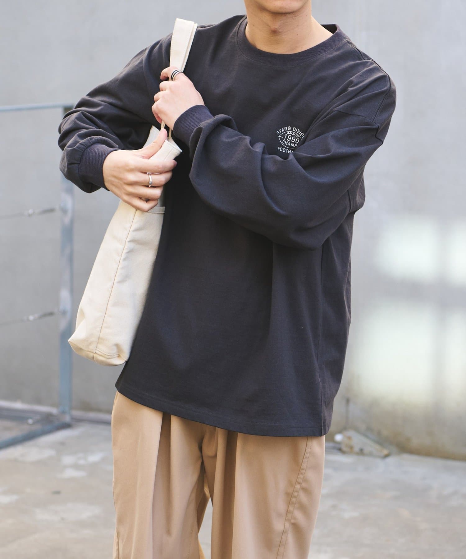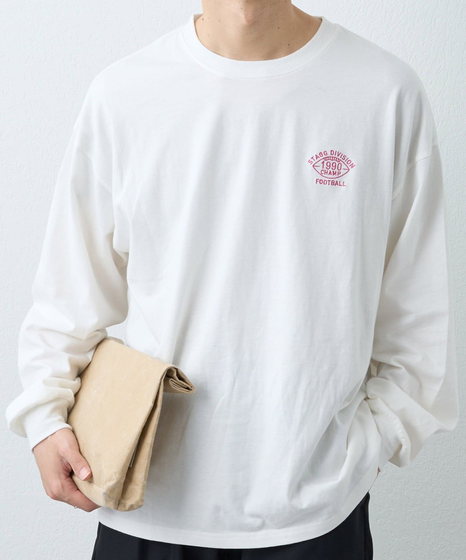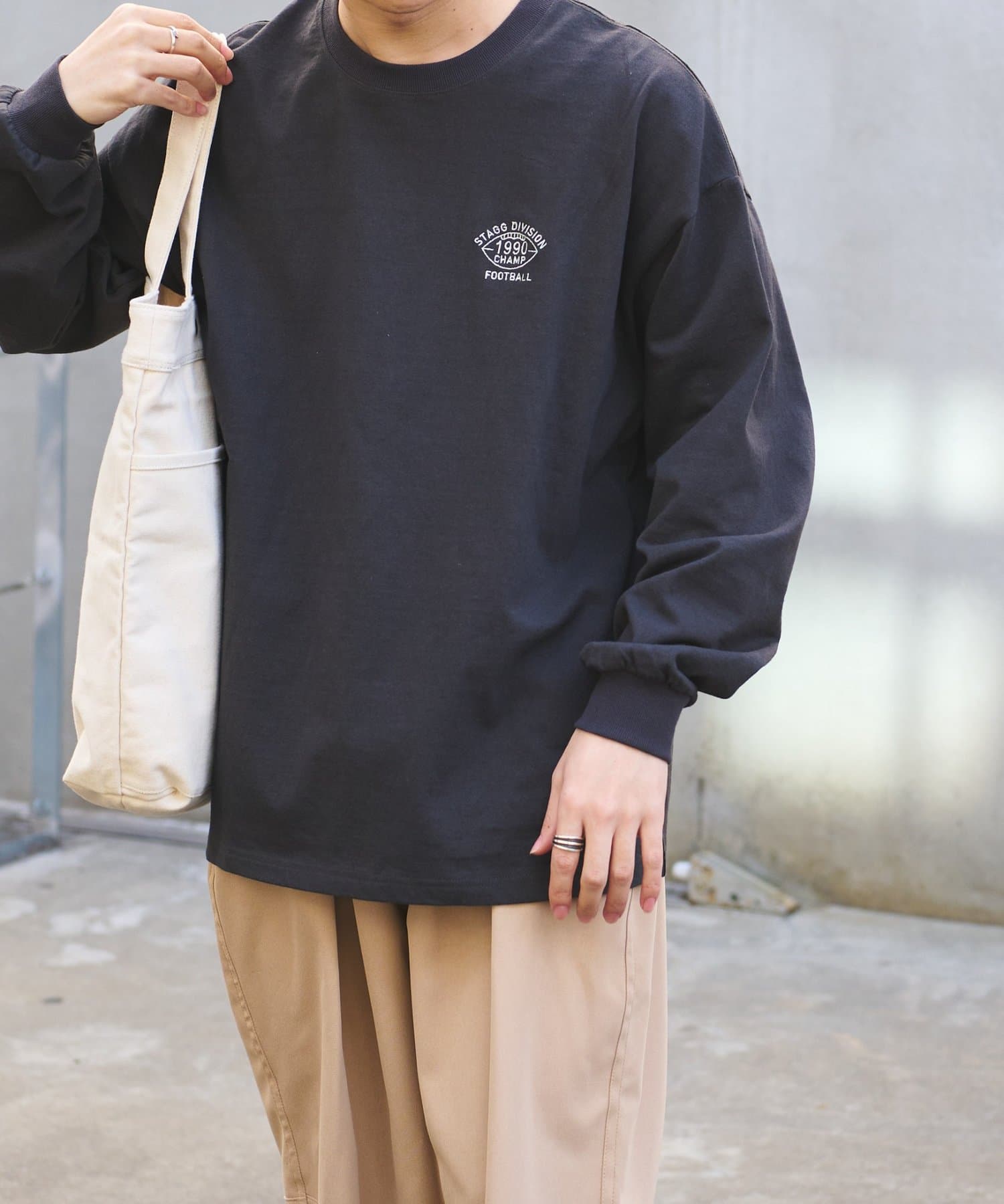 オーソドックスなロングスリーブTシャツに、胸元にワンポイントのロゴ刺繍を施した人気のロングスリーブTシャツ。
