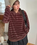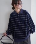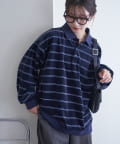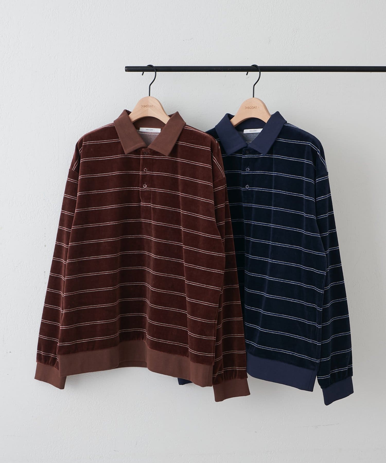 【Discoat】【ユニセックス】ベロアボーダーポロ