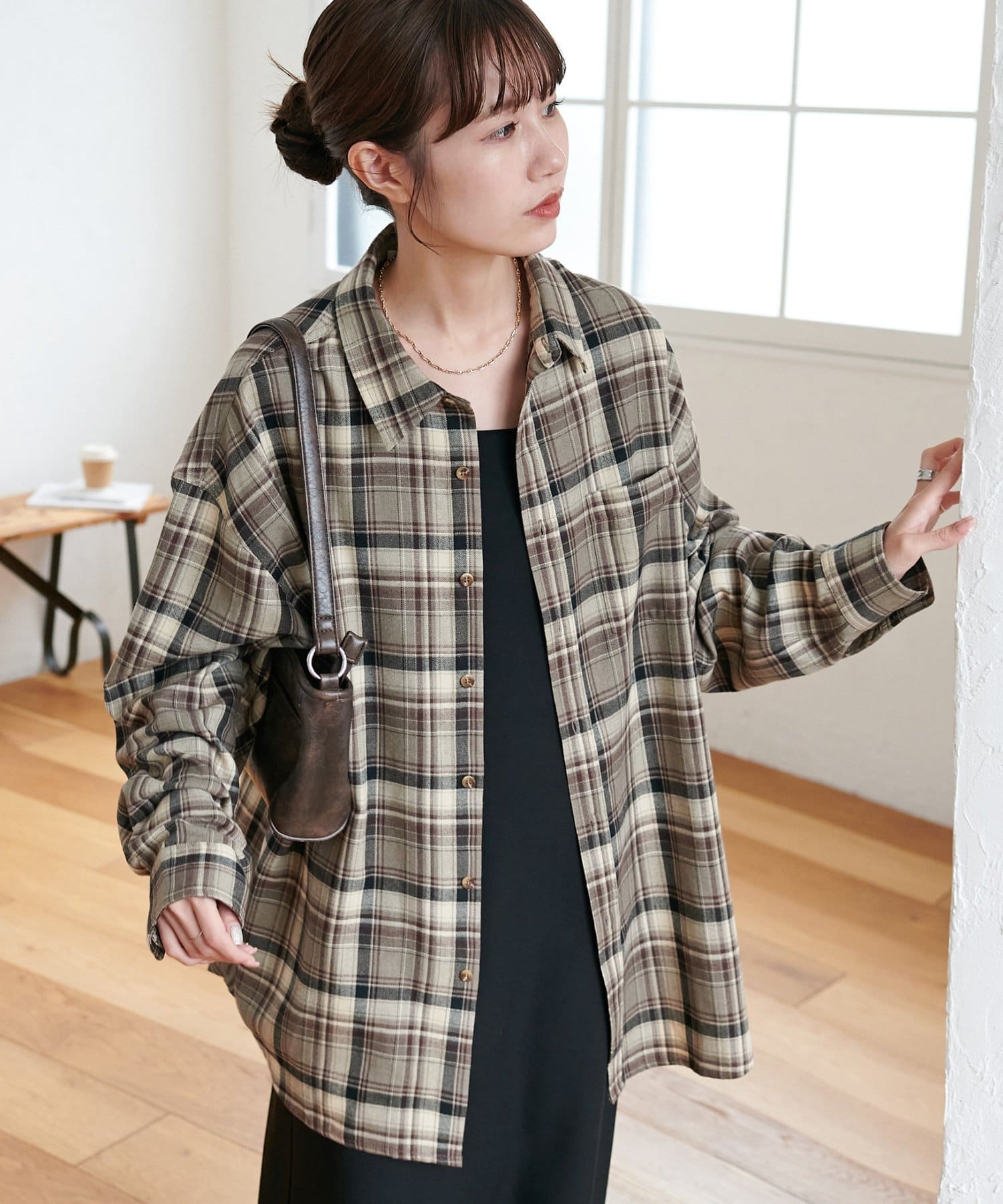 トレンド感のあるチェック柄を取り入れた、ゆったりシルエットのオーバーシャツ。