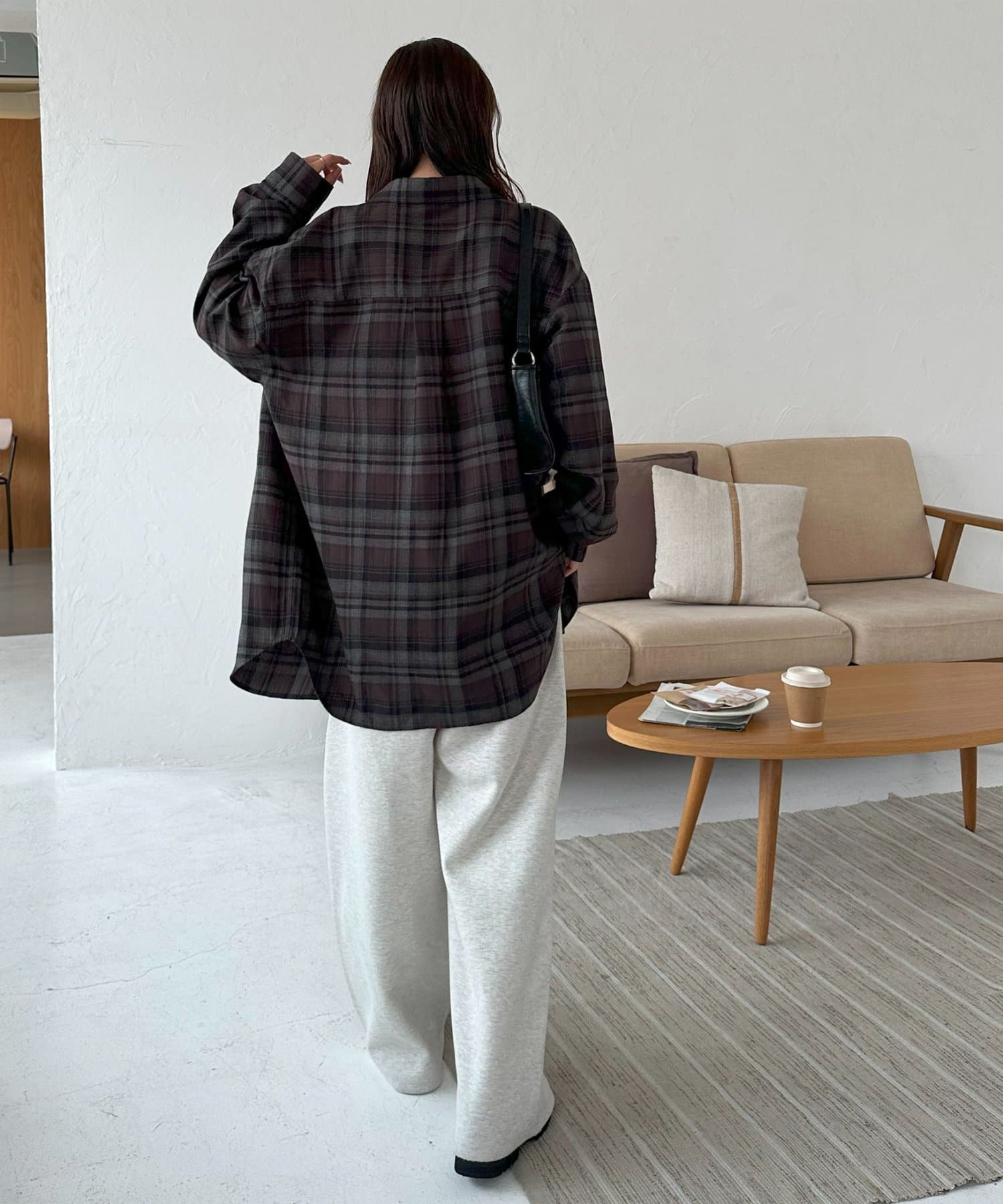 トレンド感のあるチェック柄を取り入れた、ゆったりシルエットのオーバーシャツ。