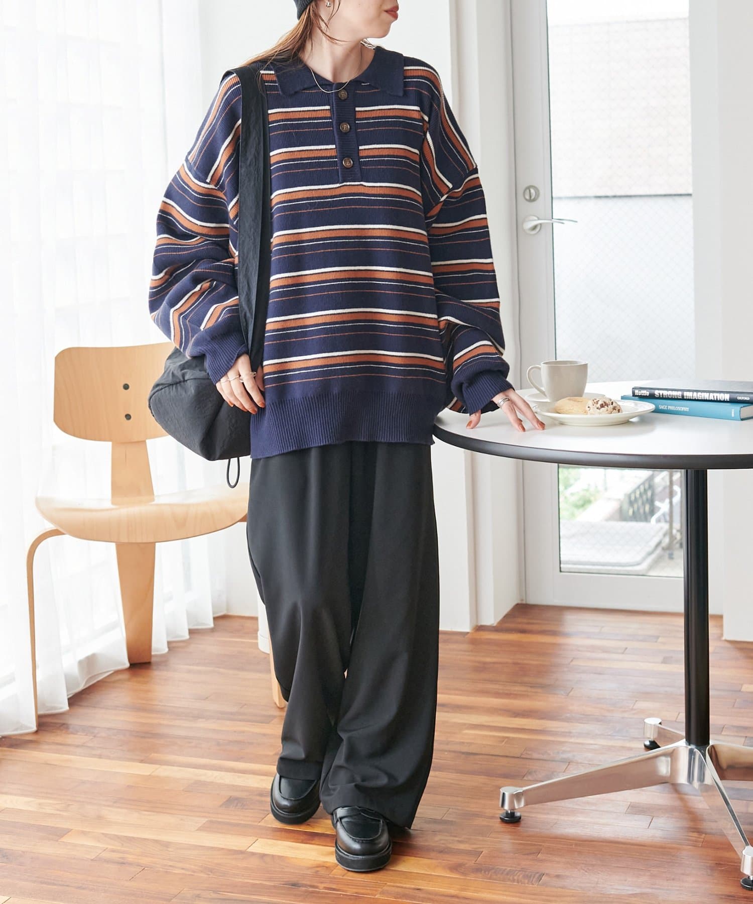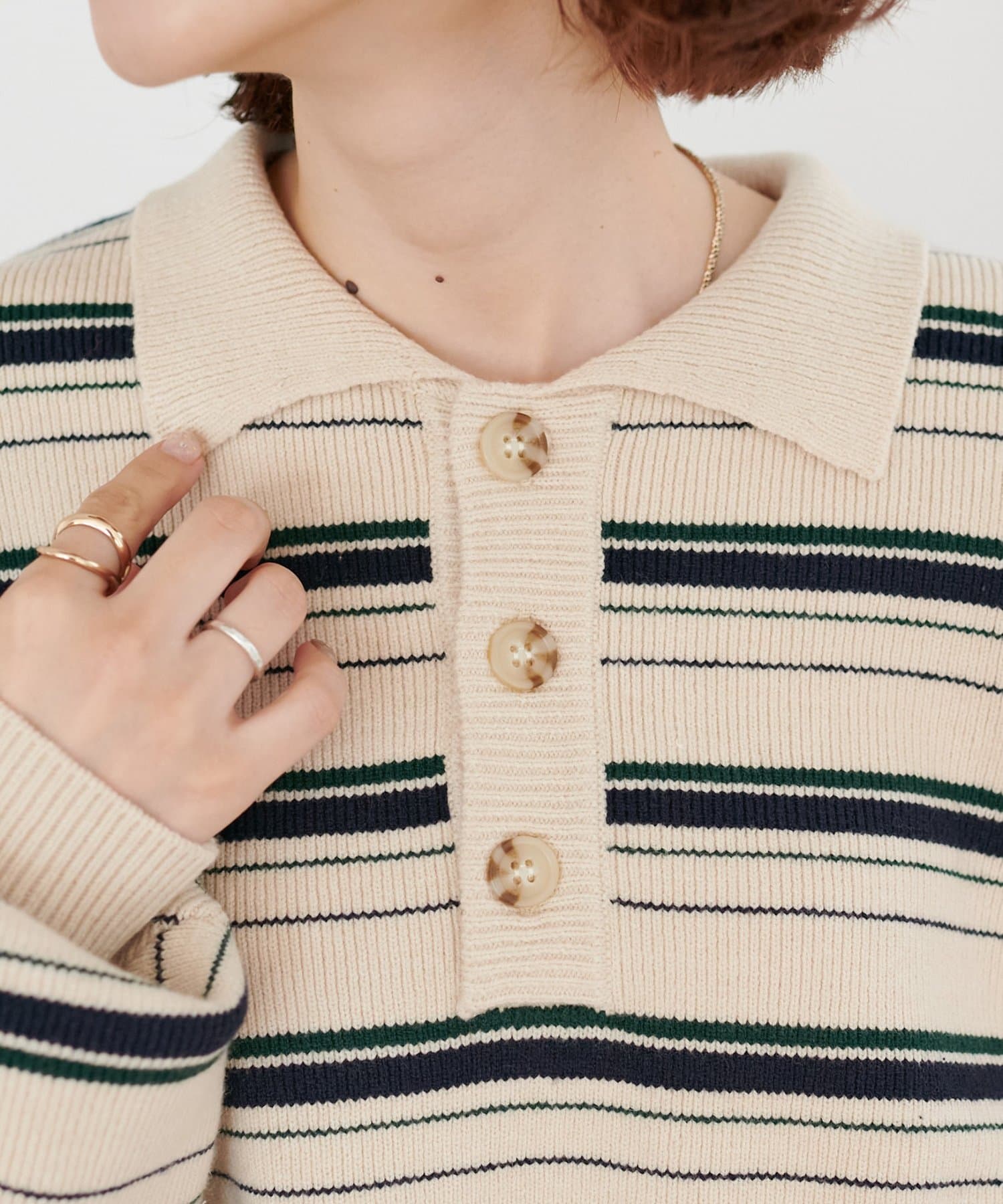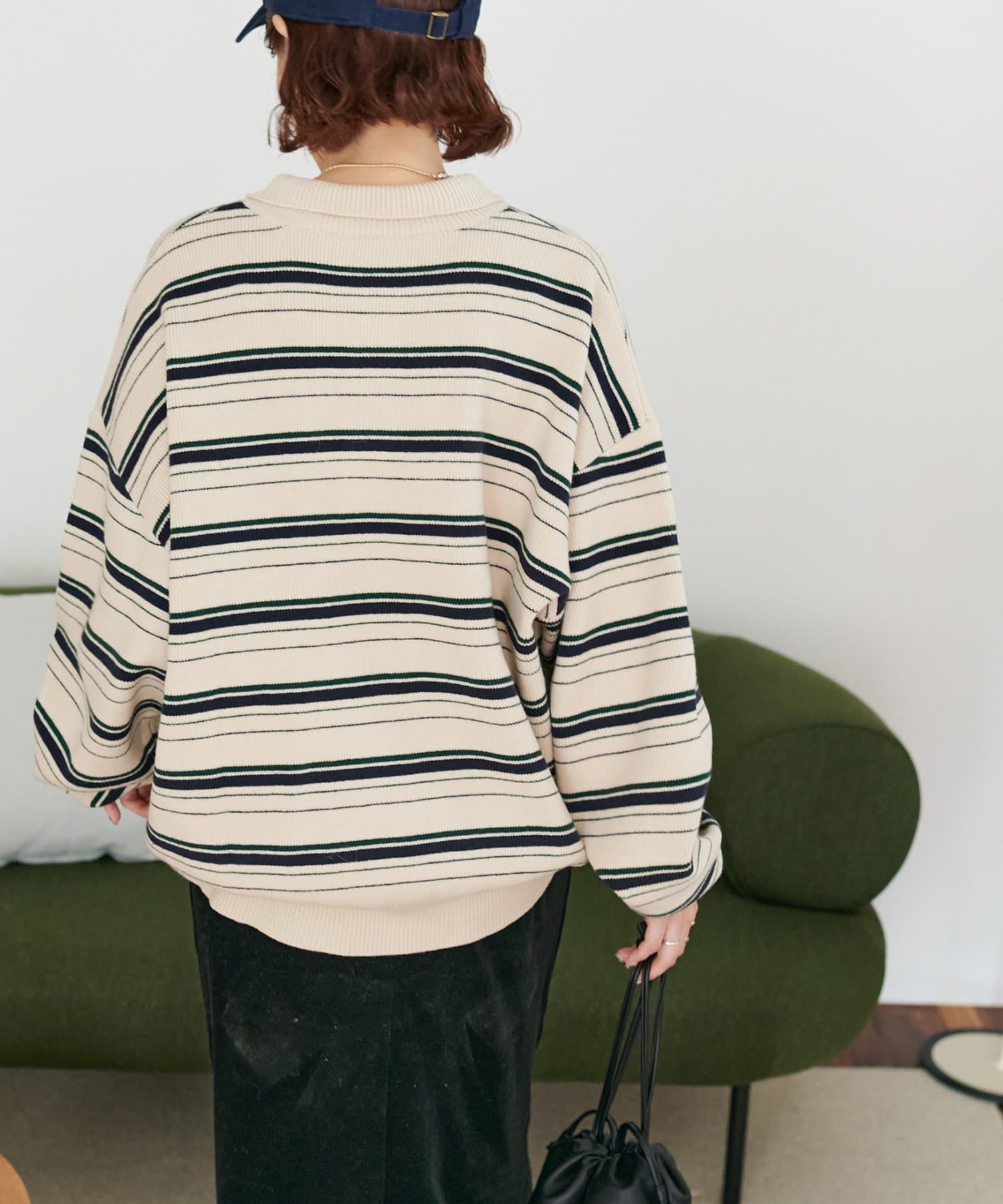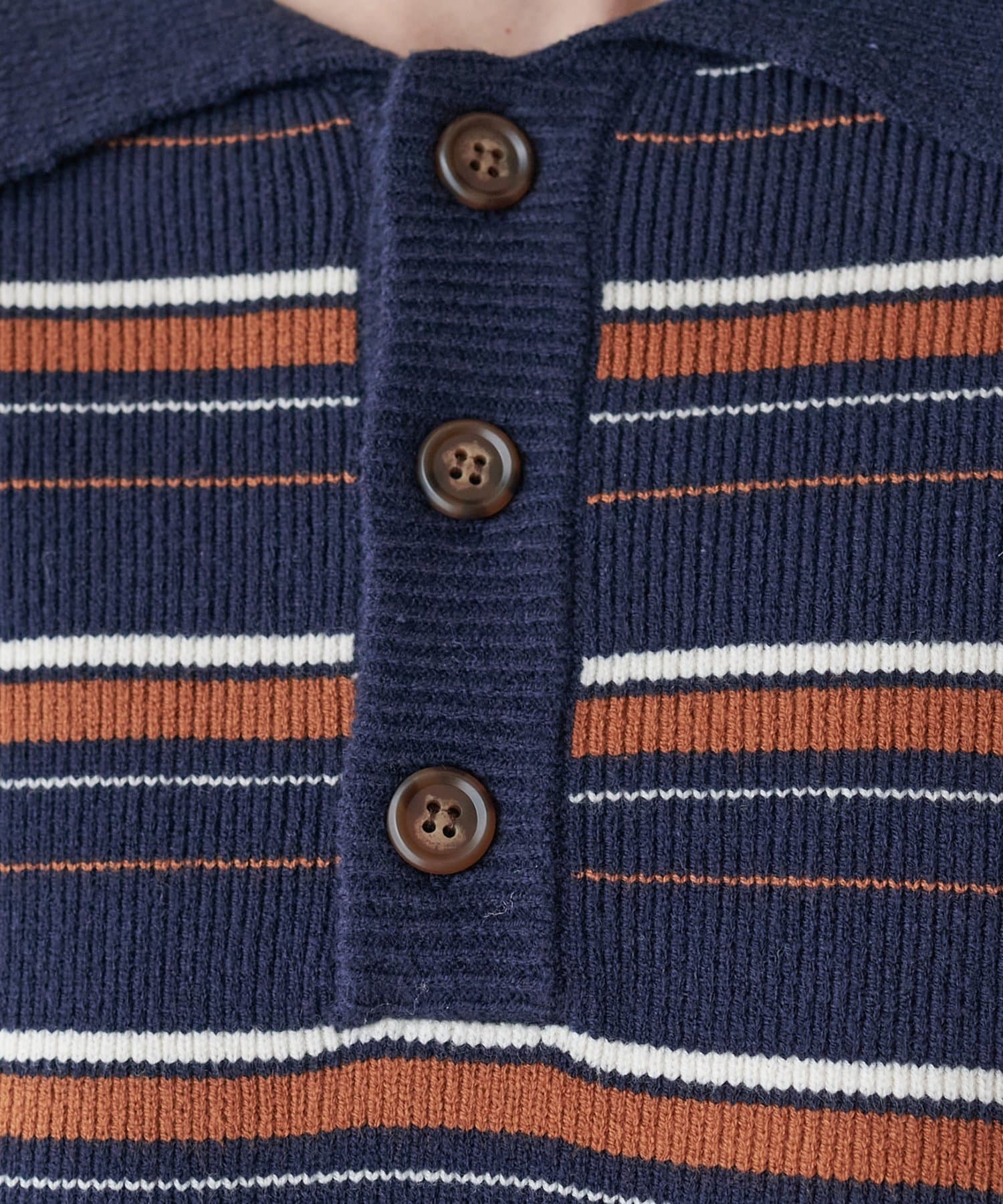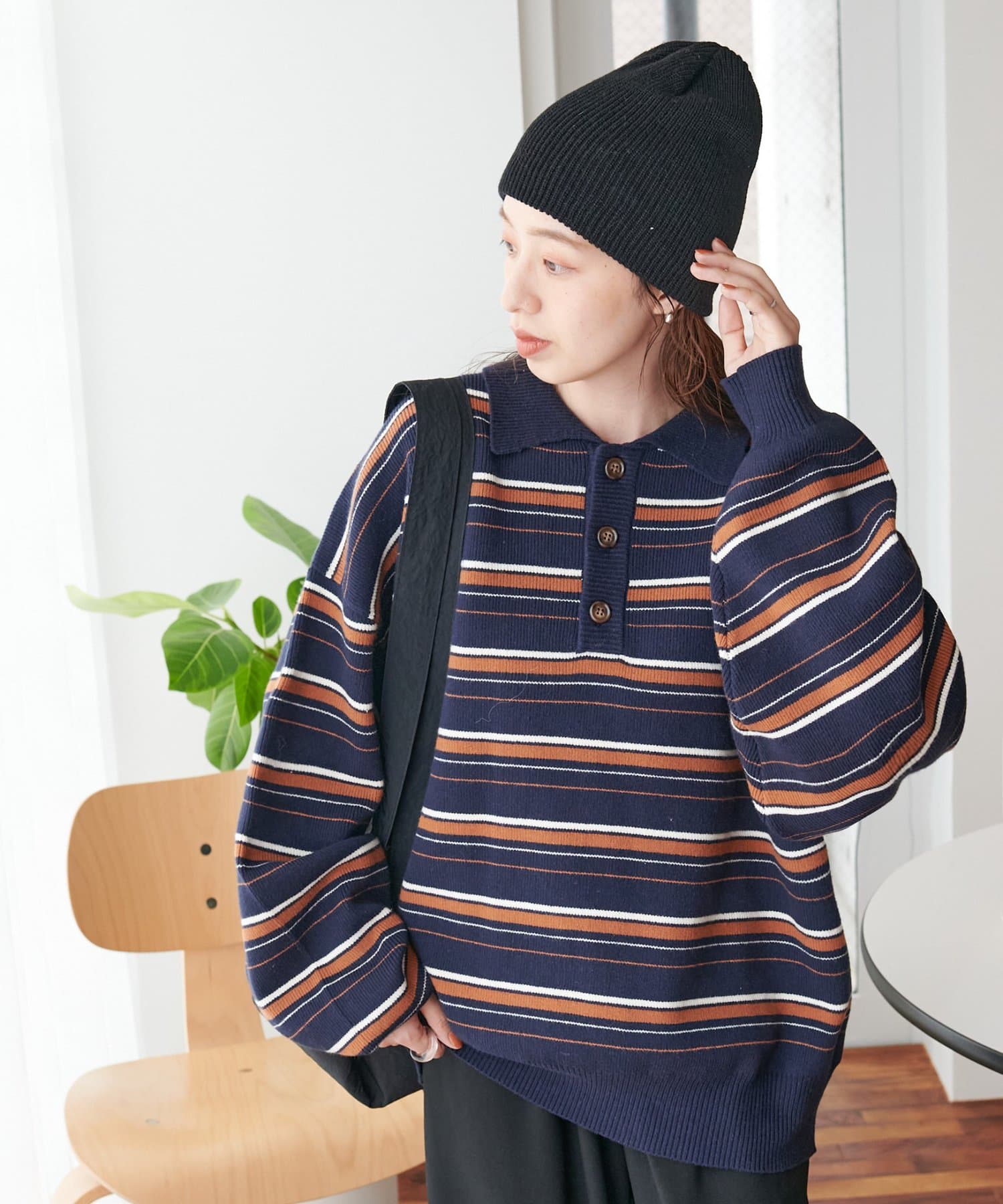 【ユニセックス/WEB限定】マルチボーダーニットポロ