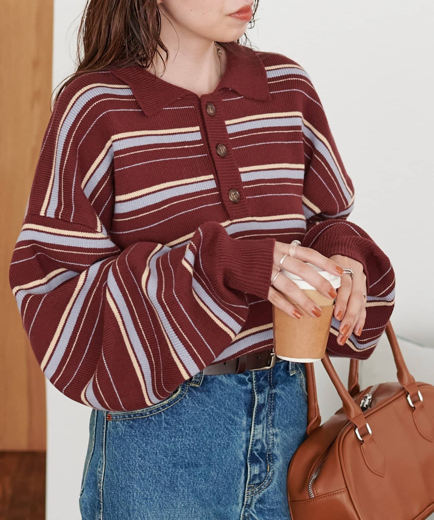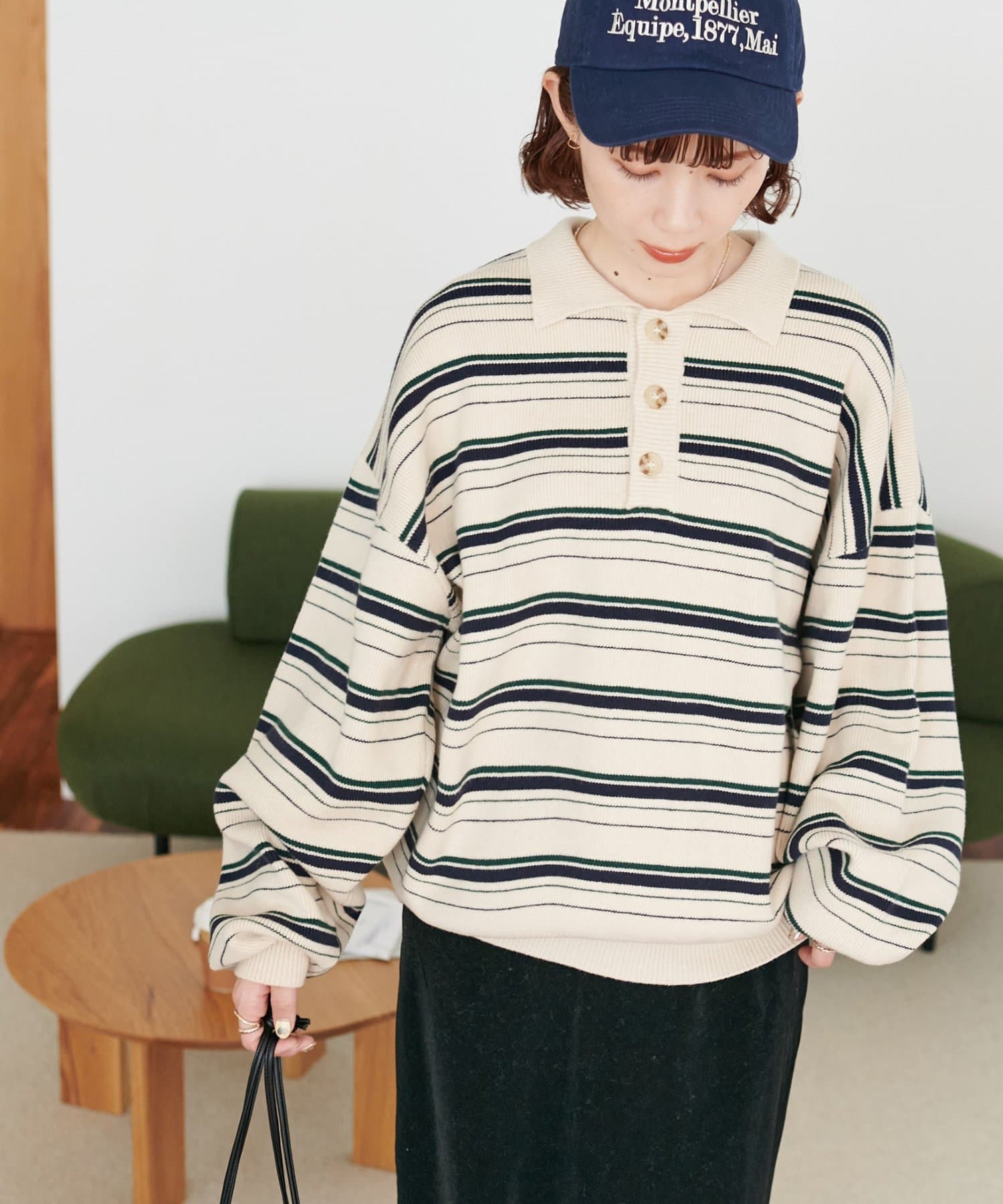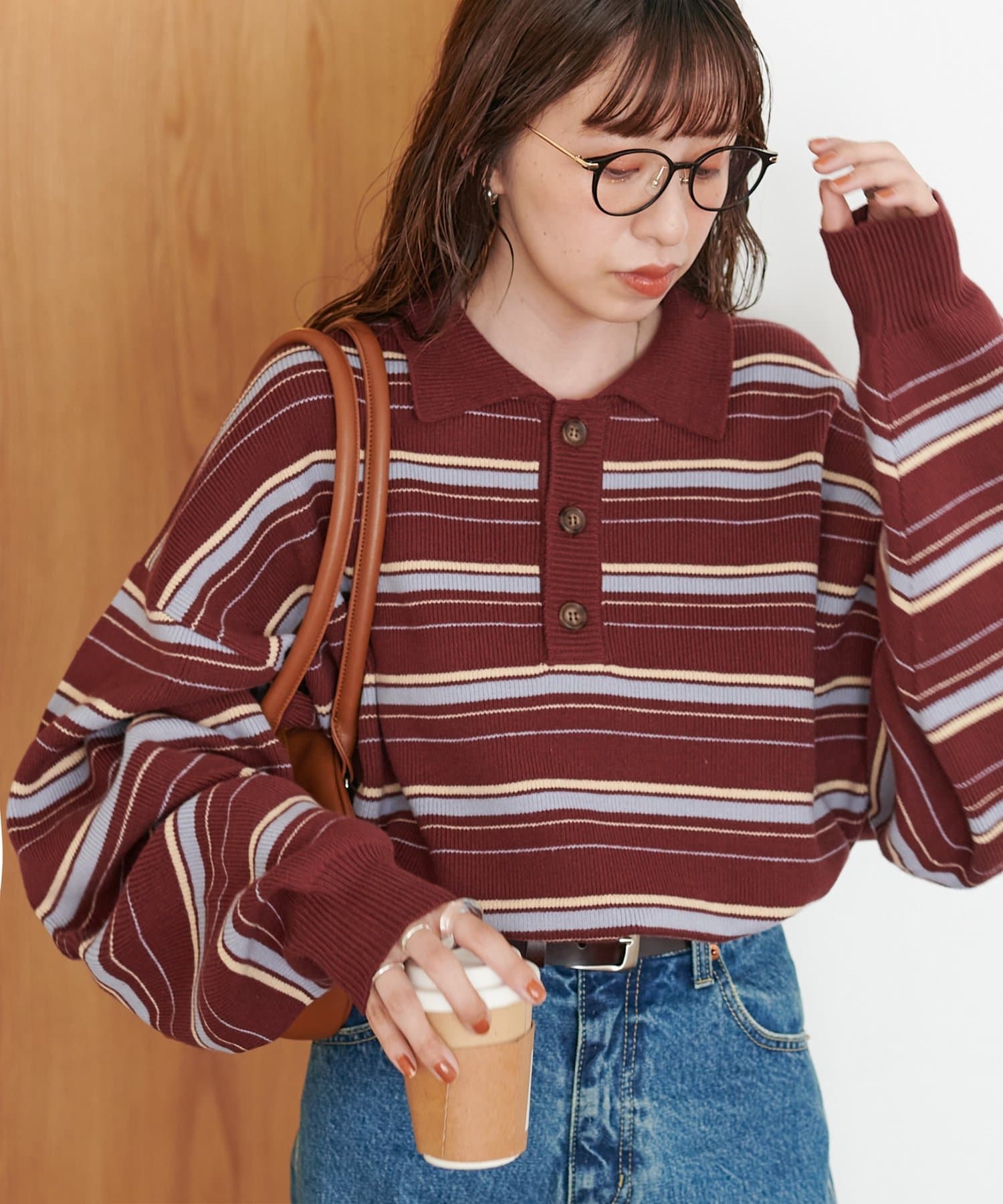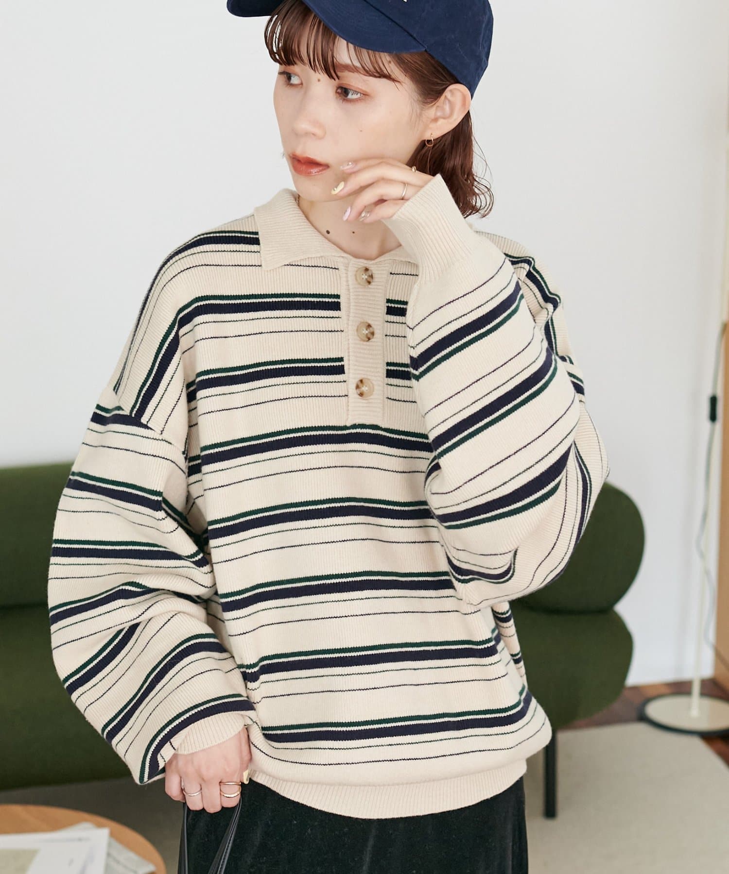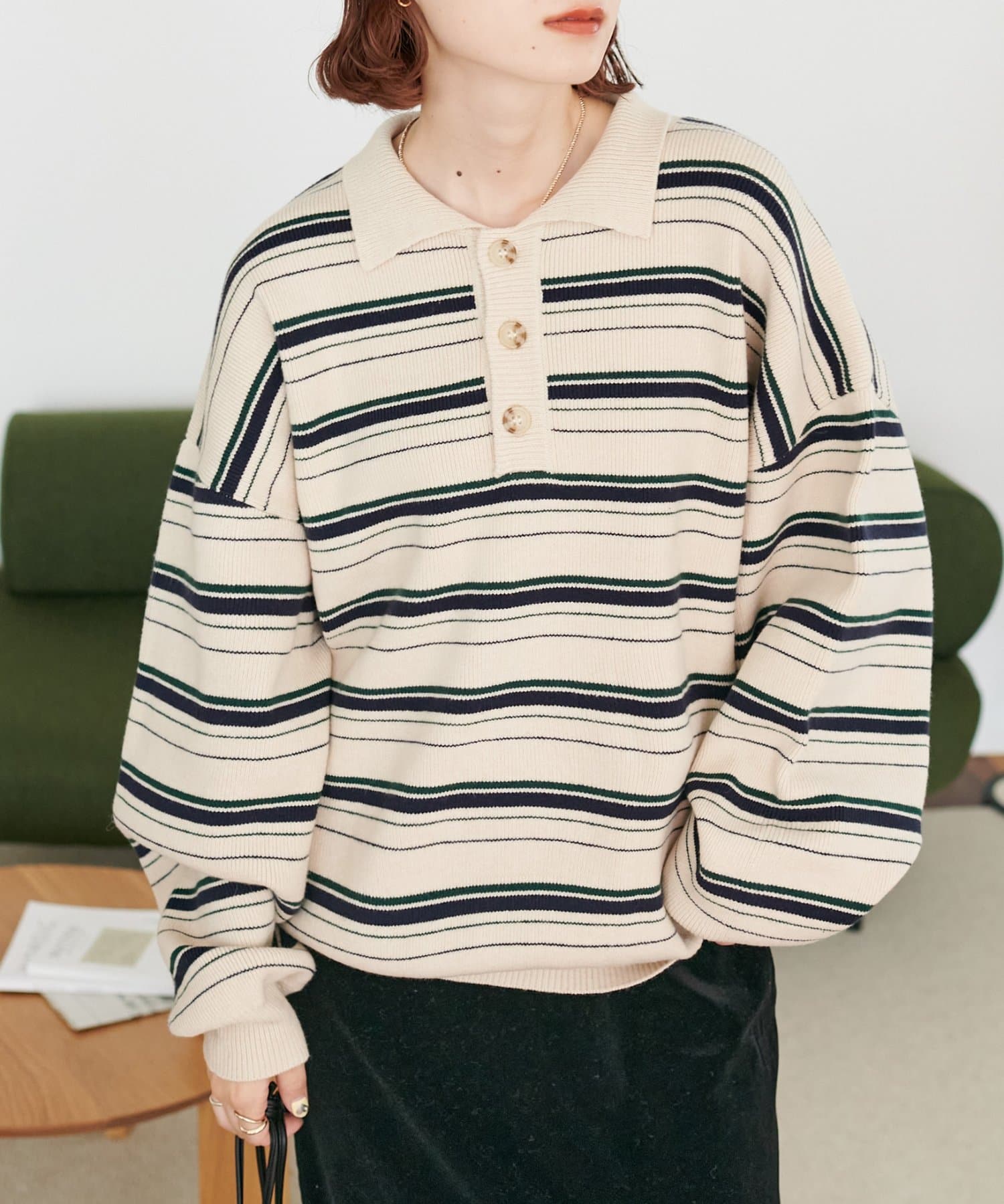 【ユニセックス/WEB限定】マルチボーダーニットポロ