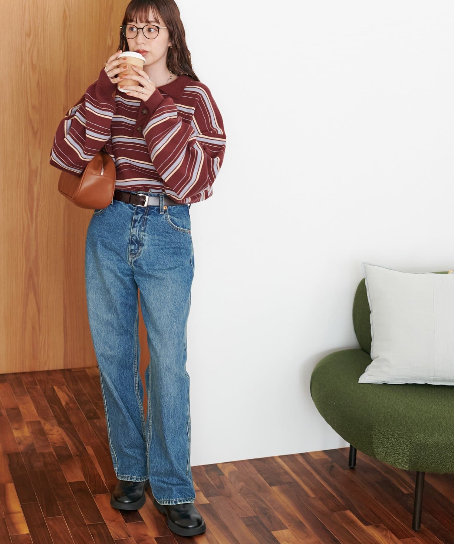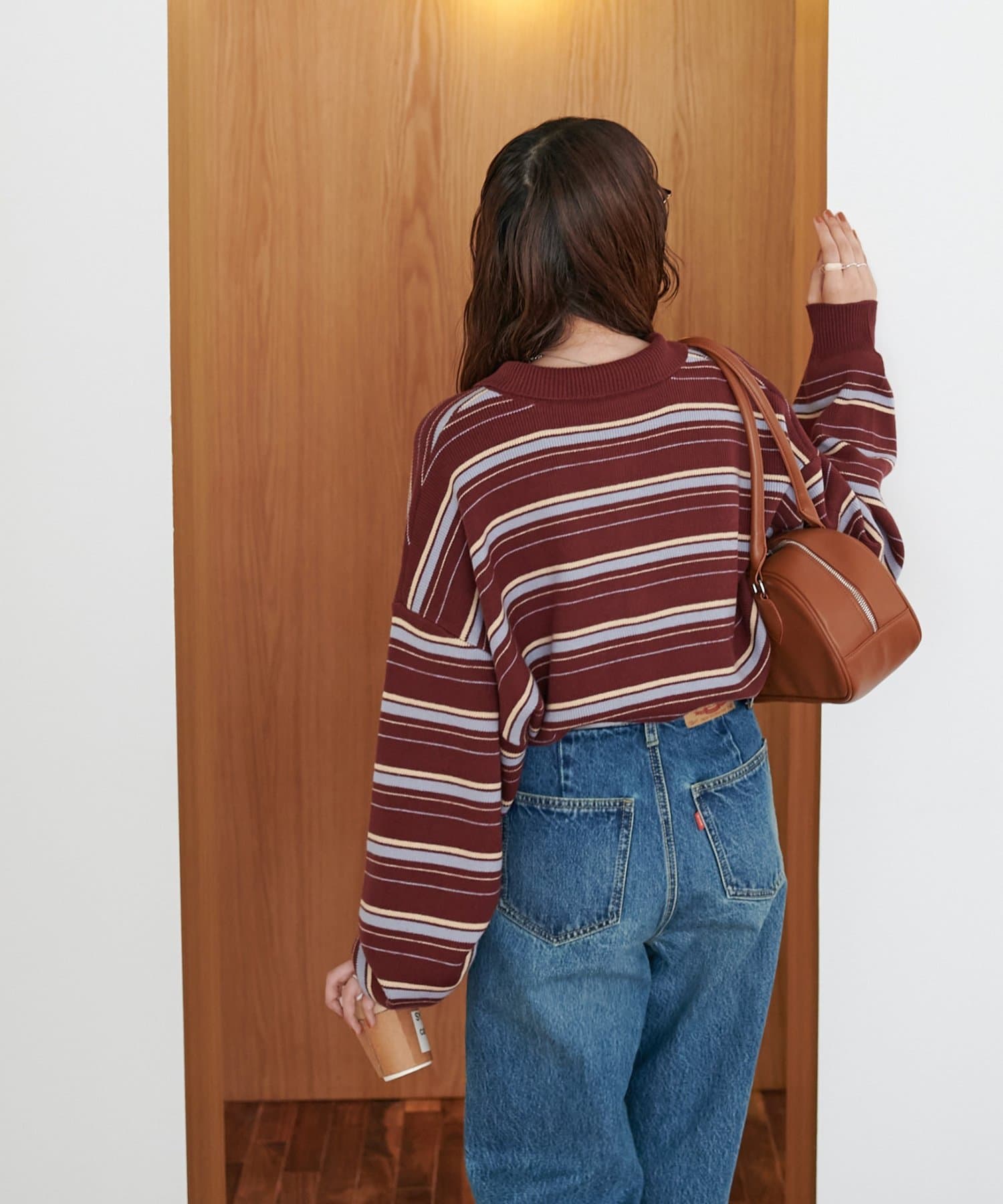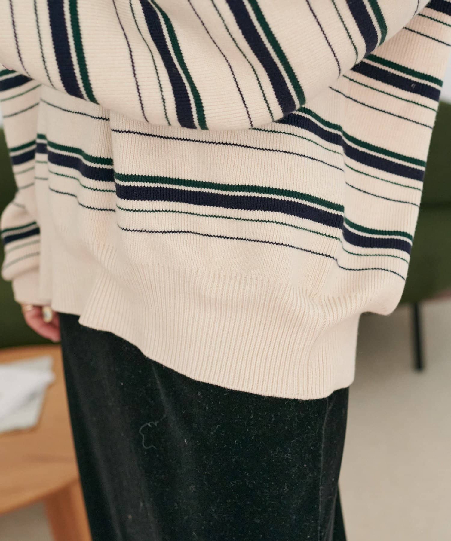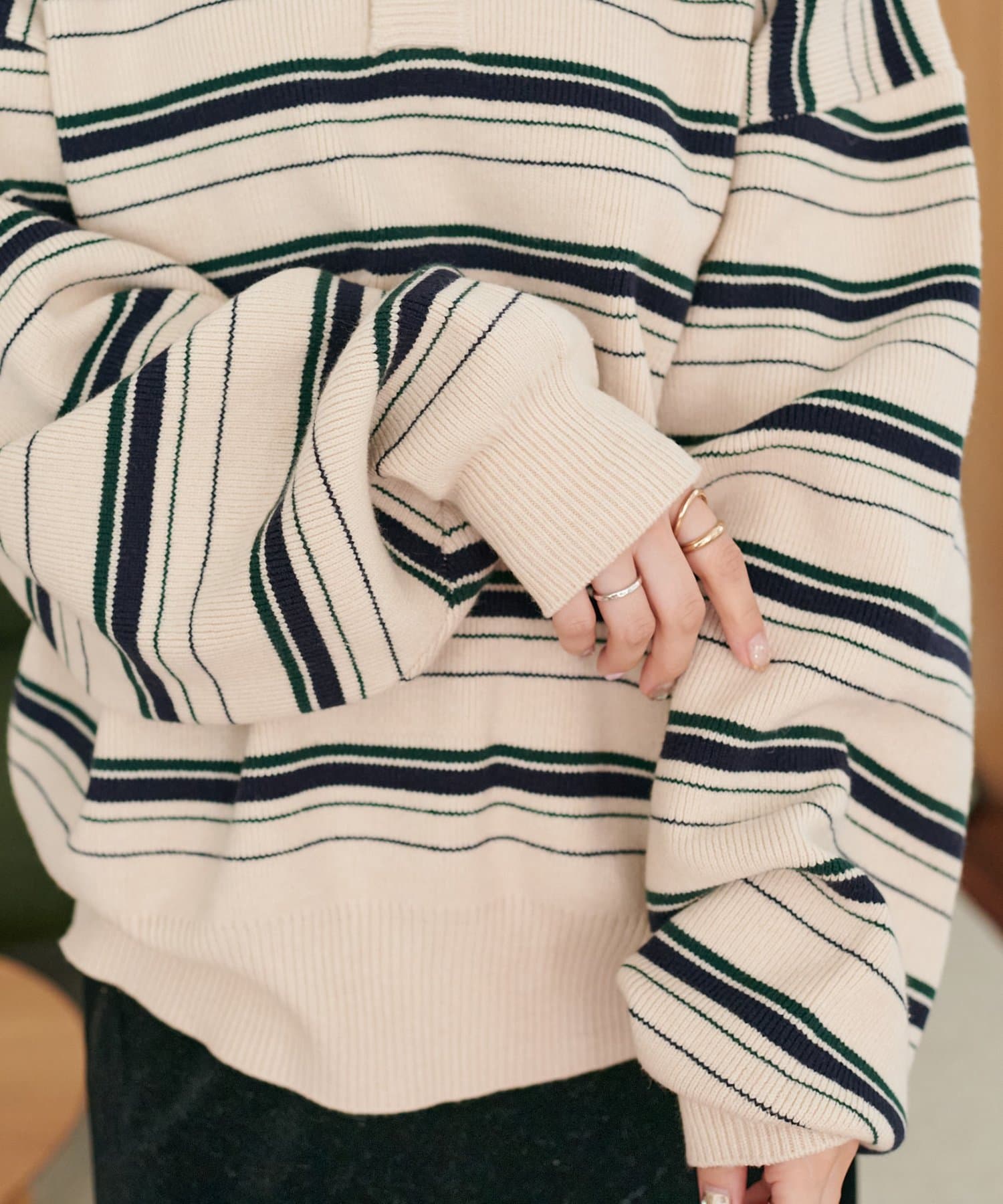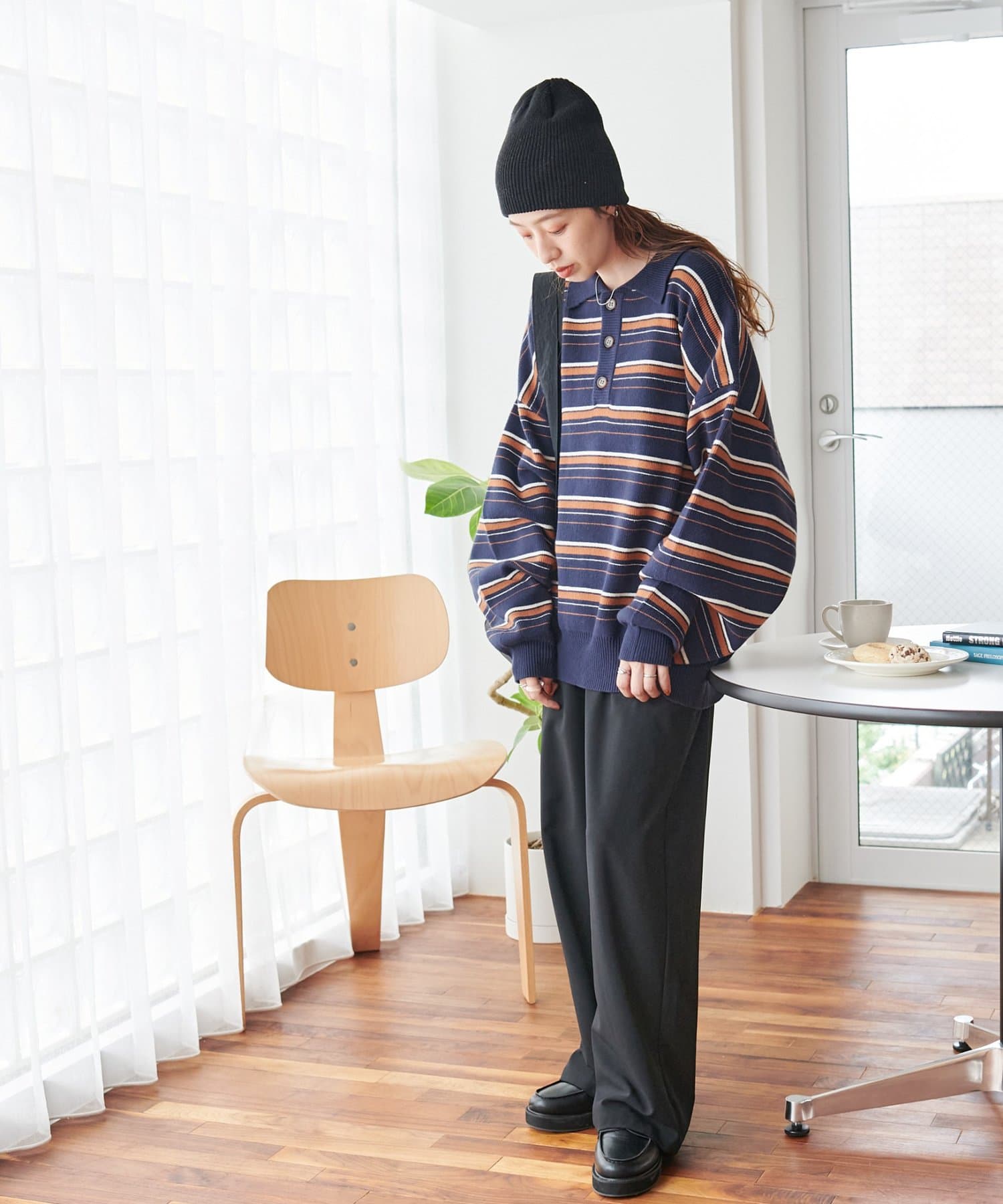 【ユニセックス/WEB限定】マルチボーダーニットポロ