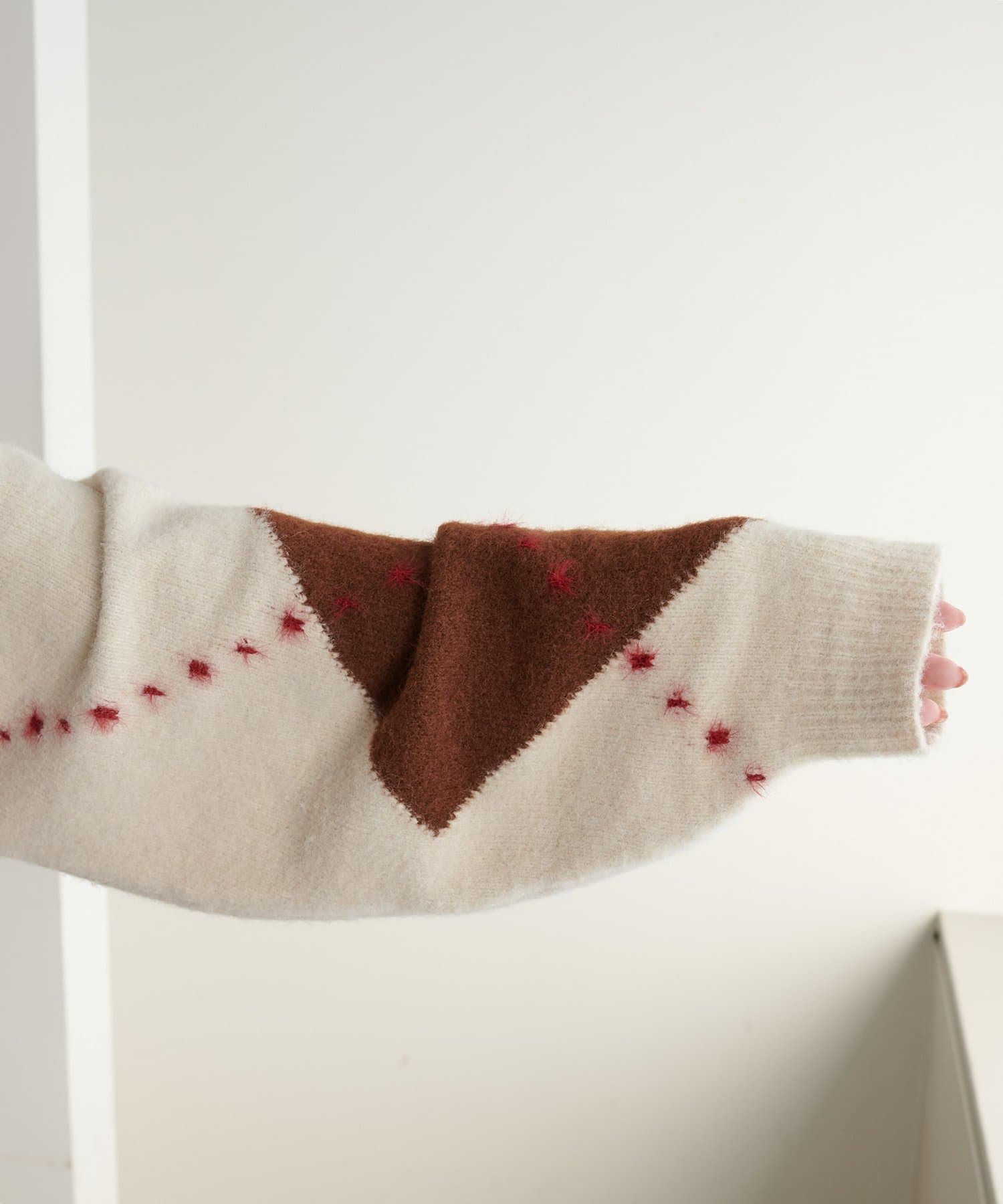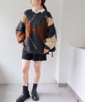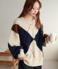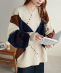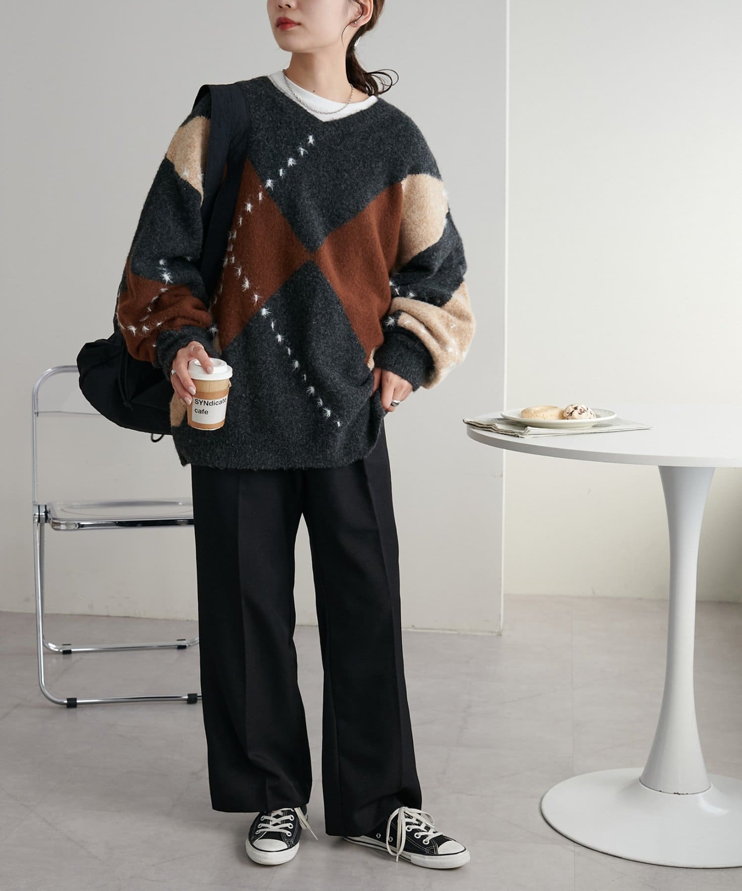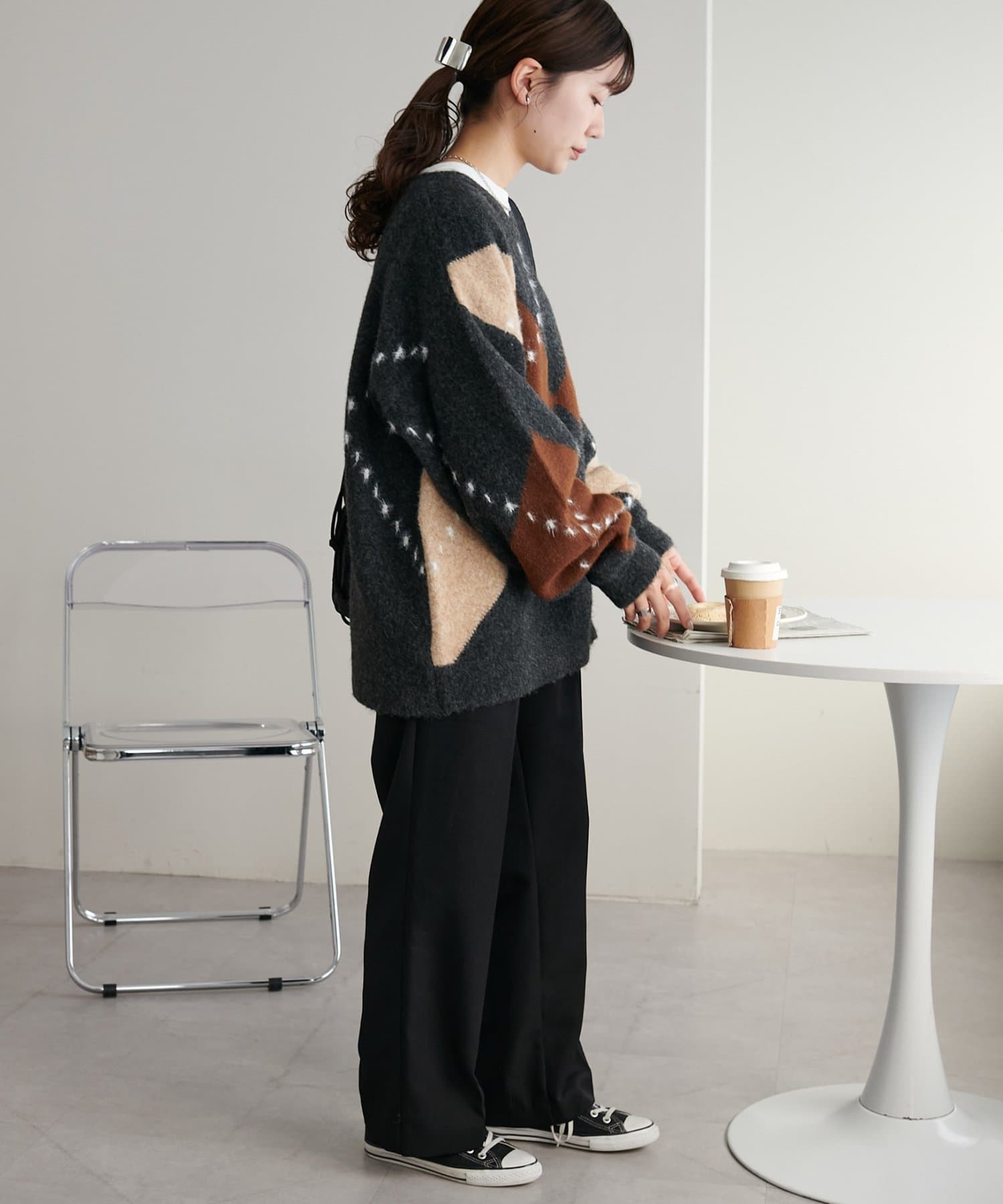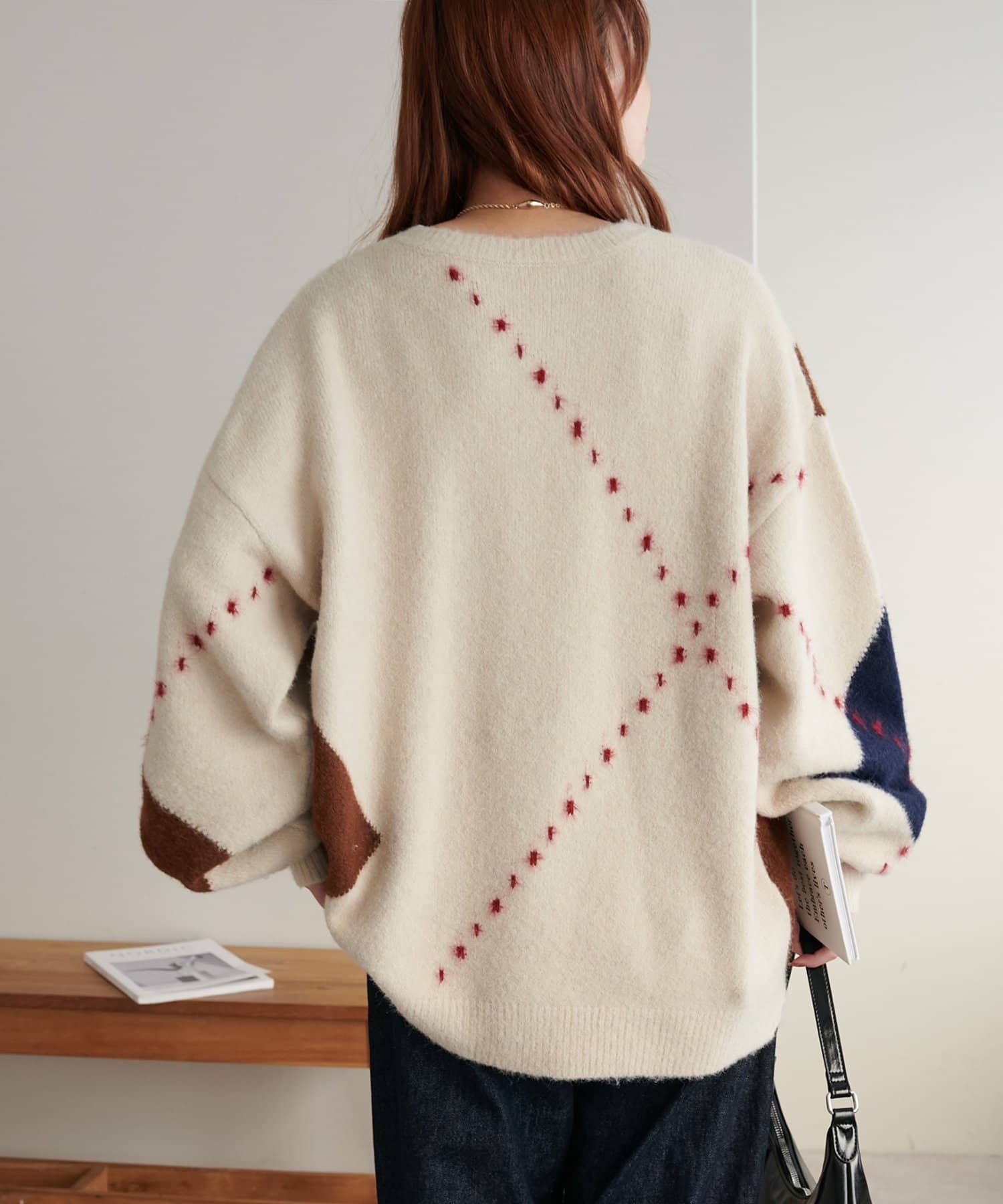存在感のあるアーガイル柄が目を惹くニットトップス。
