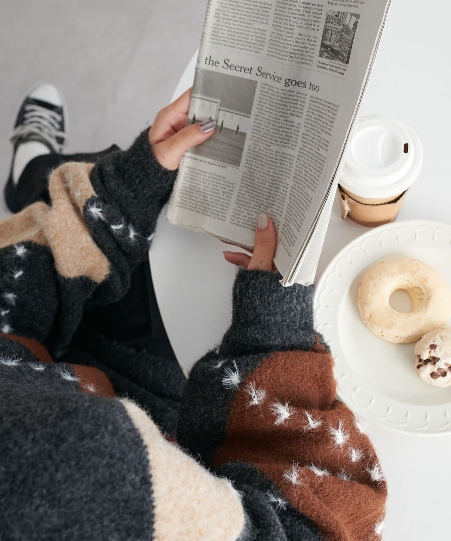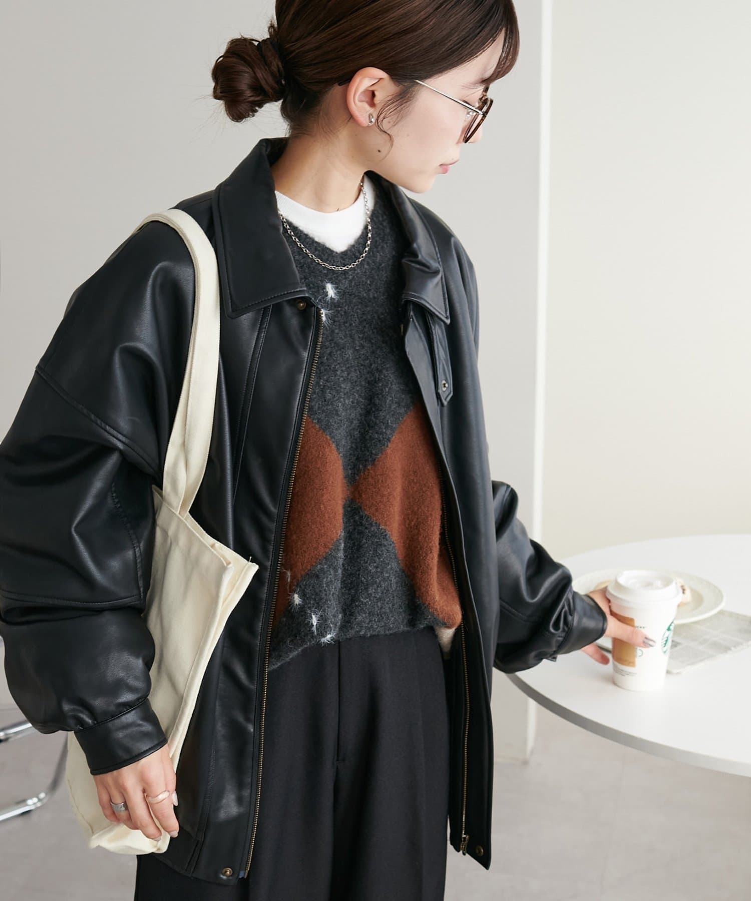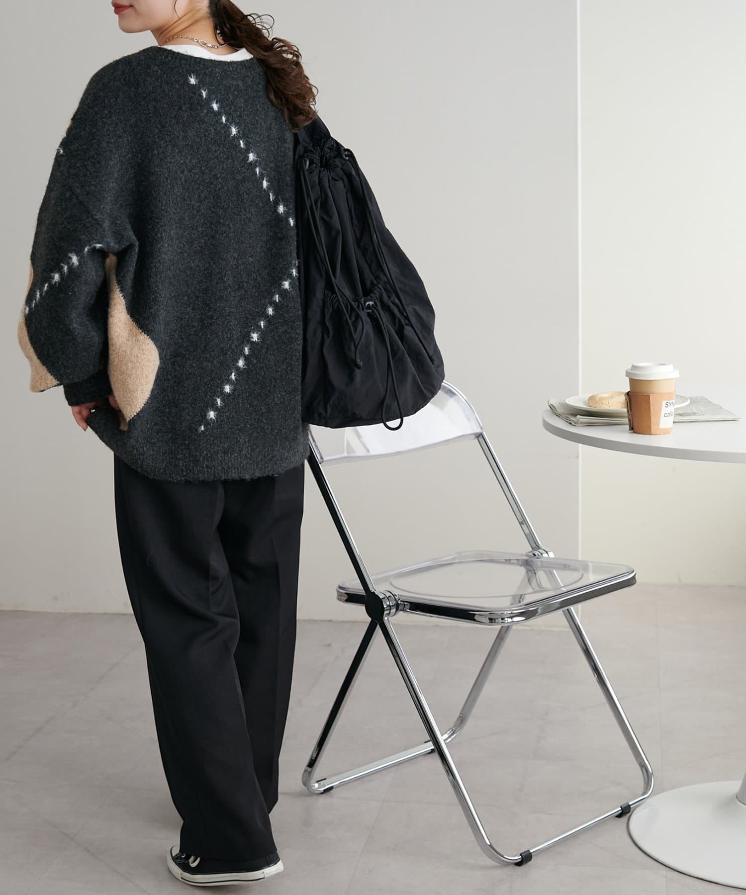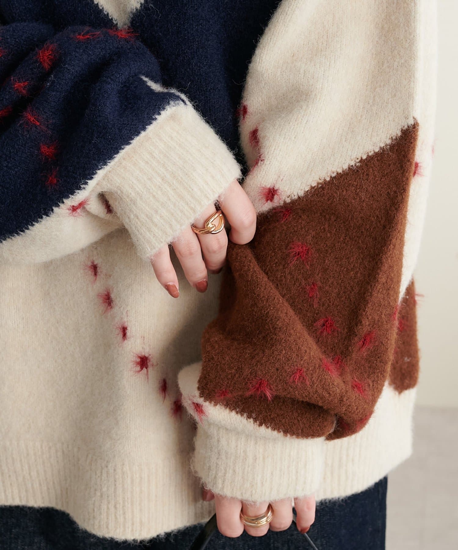 存在感のあるアーガイル柄が目を惹くニットトップス。