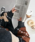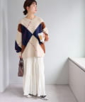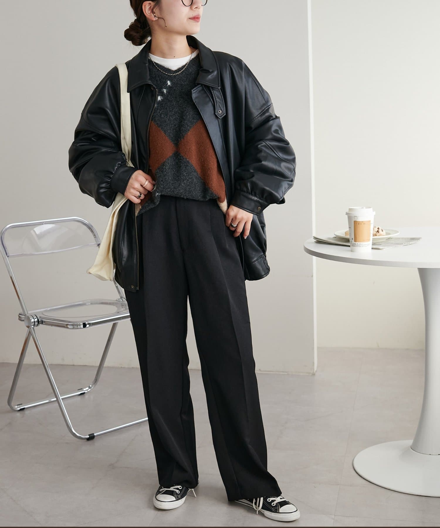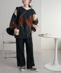 存在感のある柄ニットなので、ボトムスはシンプルなナロースカートやワイドパンツ、デニムパンツ等をチョイスするのがおすすめ◎インナーにTシャツやシャツをレイヤードするとこなれ感がプラスされます。