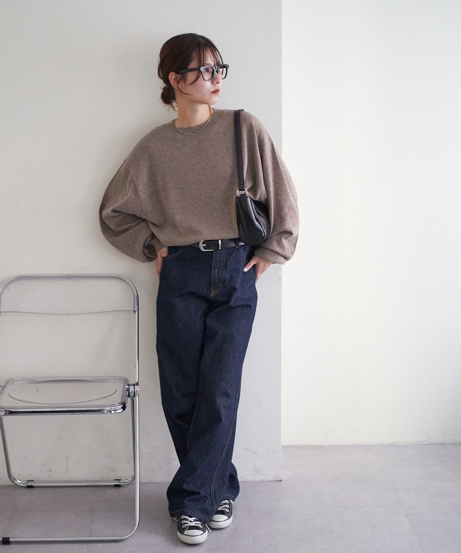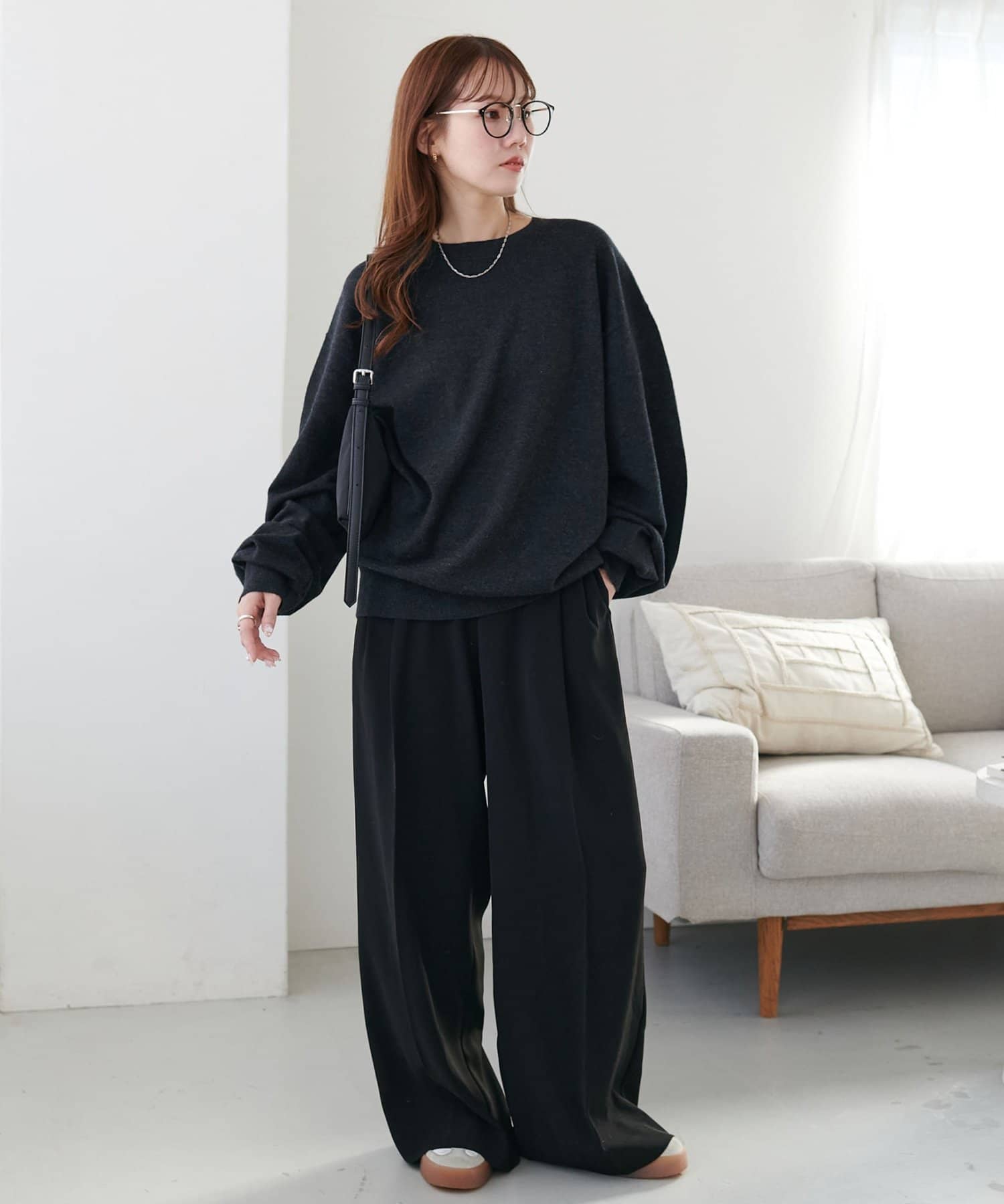 すっきりとしたクルーネックに、肩の力を抜いたリラックス感のあるシルエット。