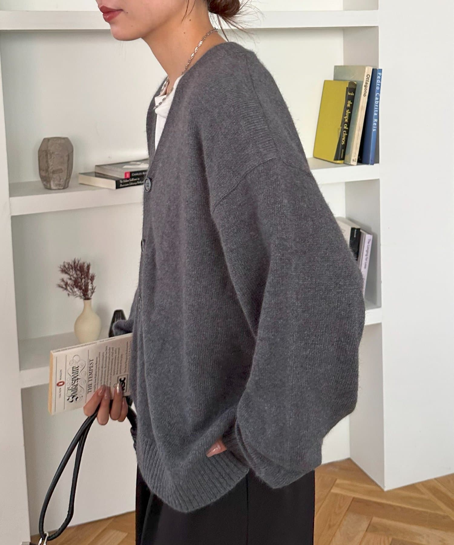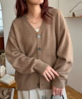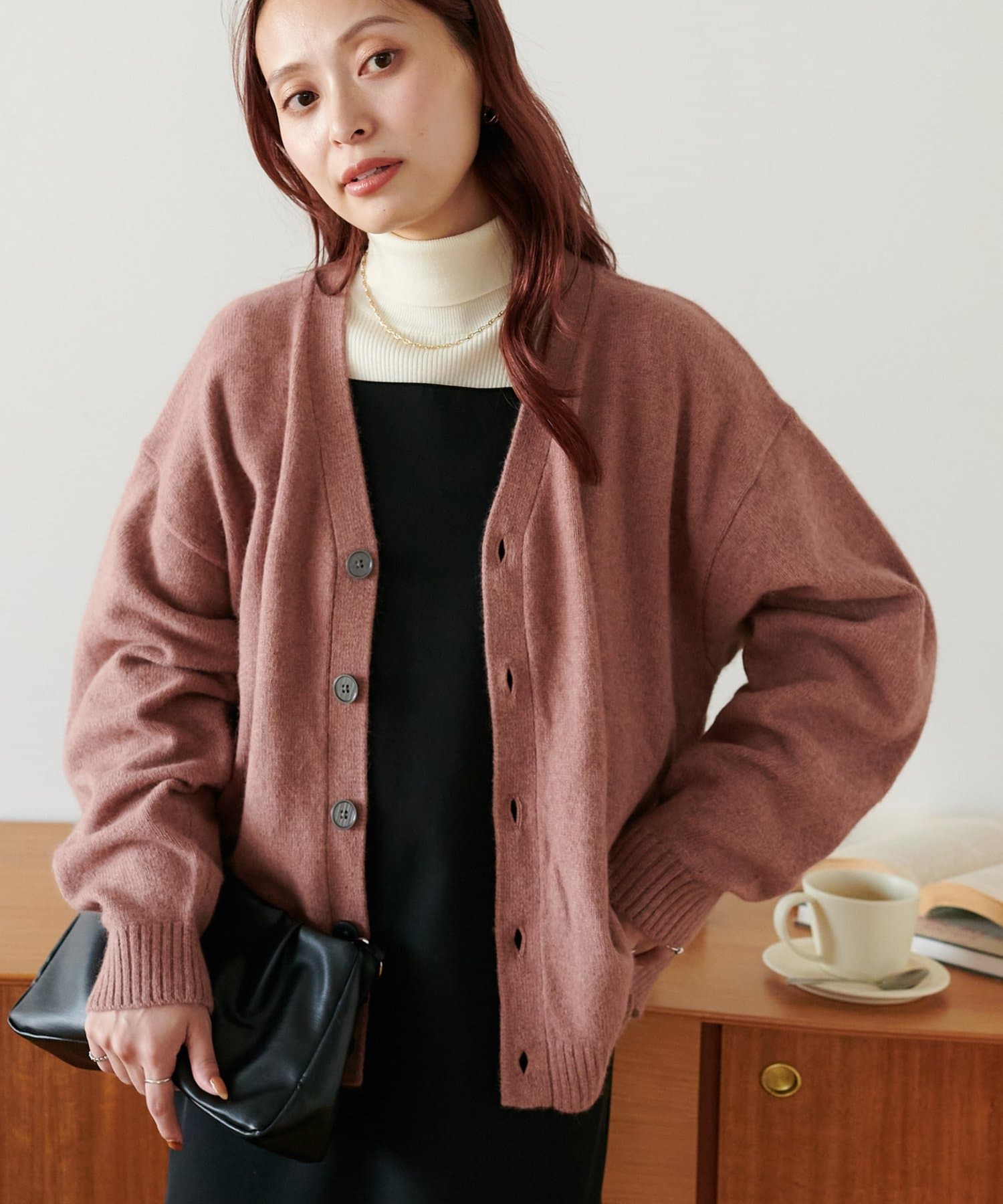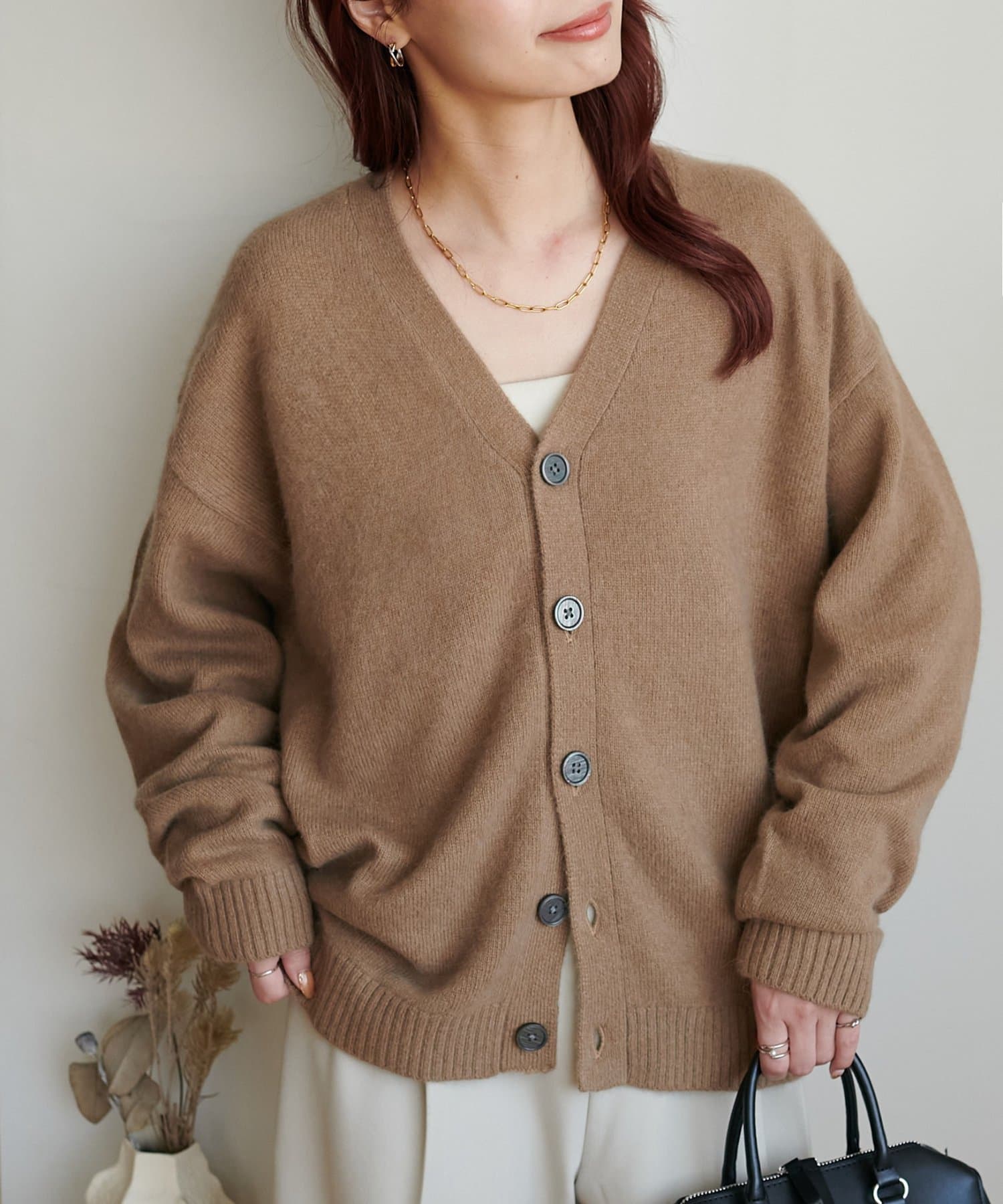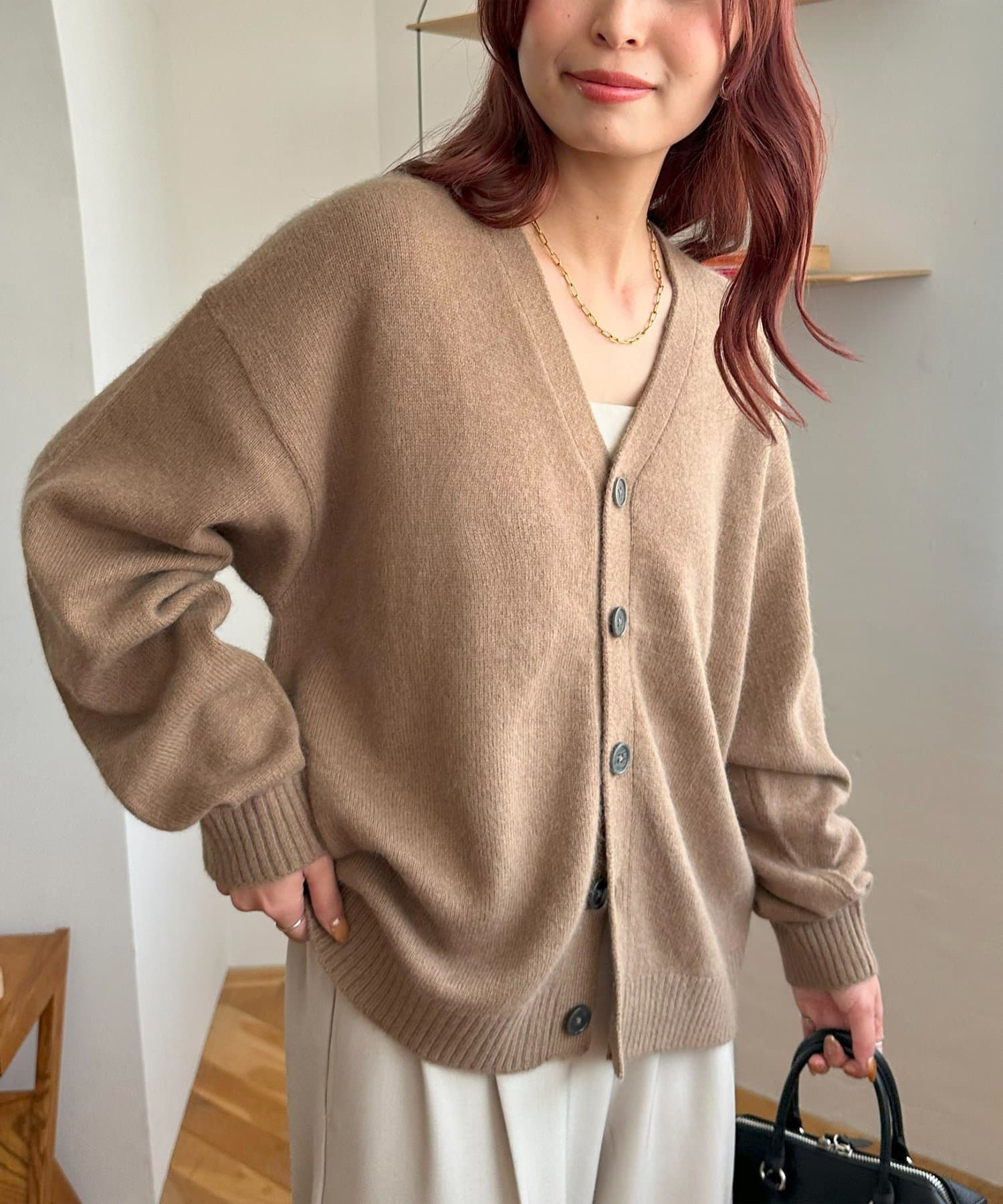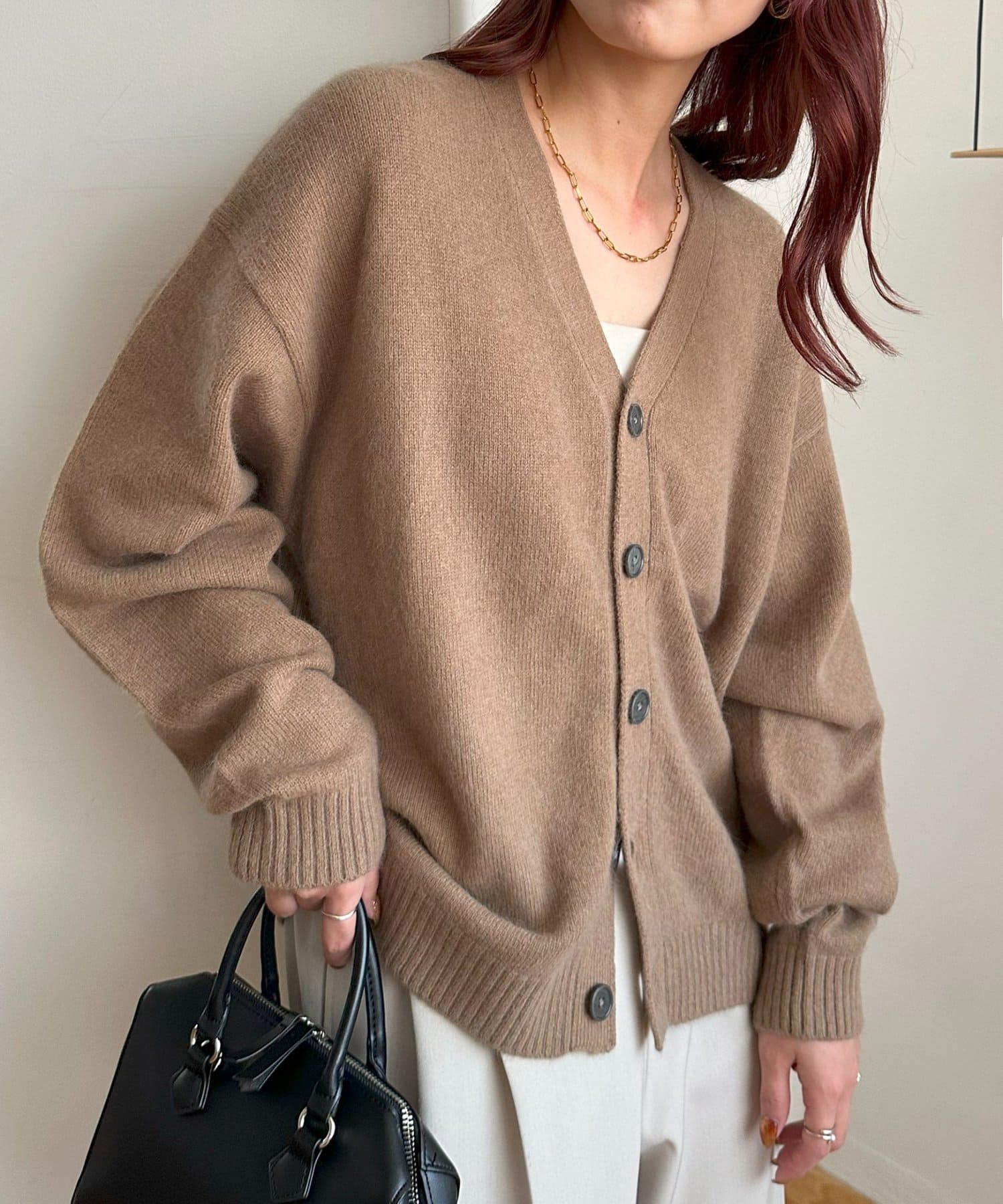 シンプルながらも程よい抜け感のあるVネックデザインが、顔まわりをすっきり見せてくれるカーディガン。