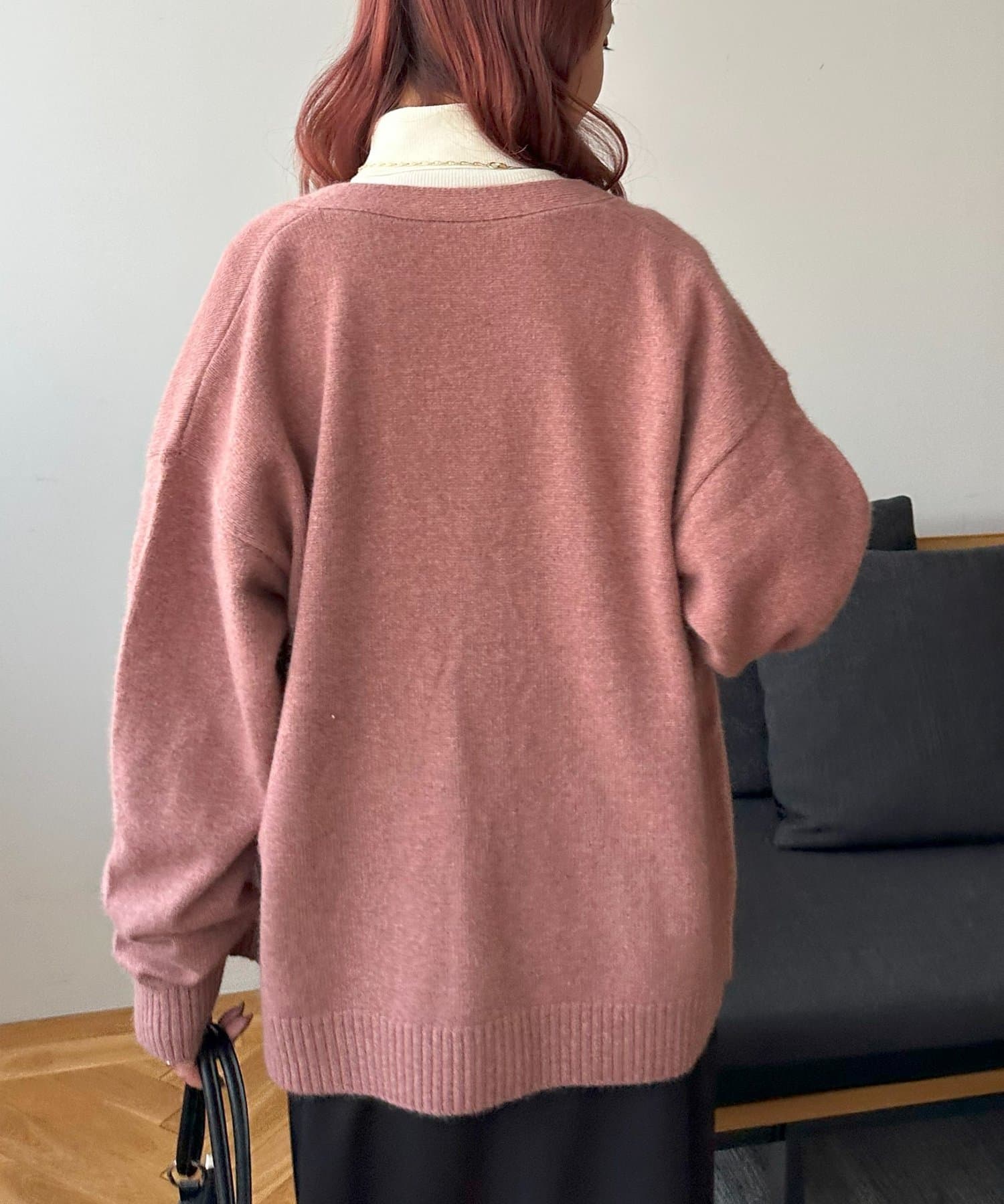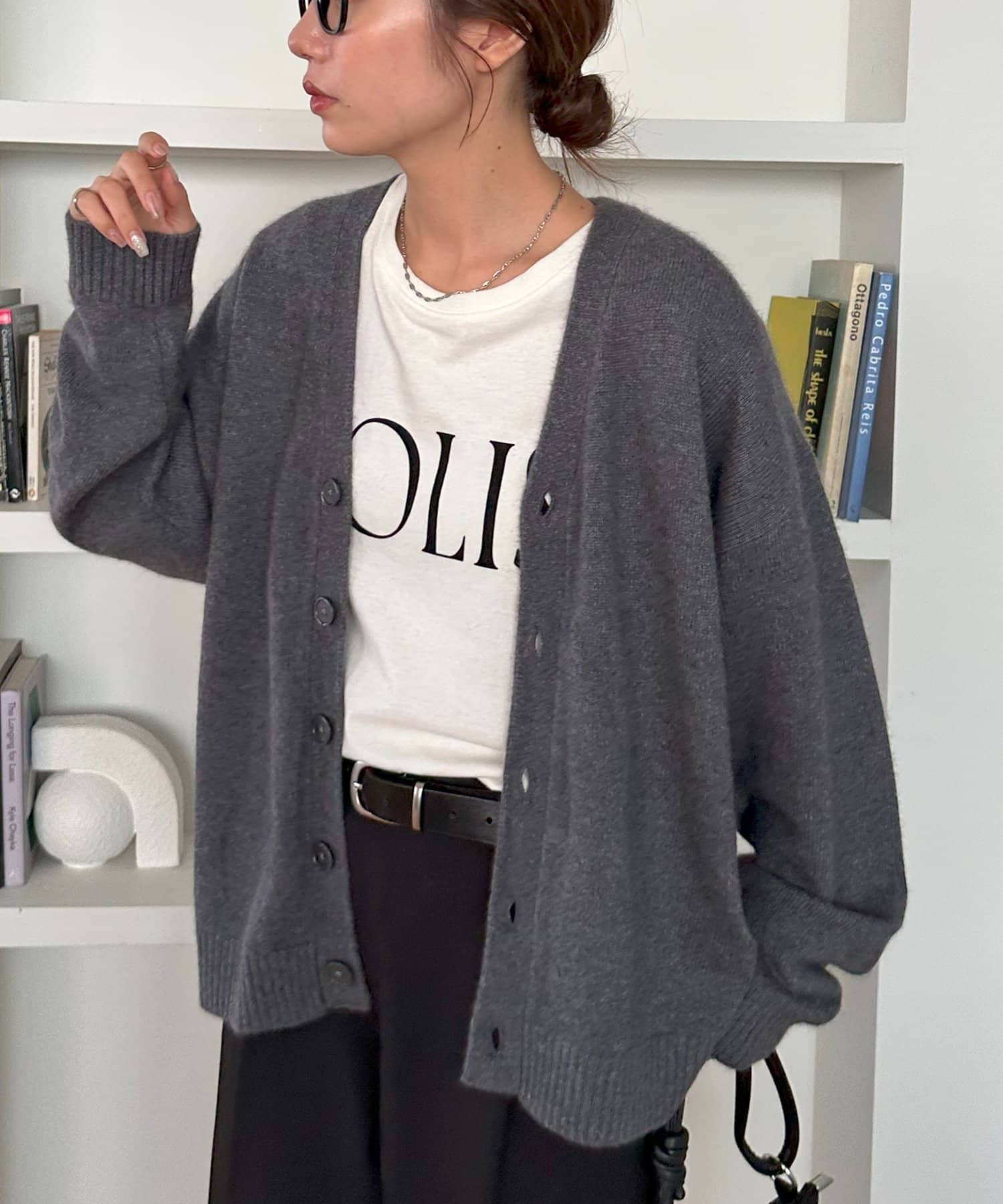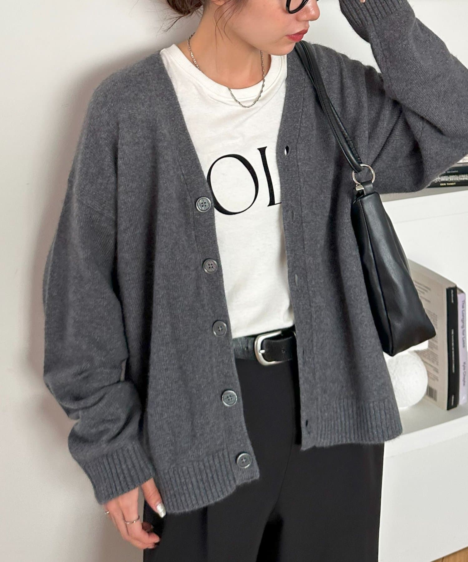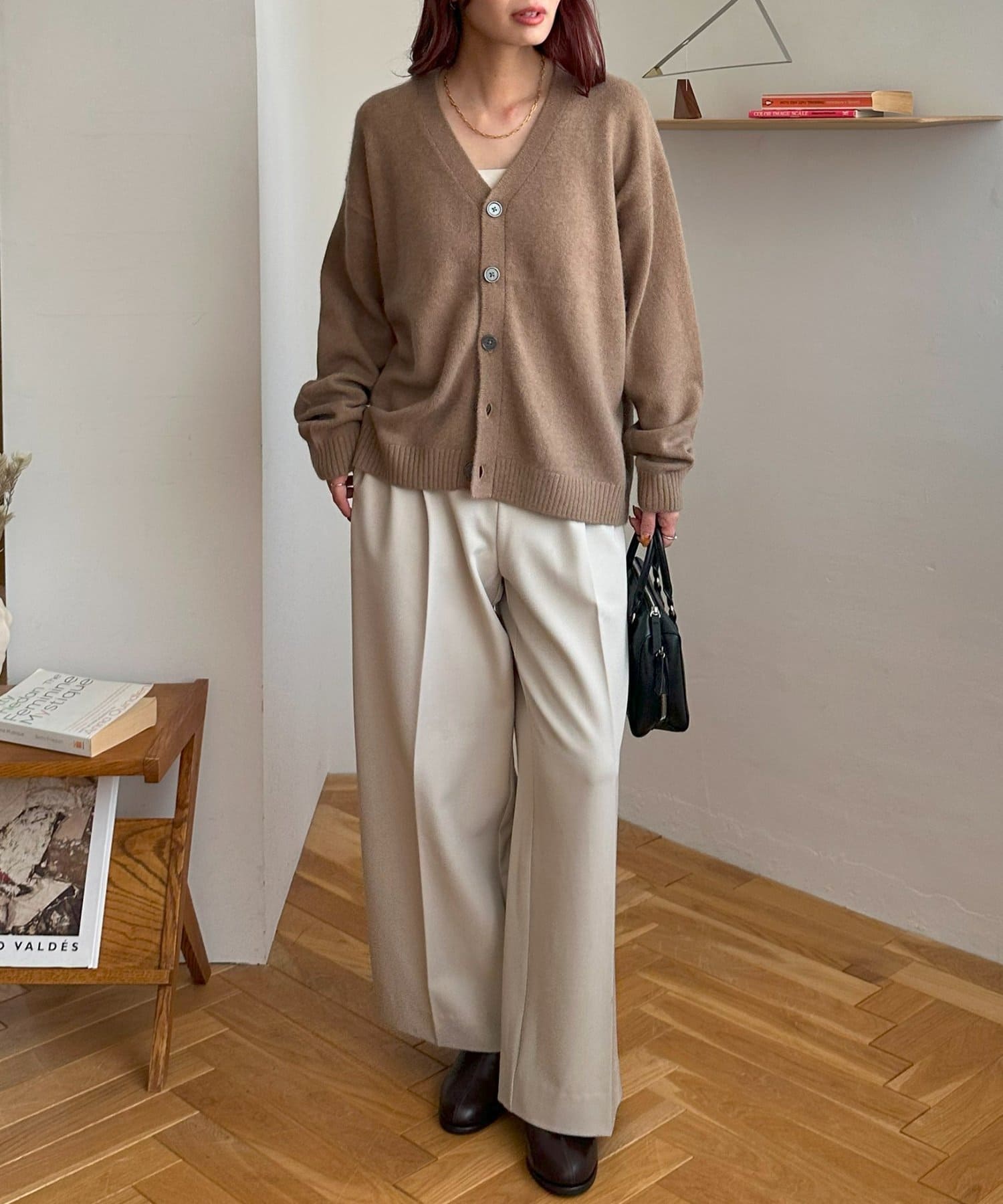 シンプルながらも程よい抜け感のあるVネックデザインが、顔まわりをすっきり見せてくれるカーディガン。