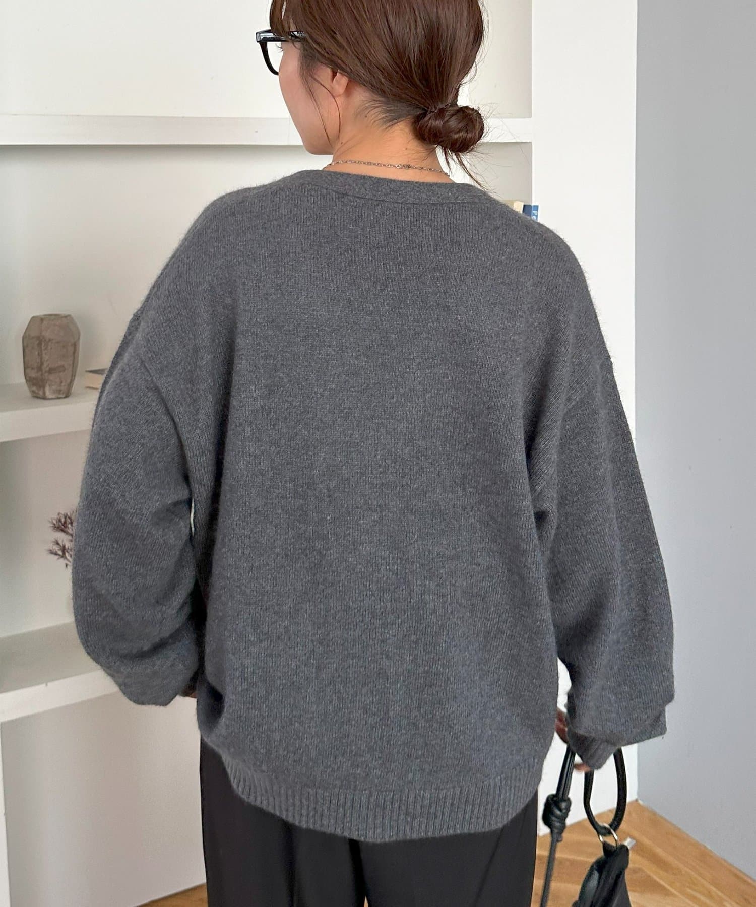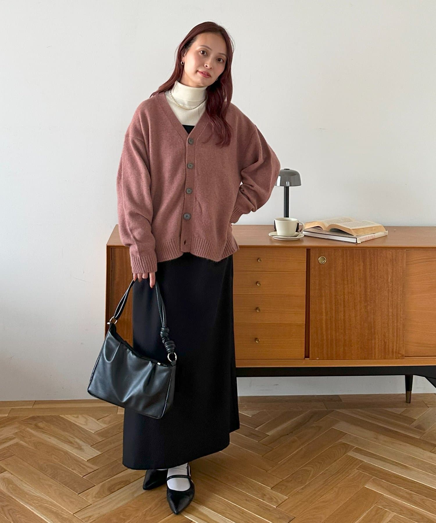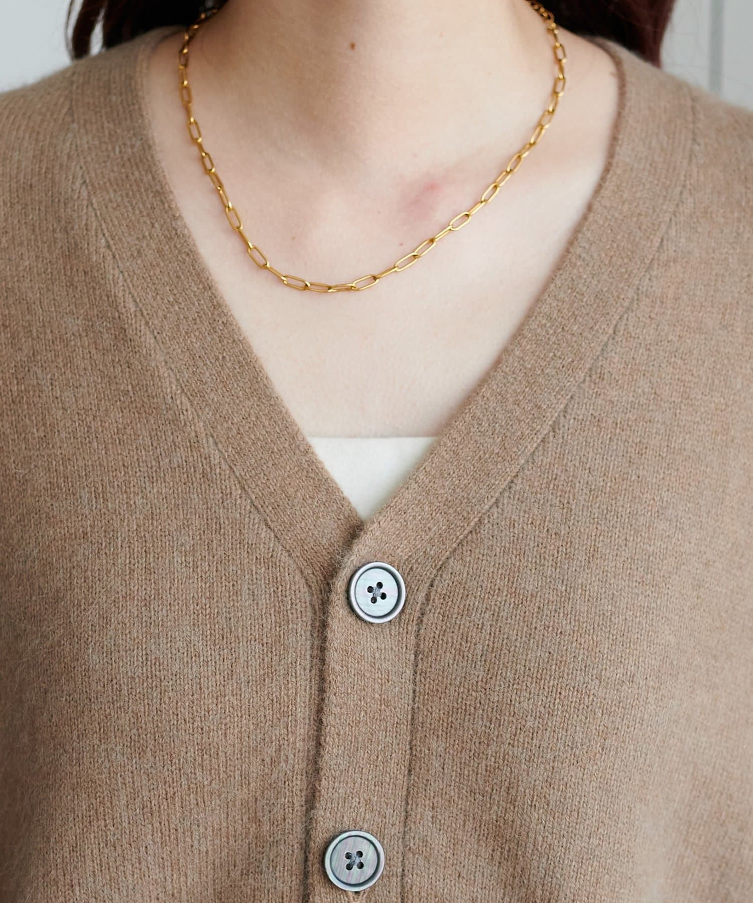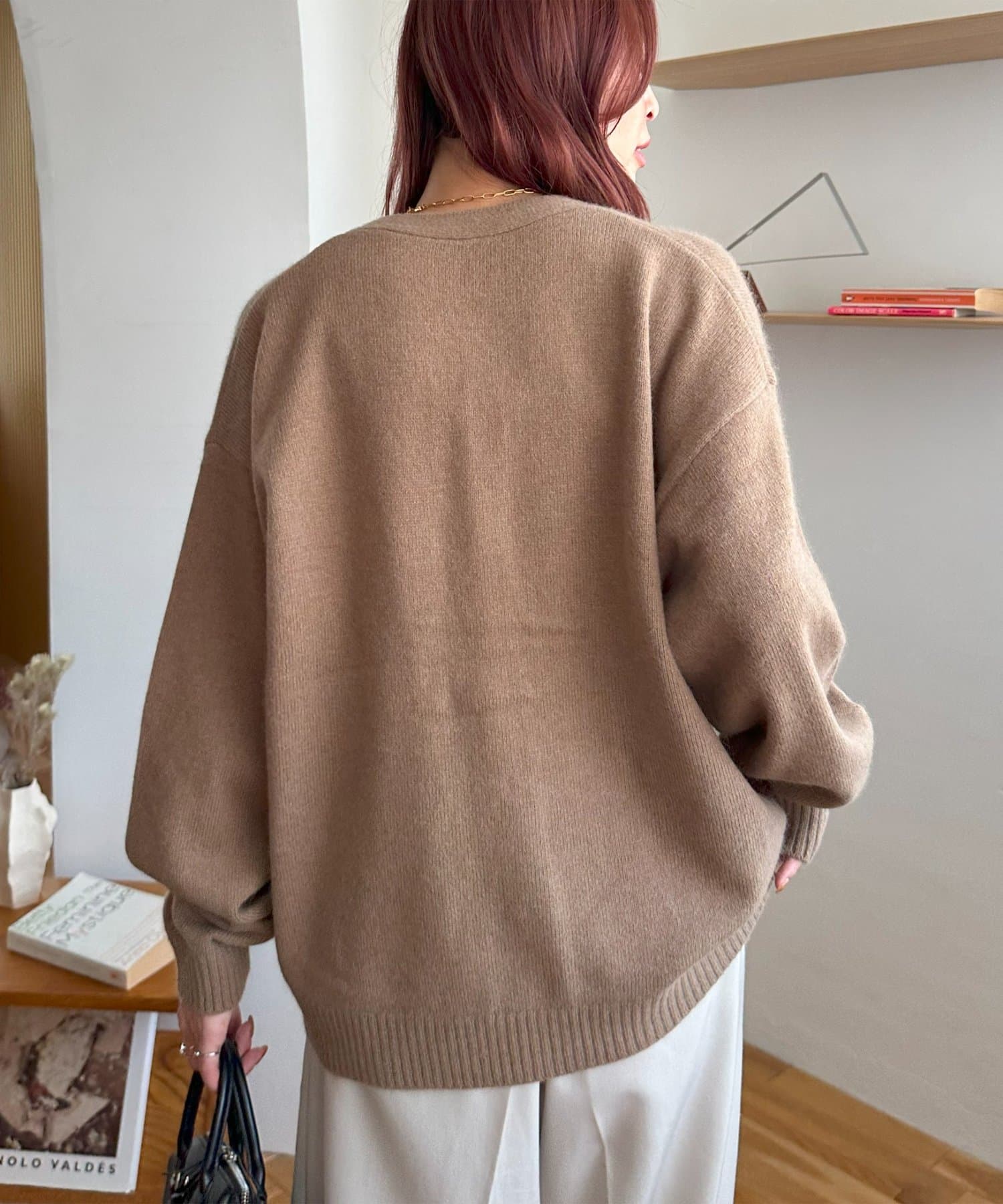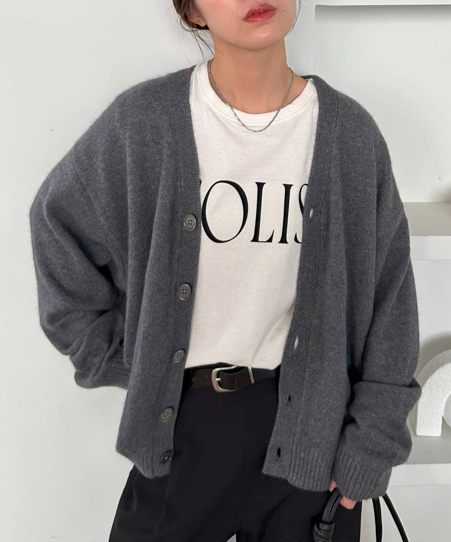 シンプルながらも程よい抜け感のあるVネックデザインが、顔まわりをすっきり見せてくれるカーディガン。