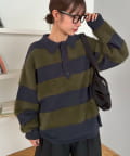 【ユニセックス】シャギーワイドボーダーニットポロ