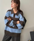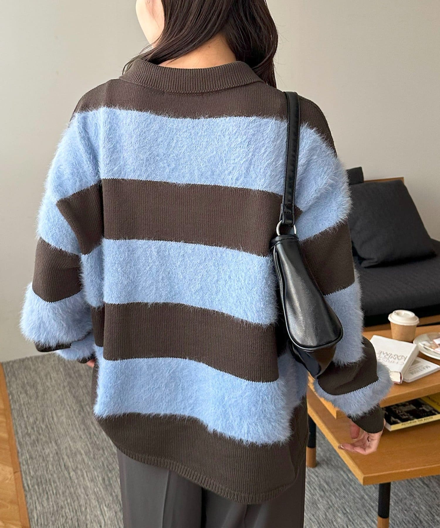 TOP > DISCOAT > レディース > トップス > ニット/セーター > 【ユニセックス】シャギーワイドボーダーニットポロ