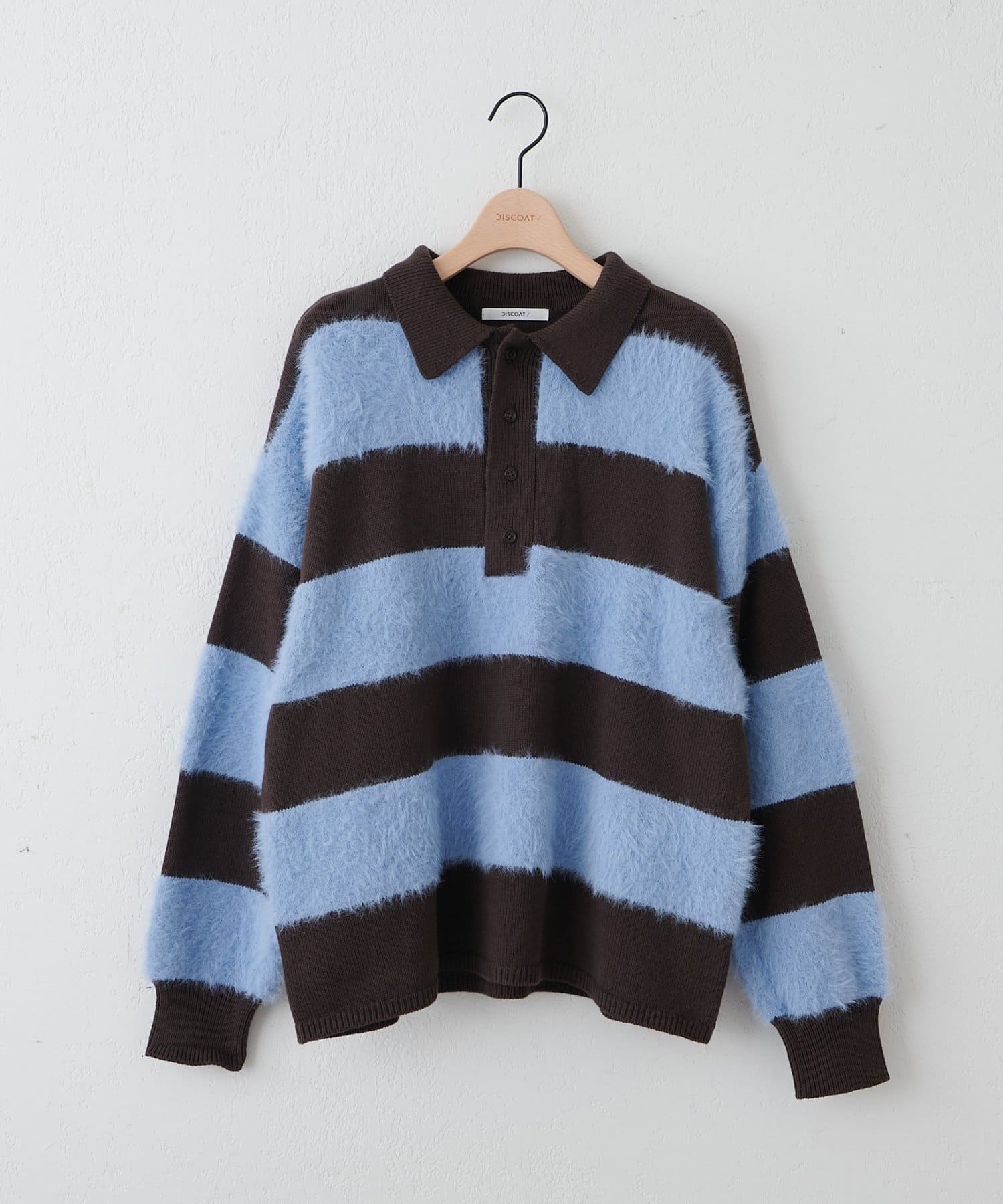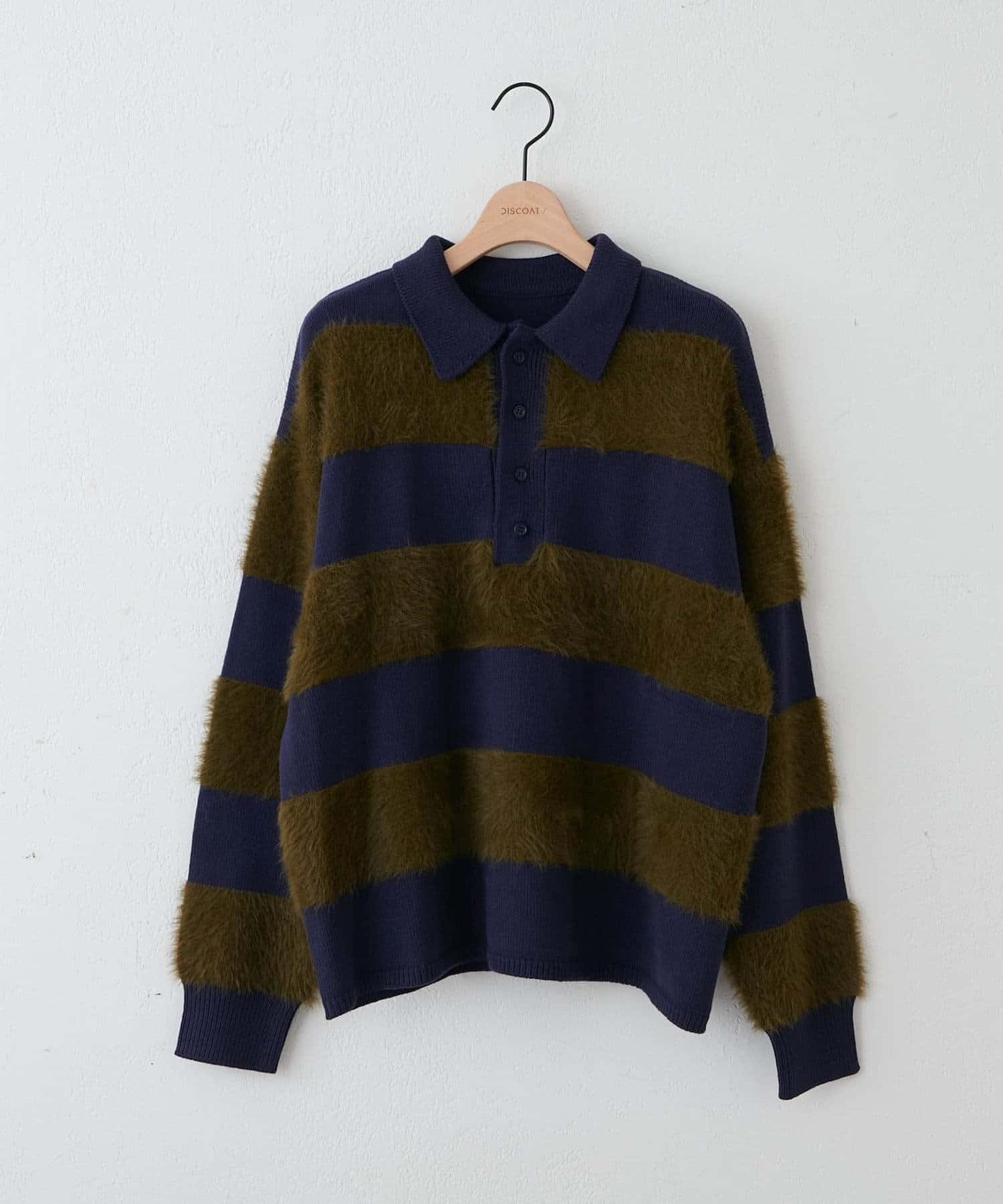 • DISCOAT(ディスコート) 【ユニセックス】シャギーワイドボーダーニットポロ