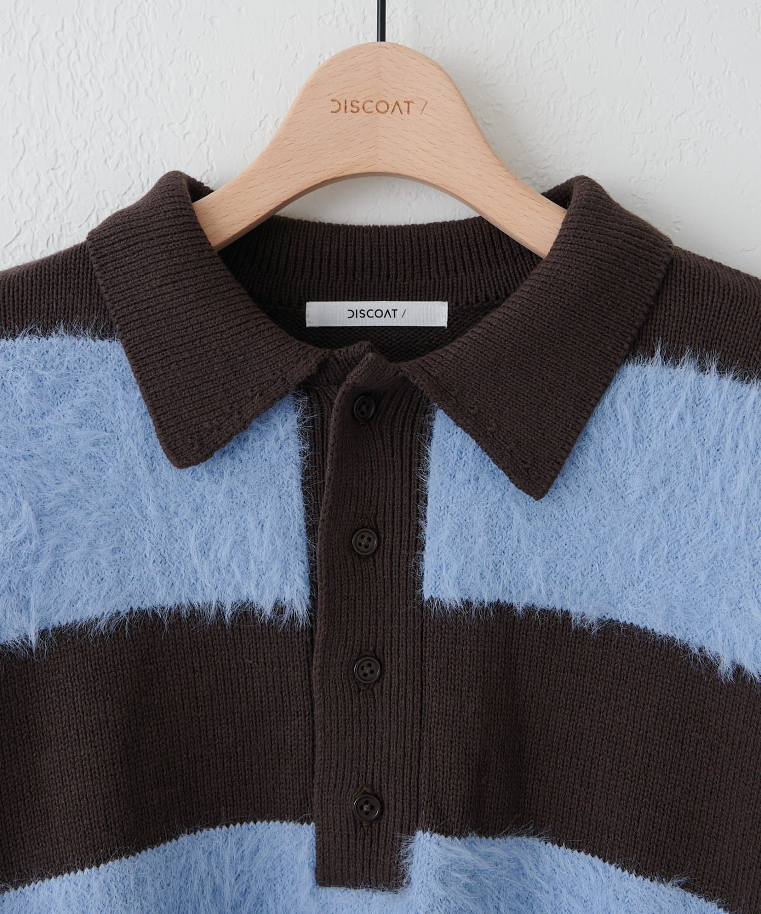 DISCOAT(ディスコート) 【ユニセックス】シャギーワイドボーダーニットポロ