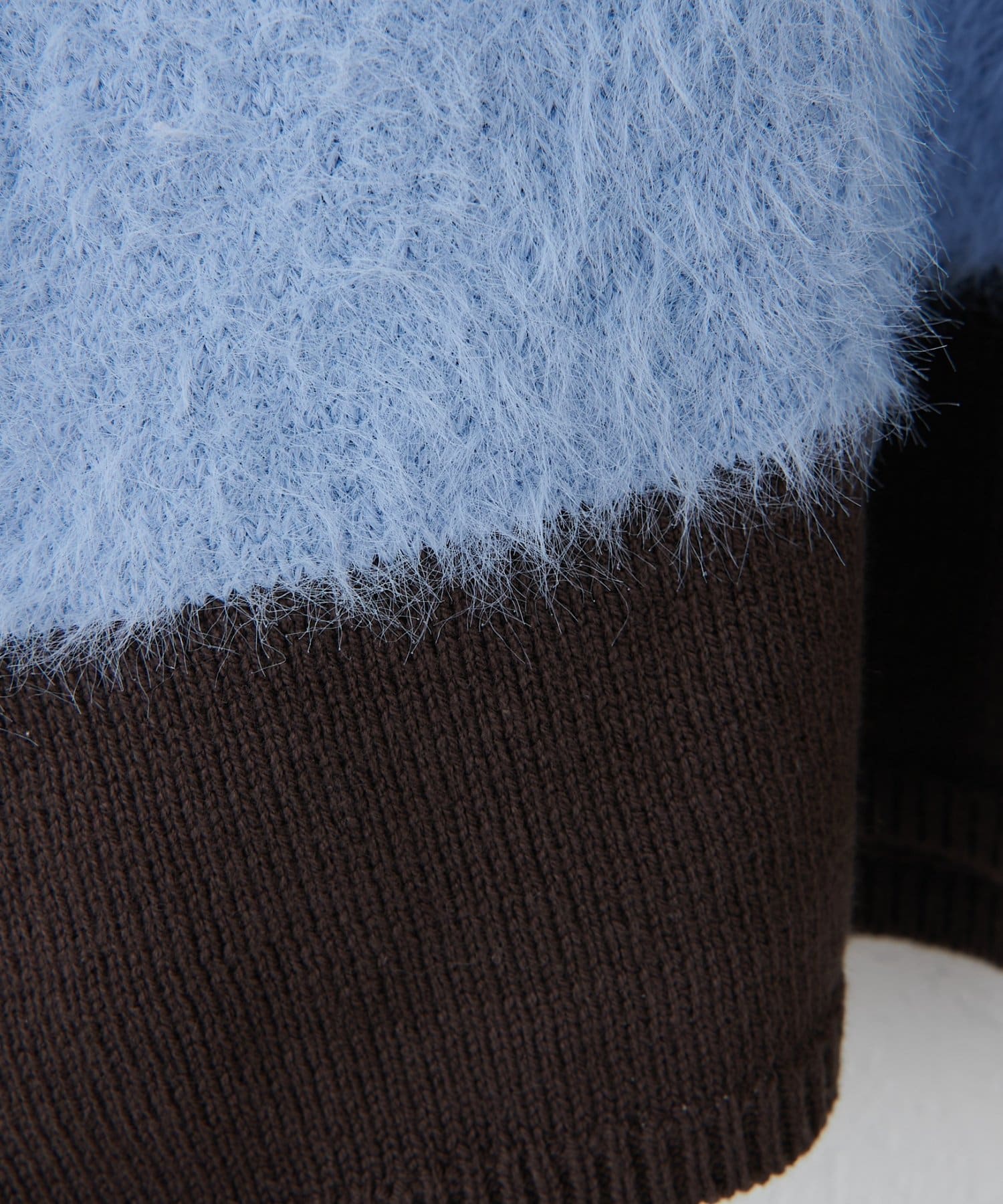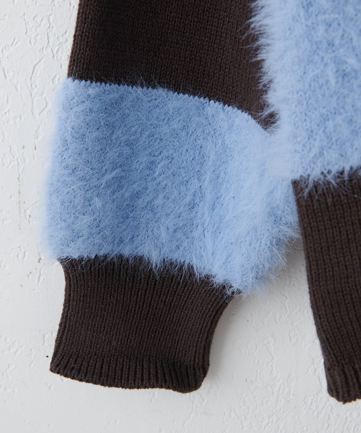 起毛感のあるシャギーニットを使用し、ふんわりとした肌触りとぬくもりを感じられる素材感。